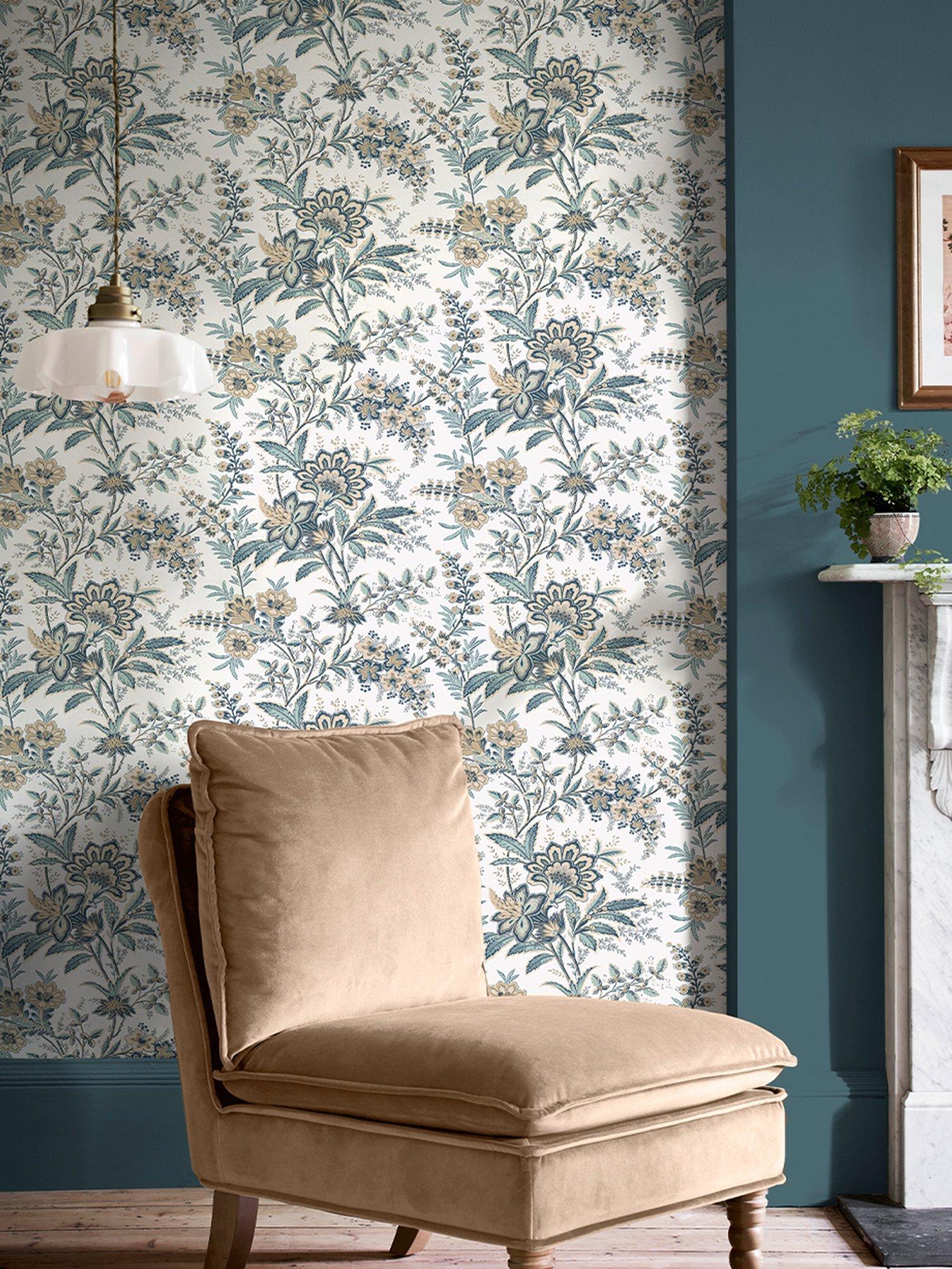 Inspired by an antique textile sample in the Laura Ashley archive, the Marlbrook print features curving stems blooming with exotic flowers. This statement design adds a sense of sophistication and timeless beauty to any space with its ornamental style.