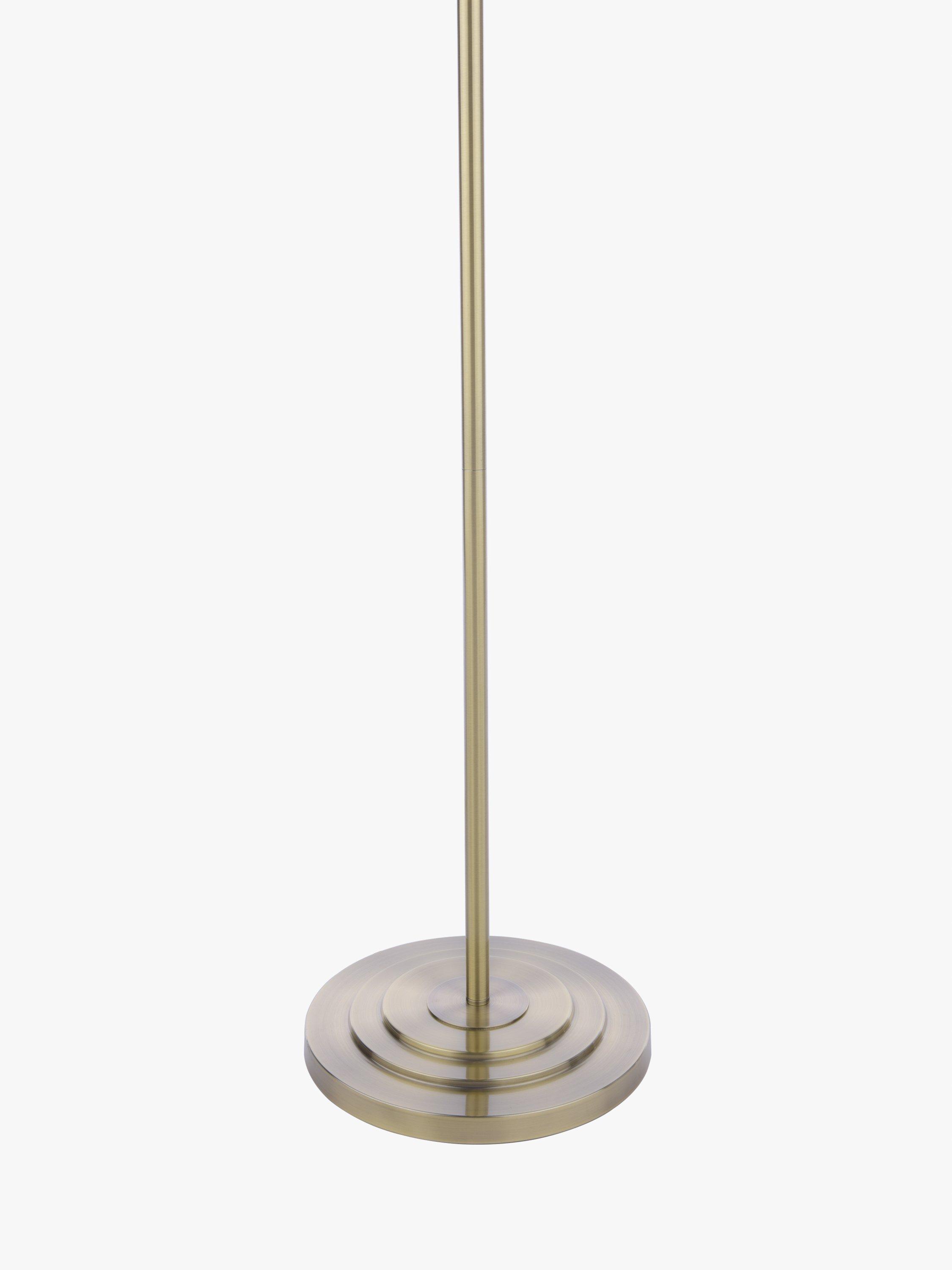 With metalwork in a straight stem and Art Deco-style round stepped base, it's finished with a neutral drum shade. Bulb not included. Takes one 60W E27 (ES) bulb.