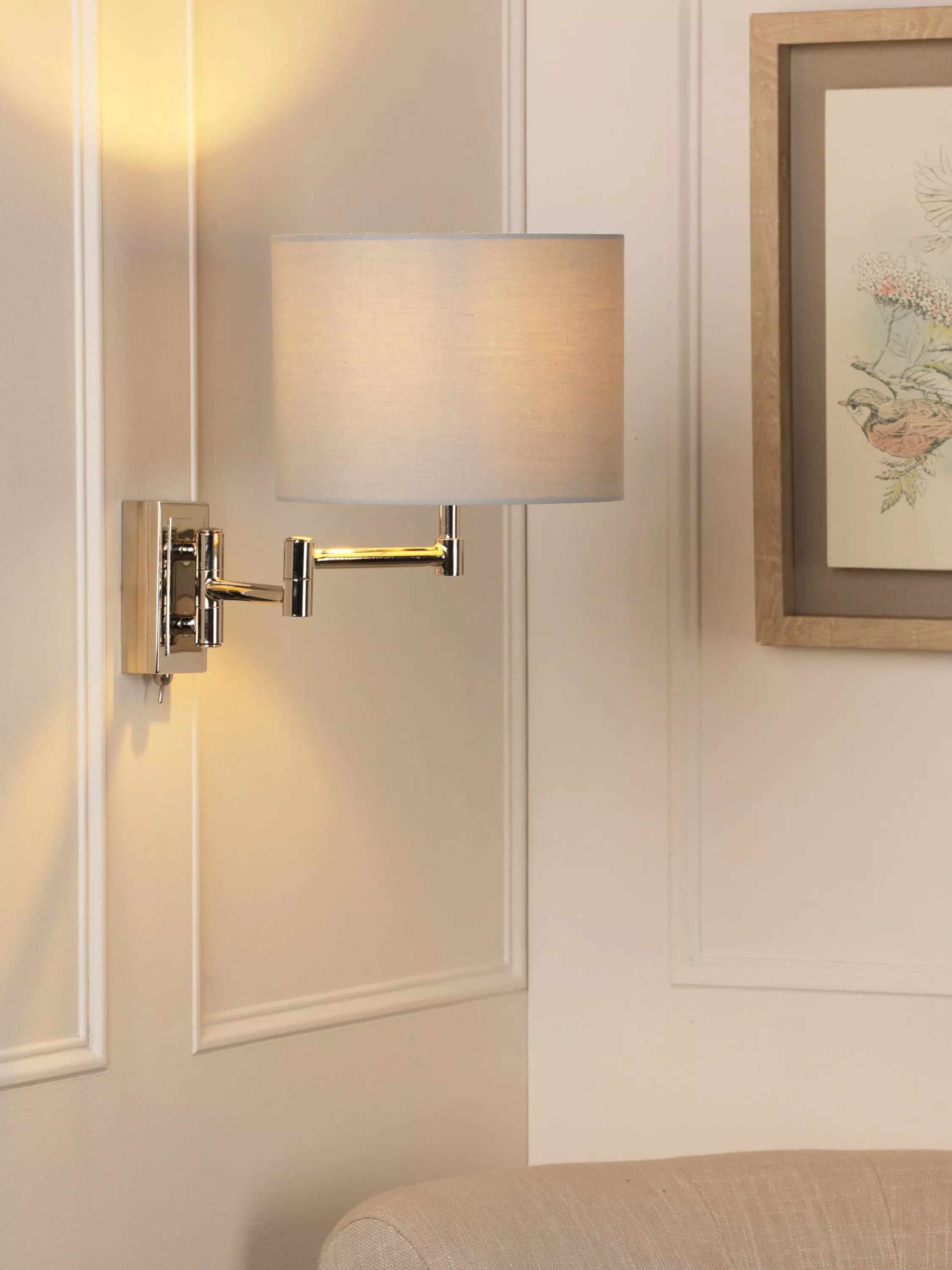 The Marlowe adjustable swing arm wall light from Laura Ashley is great for any reading spot. The double-jointed 'elbow' arm swings with ease into your preferred reading position, illuminating corners beautifully, as well as the pages of your book.