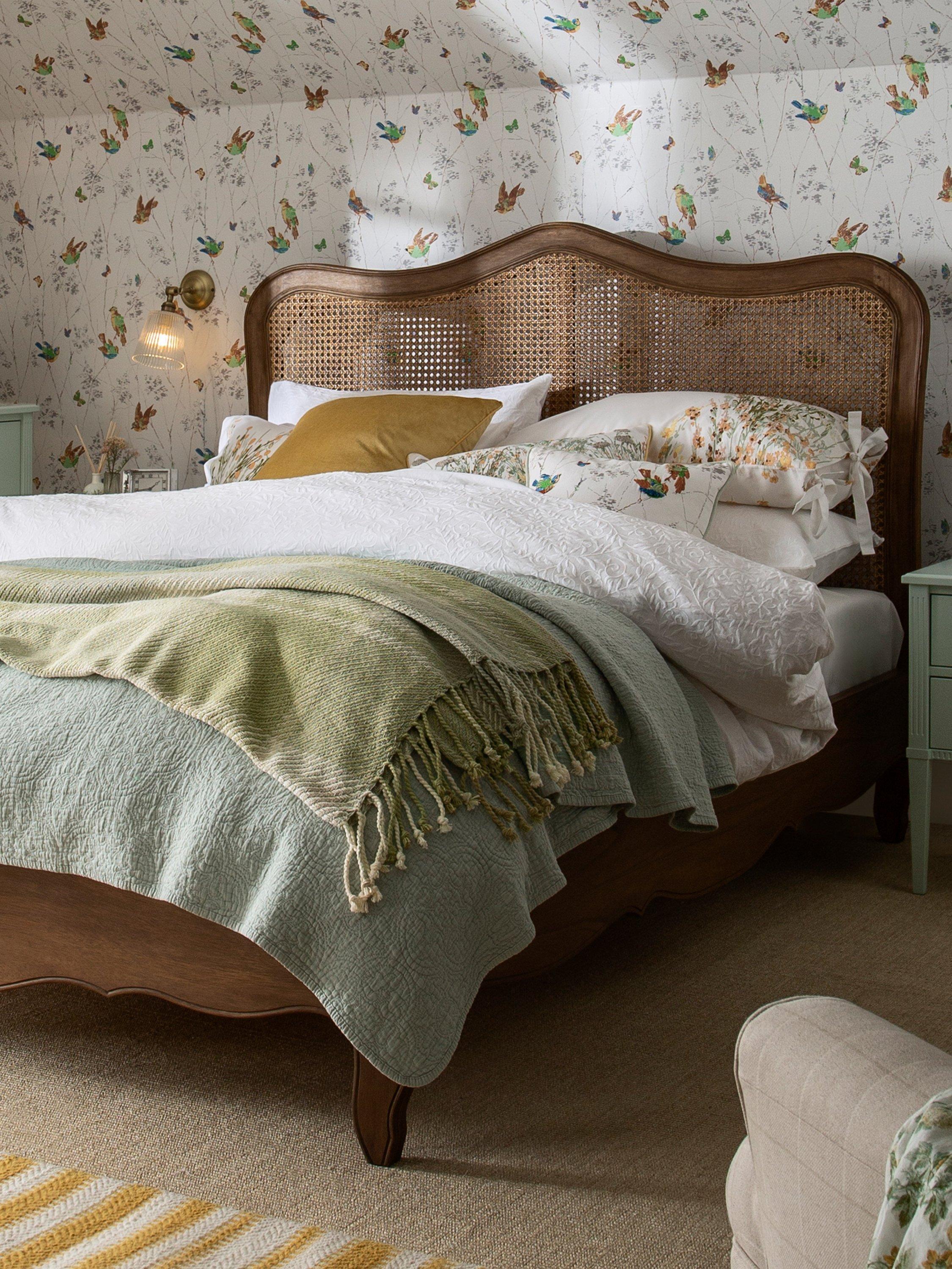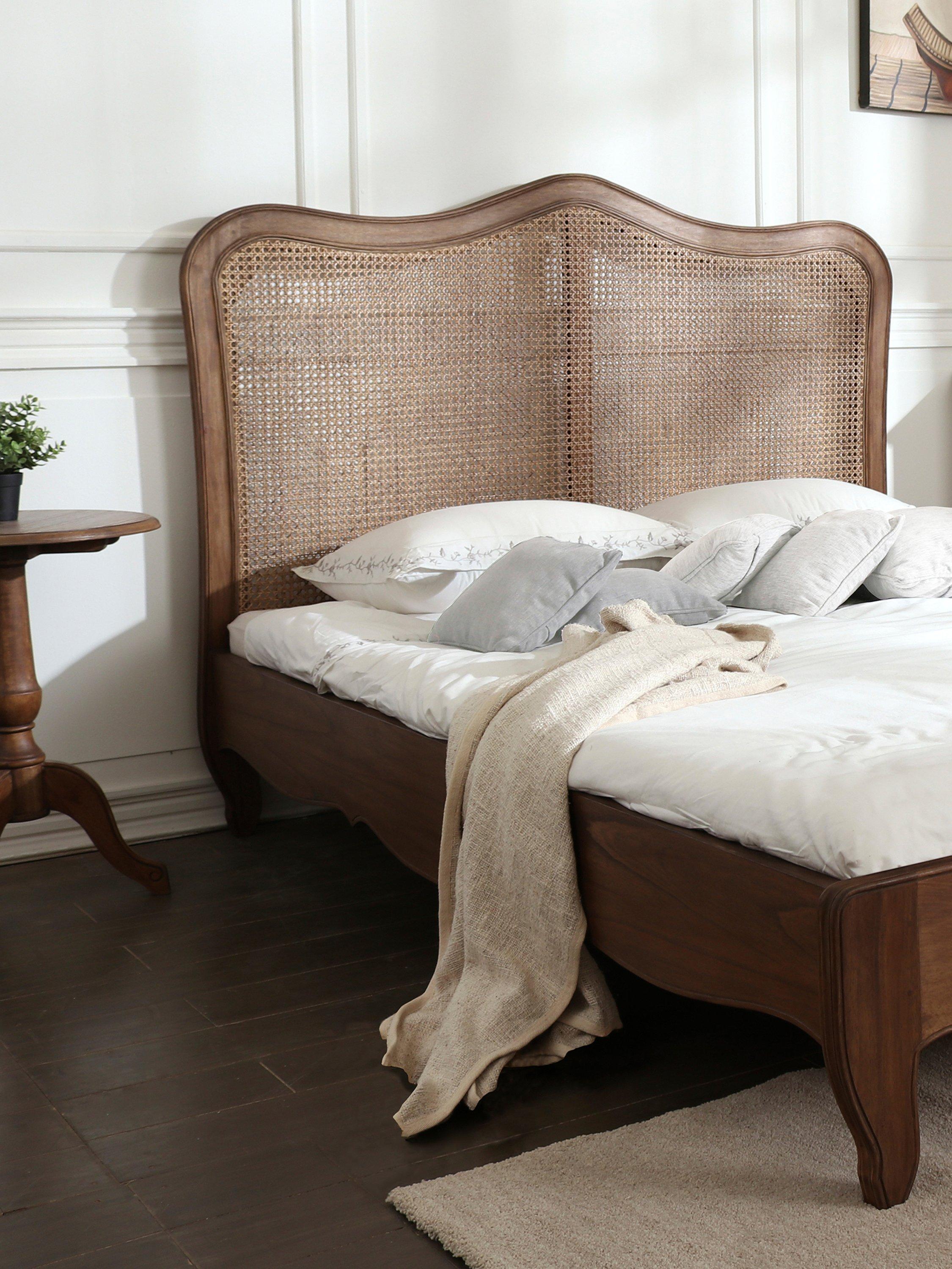 With its shapely legs, framed rattan headboard and profiled side rails, this stately bed frame is a celebration of its classic, French-inspired design. Solid slats provide a firmer and supportive base for your mattress.