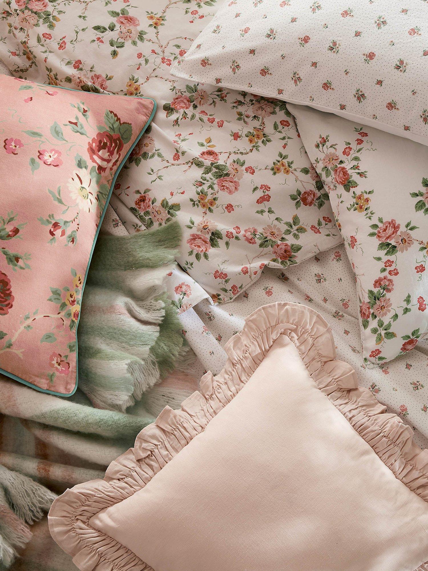 Printed on off white with antique pinks and green tones and a ditsy print on the reverse. Made from 100% cotton and with a relaxed wash finish.