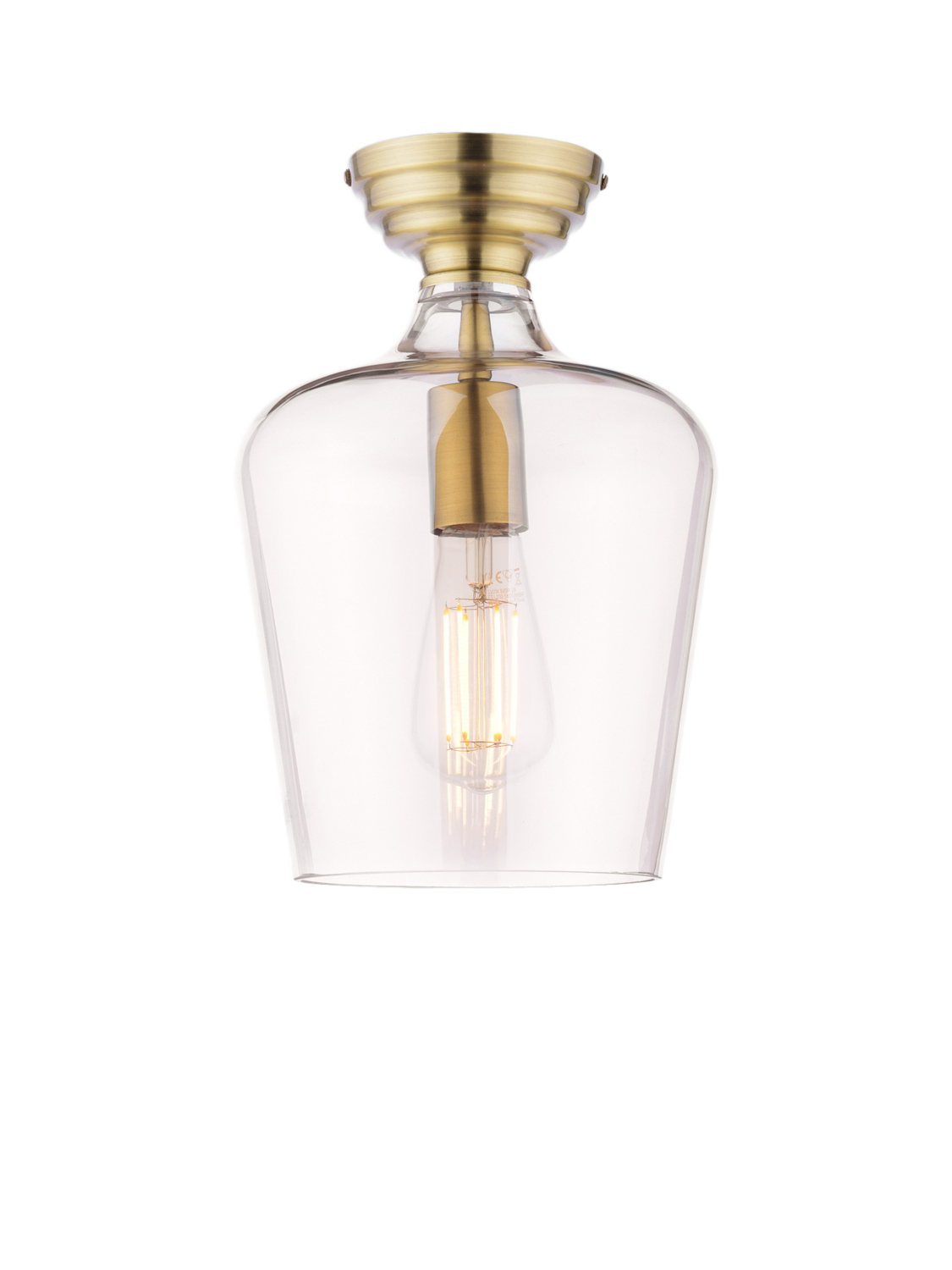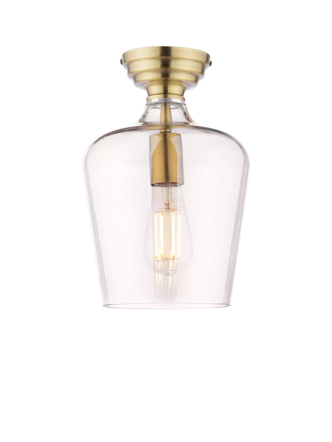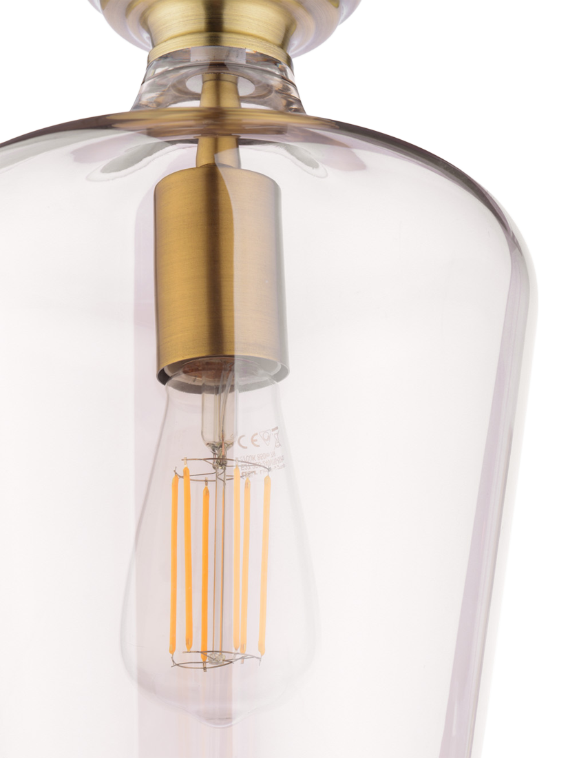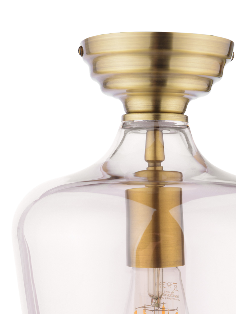 The Laura Ashley Ockley Semi-Flush Ceiling Light is a stylish, space-saving solution for low-ceilinged living rooms, bedrooms and kitchens. Featuring a gorgeous antique brass finish and clear glass shade, this light makes a sophisticated statement.