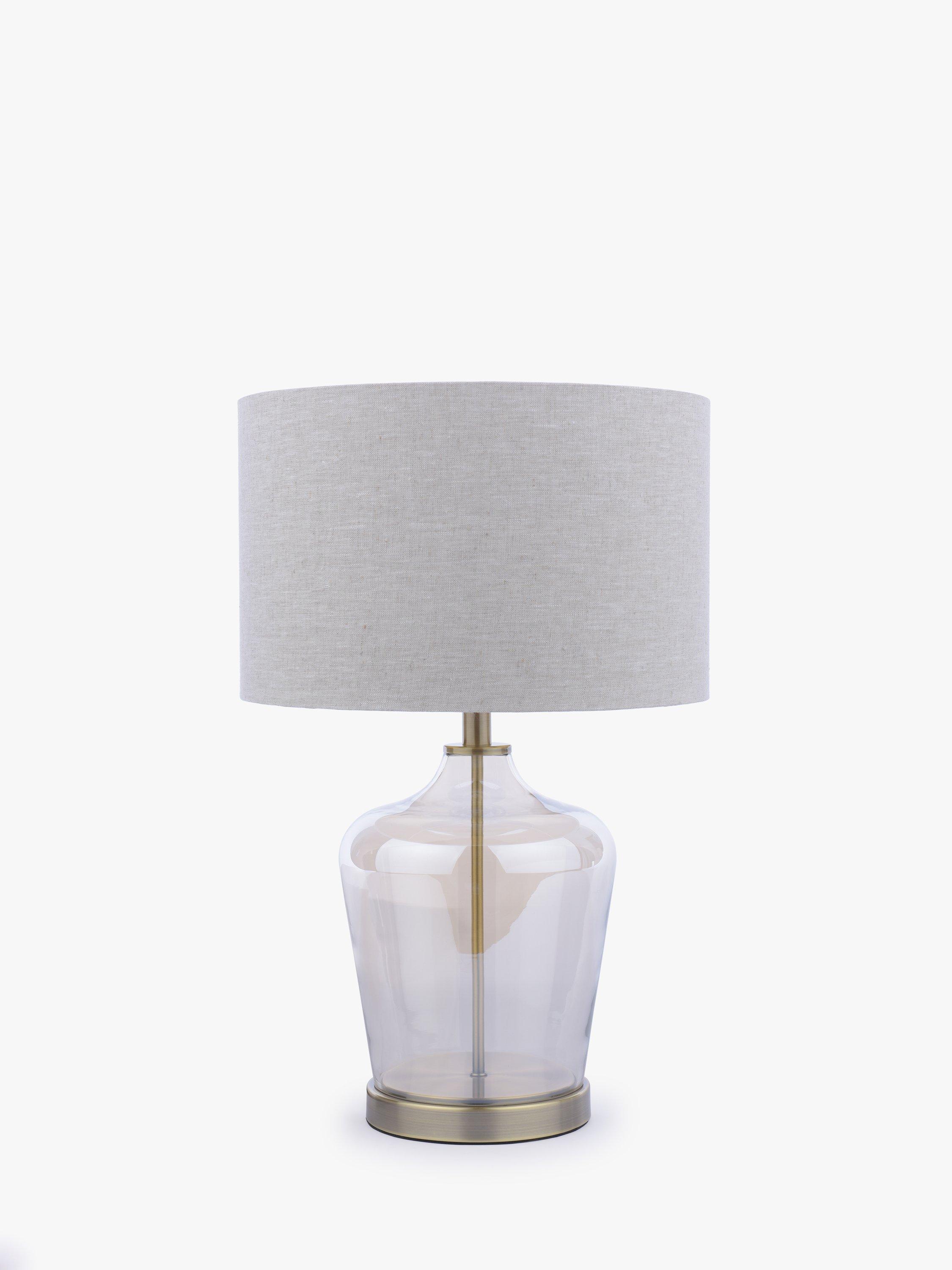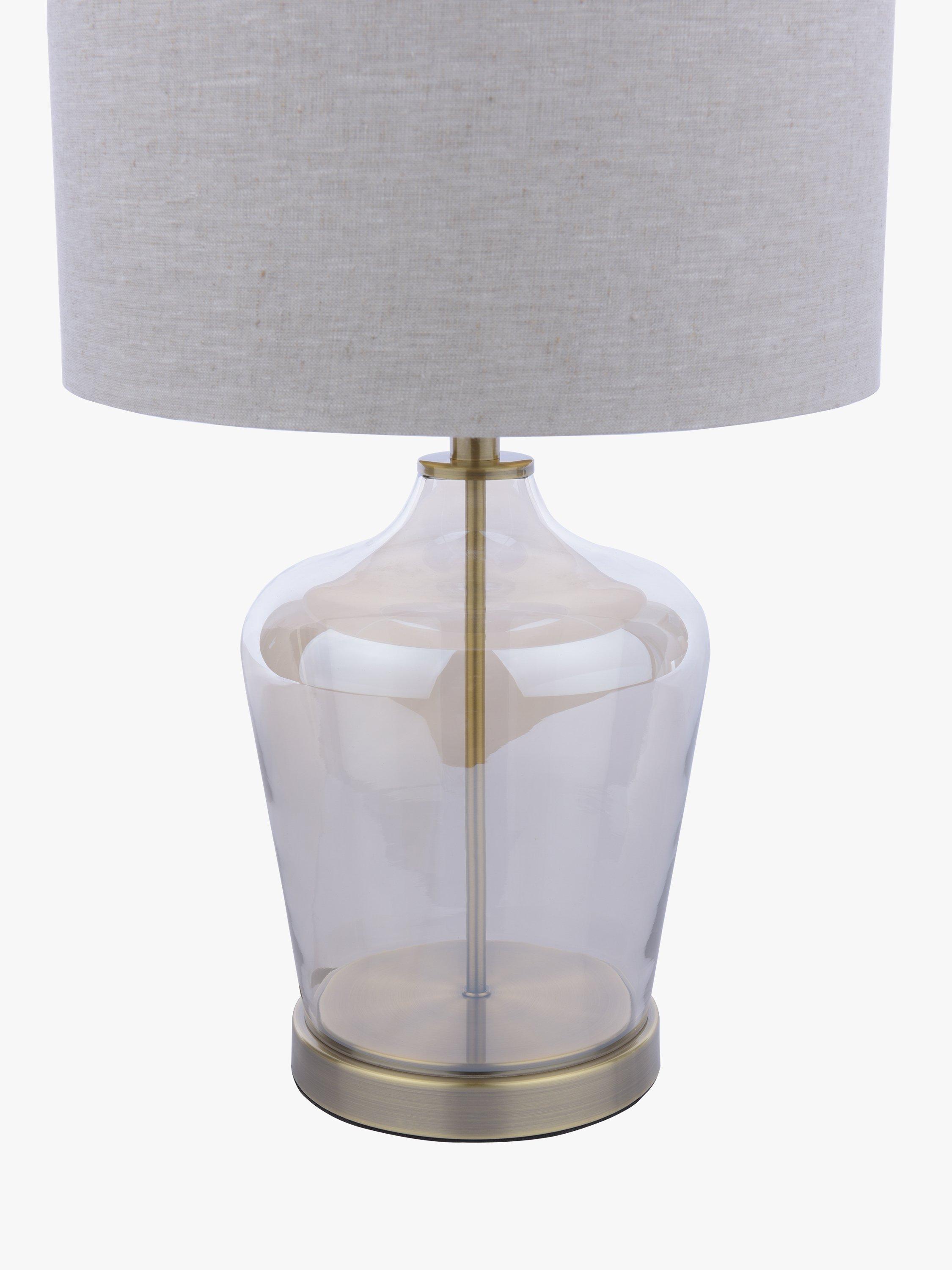 The Ockley Table Lamp by Laura Ashley features a touch on/off antique brass plinth beneath a champagne glass vase. With a three-stage touch switch function, simply touch once to turn on, again to dim and then once more to turn off. Paired with a linen shade with a metallic inner, it's a great table lamp for any room. Bulb not included. Takes one 60W E27 (ES) bulb.