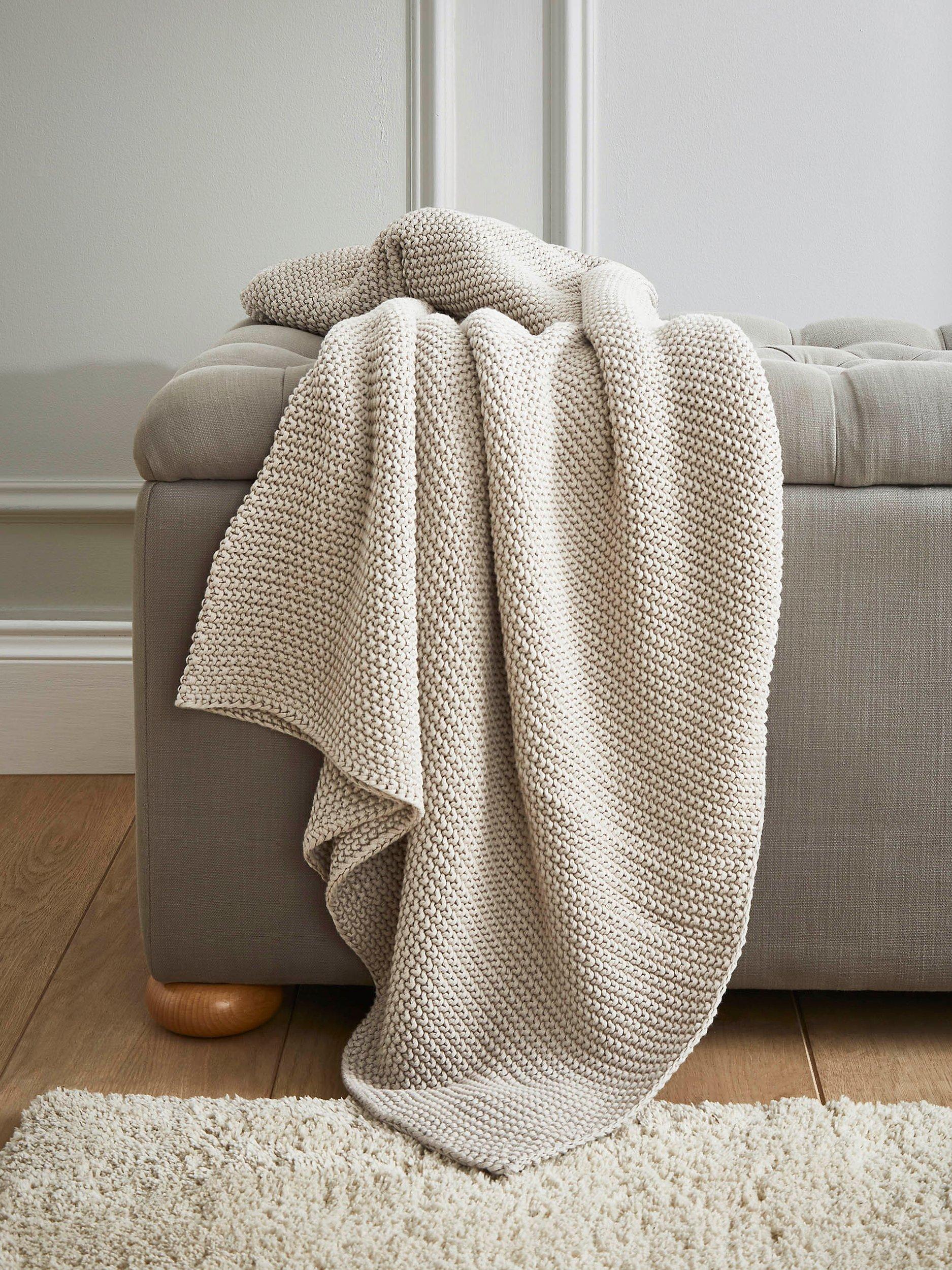 Soft and sumptuous, this chunky textured cotton knit, in timeless Laura Ashley dove grey, looks fabulous and offers an extra layer of cosiness come bedtime.