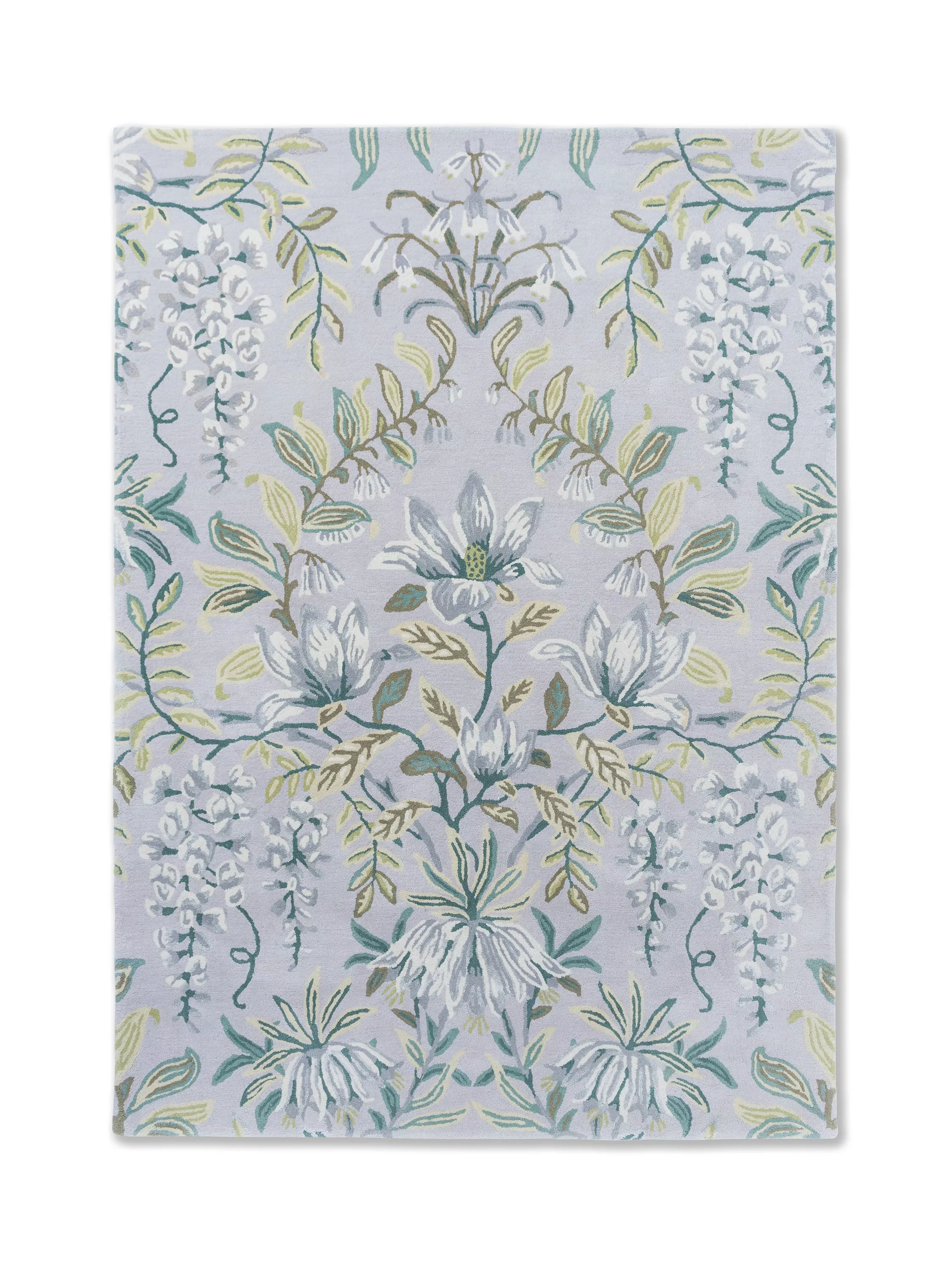 Elegant and timeless, Parterre depicts trailing ogee stems carrying an abundance of white flowers similar to wisteria. First launched in the spring of 2020, this floral print was inspired by an incredible hand painted piece of artwork from the Laura Ashley archive. With a soft hand drawn look, Parterre brings a modern feel to a vintage style pattern. Hand tufted by true craftsmanship in India incorporating these intricate patterns and details in a wool quality with hints of viscose to create a lovely lustre.