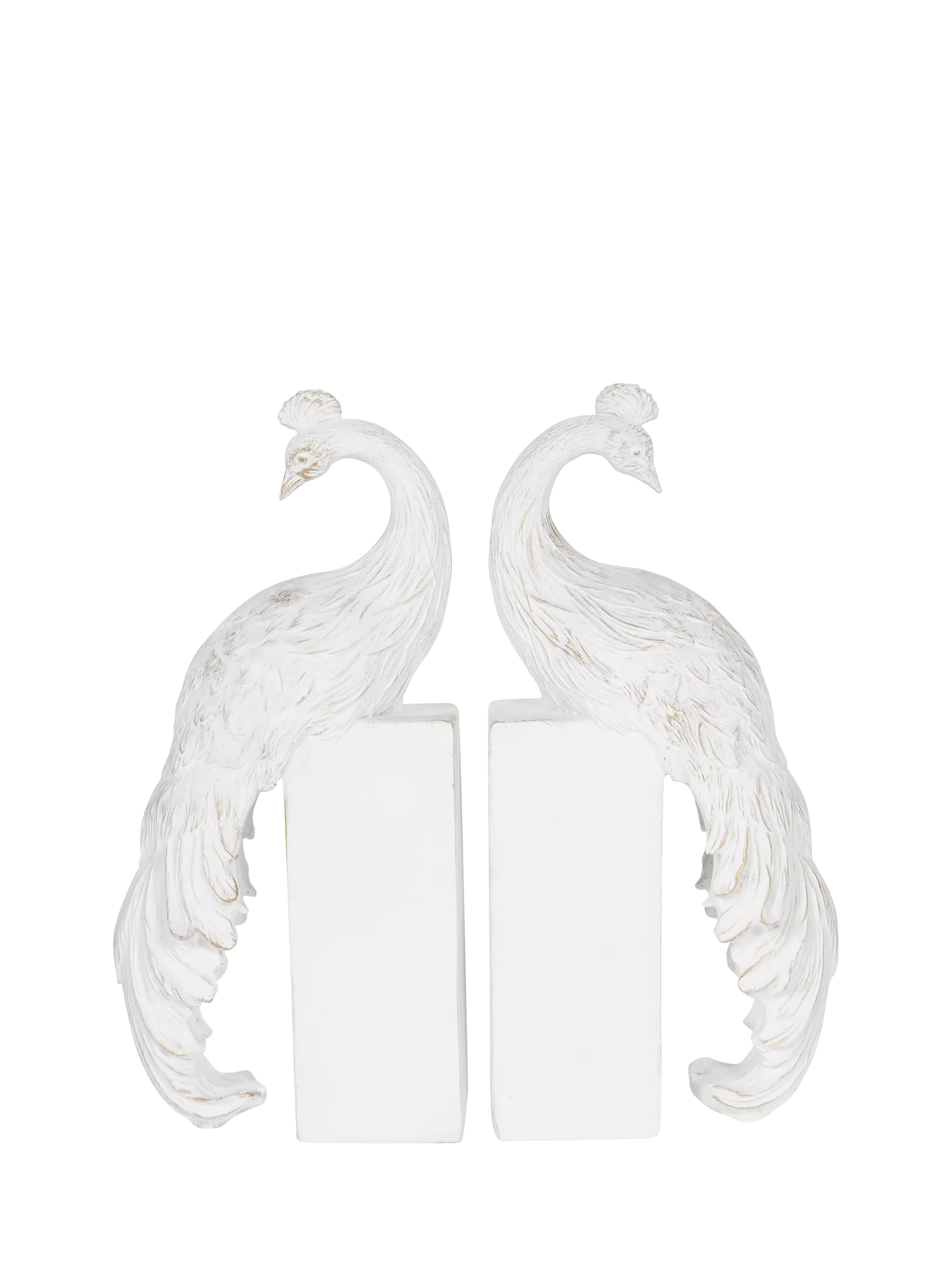 Peacock bookends inspired by Laura Ashley's favourite bird. These exquisite bookends showcase intricate details, made using resin and heavyweight limestone with a vintage-inspired antique white finish. Whether gracing your study or living room, these bookends not only hold your books in place but also add a touch of classic beauty to your home.