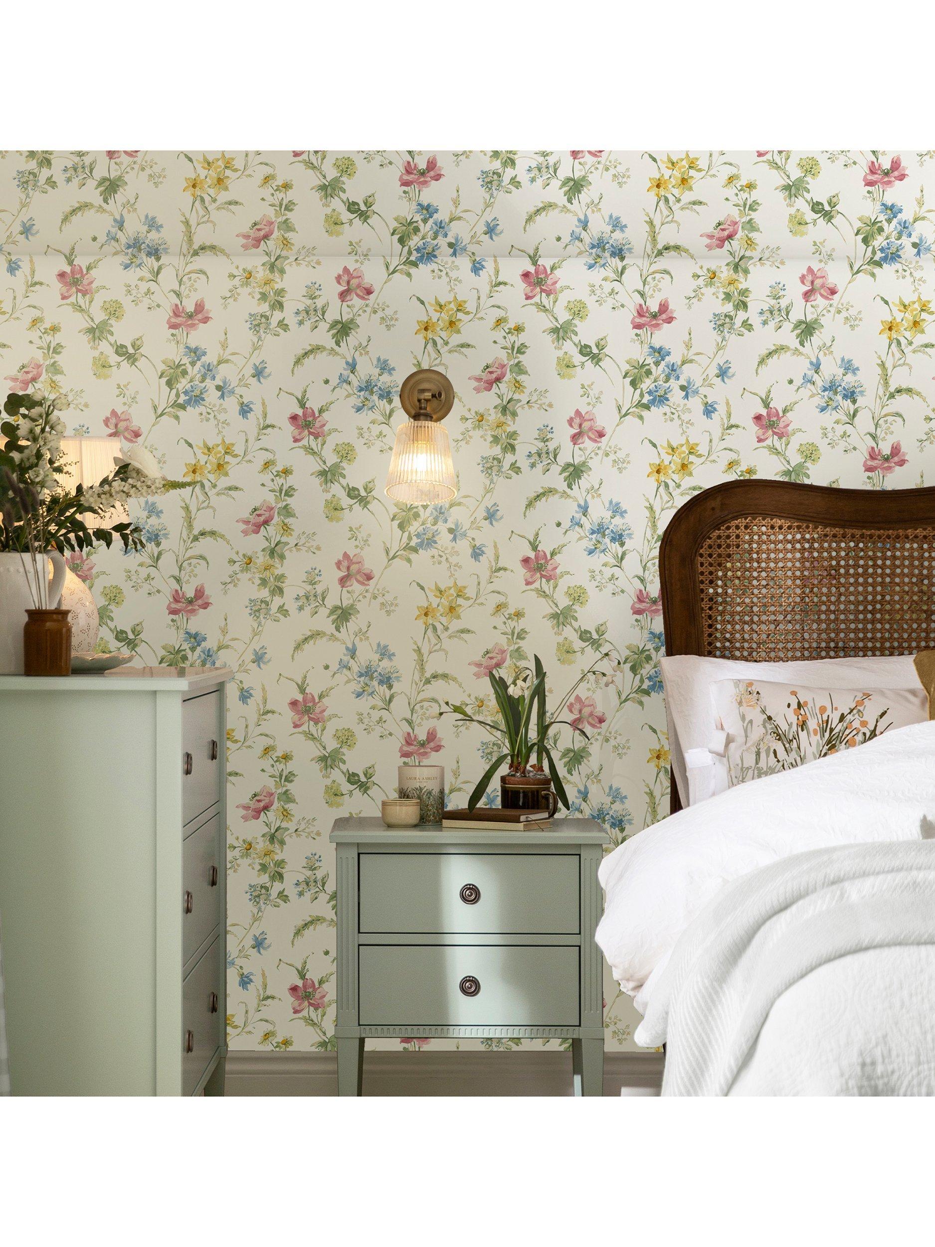 Delicate and pretty, Poppy Meadow was previously launched in 1996 as part of the Laura Ashley Home Furnishings Collection. This contemporary watercolour showcases painterly flowers with cornflowers, poppies and daffodils.