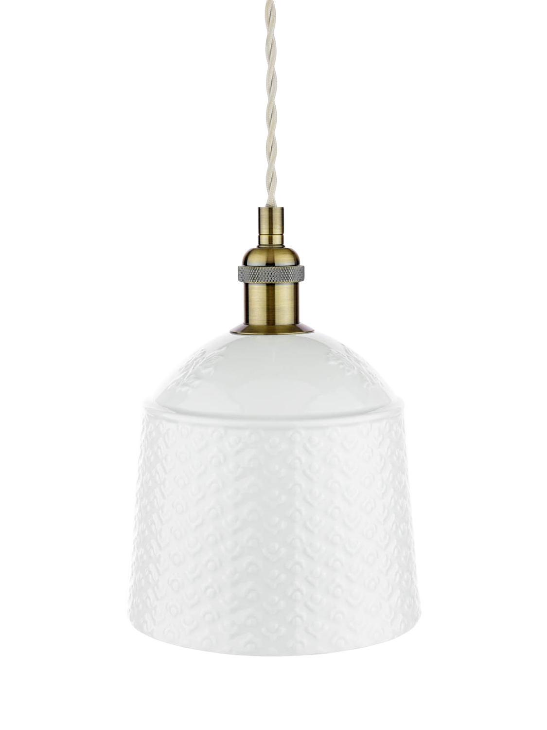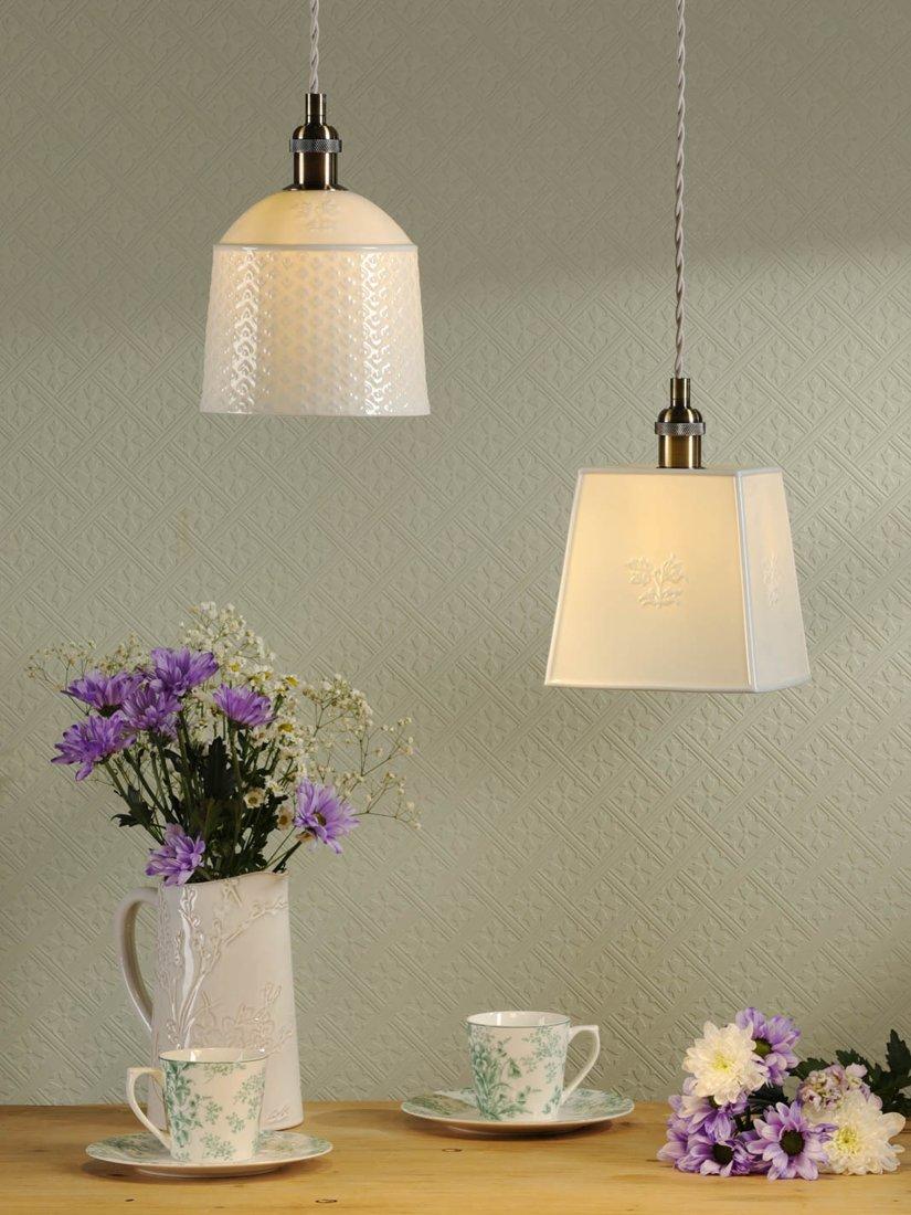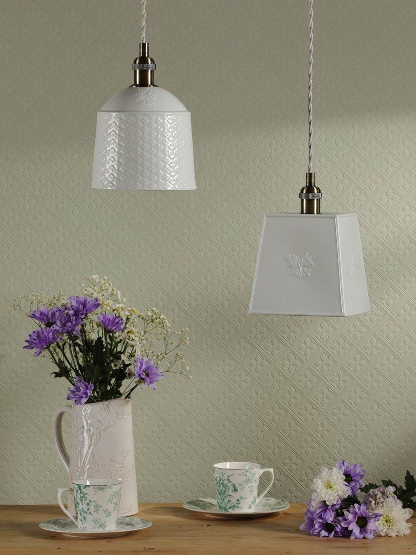 Soft light filters beautifully through the patterned porcelain shade of this pair of Laura Ashley pendant ceiling lights, casting delicate shadows that dance across your room. The cream-coloured pendant ceiling lights bring a touch of understated elegance to any space, whether it's brightening up your reading nook or adding warmth to your dining area.