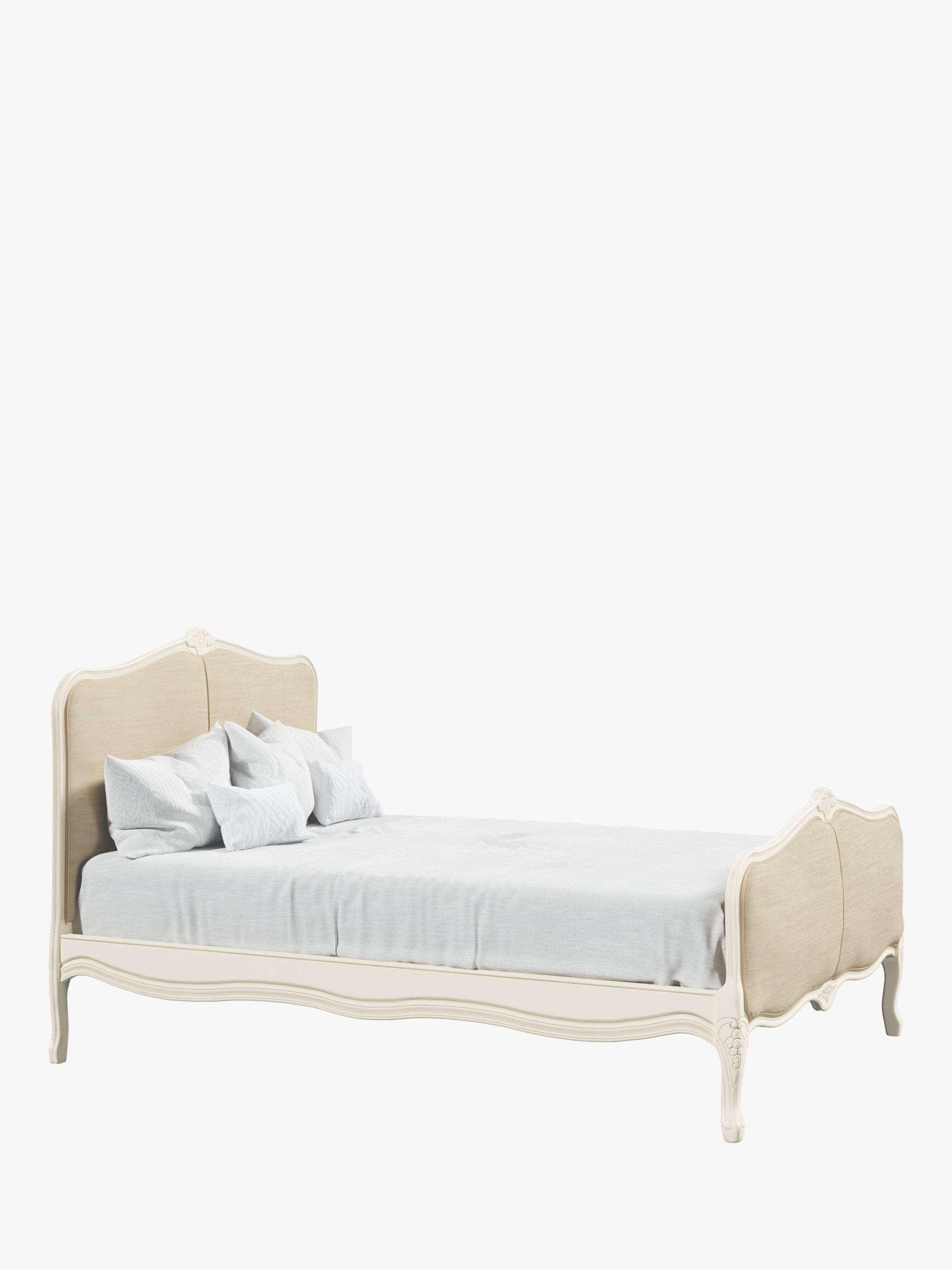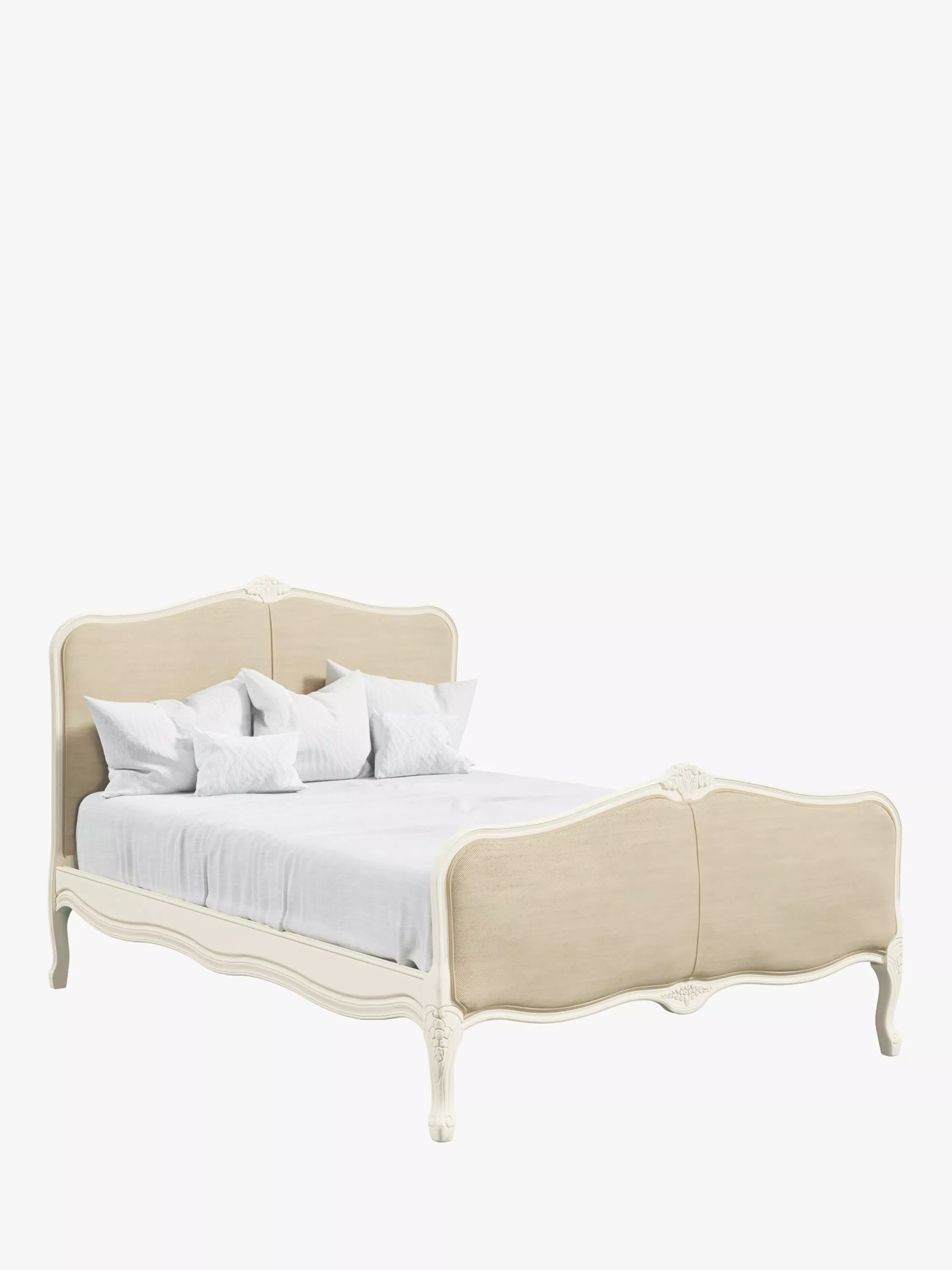 With its intricate detailing and stately size, the Provencale bed frame from Laura Ashley is a celebration of Rococo French-inspired furniture. It's designed with shapely panels and carved details across the frame and both the headboard and footend are upholstered in linen. The frame has a durable painted finish with a delicately applied patina on selected edges and profiles, and the base has sprung slats to support and ventilate your mattress.