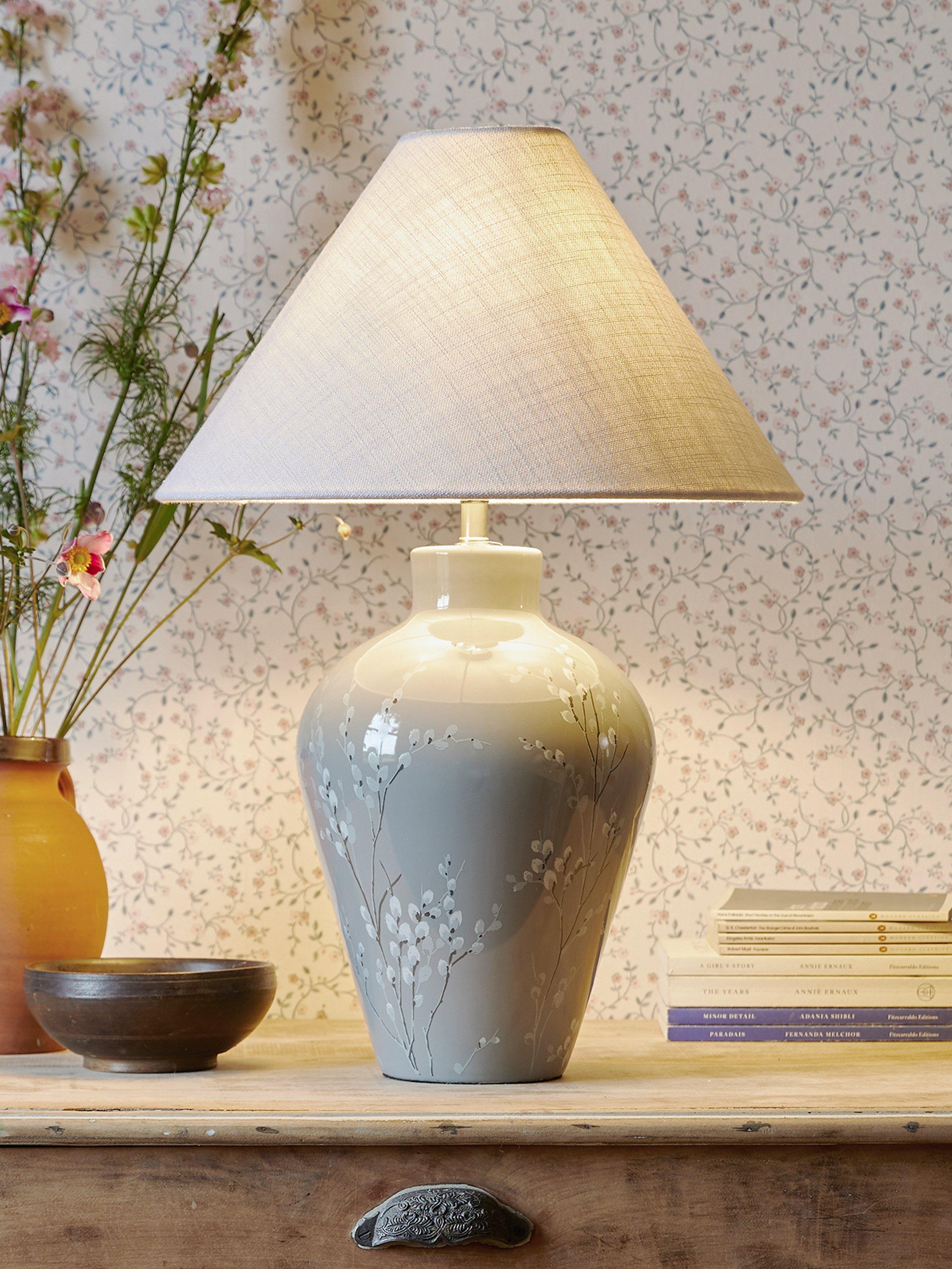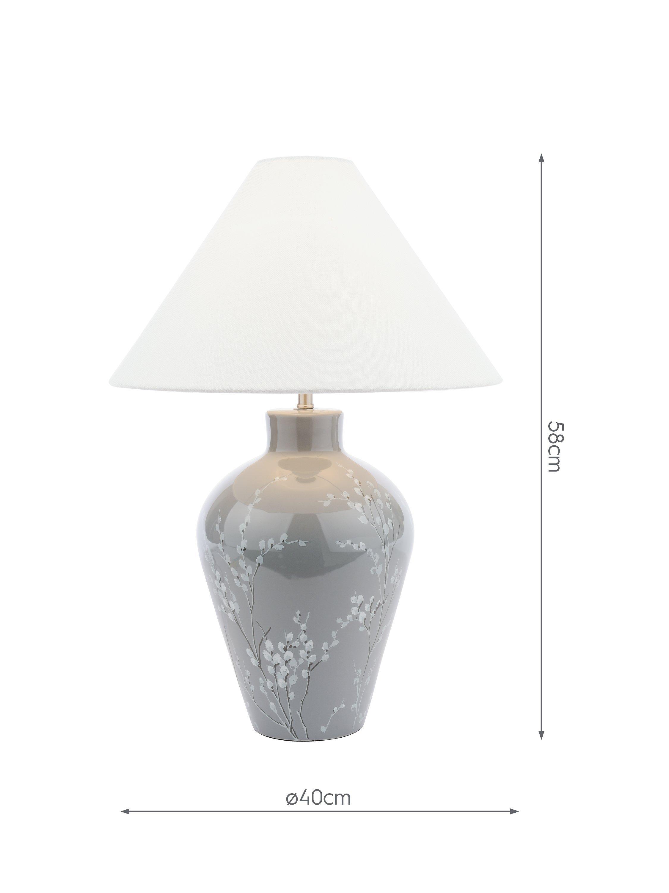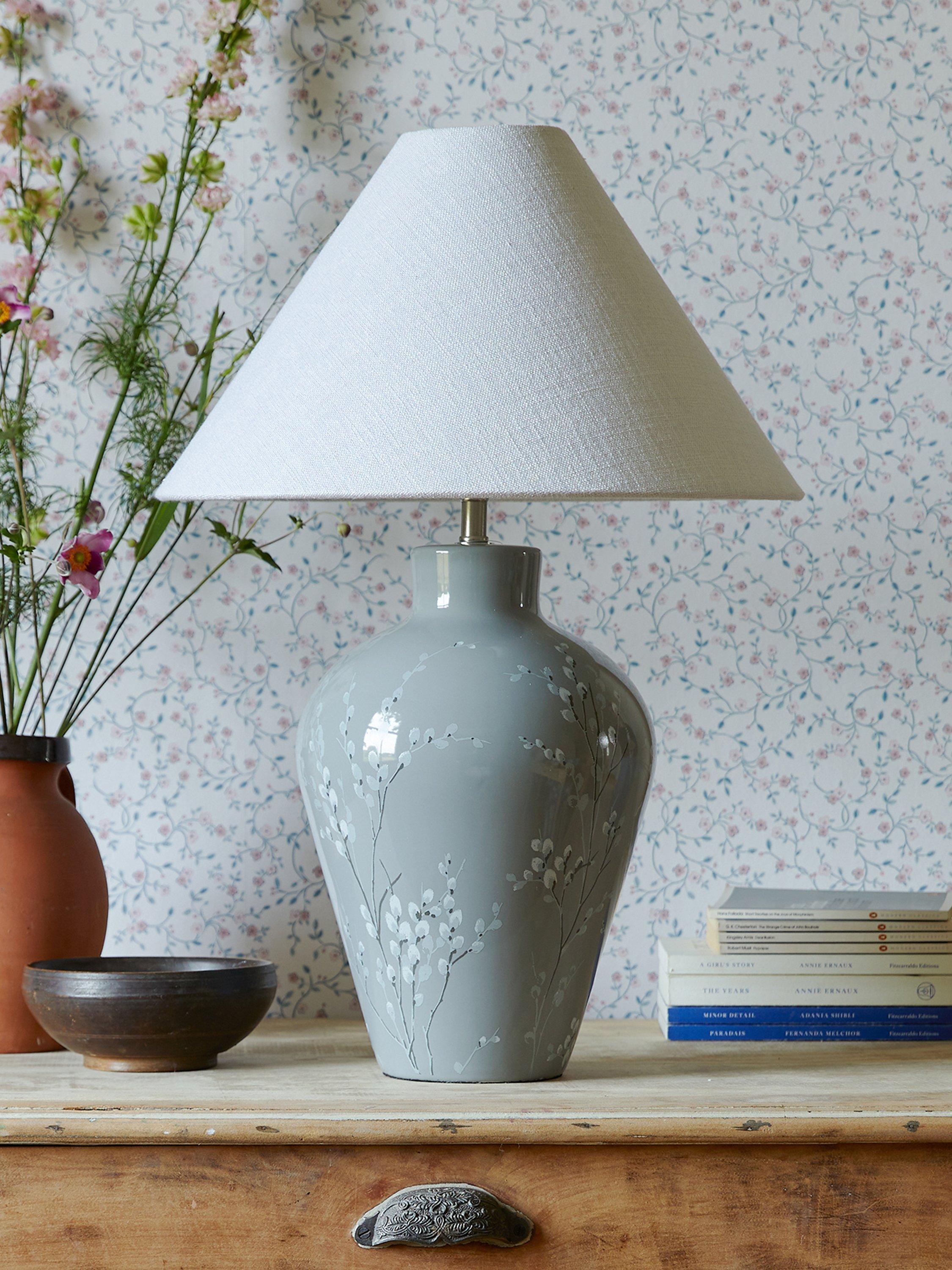 Seamlessly blending interior styles from rustic and farmhouse to modern and eclectic, this timeless design complements most decor while adding a touch of sophistication and freshness. The ceramic base features Laura Ashley's Pussy Willow pattern, topped with a subtly textured linen shade.