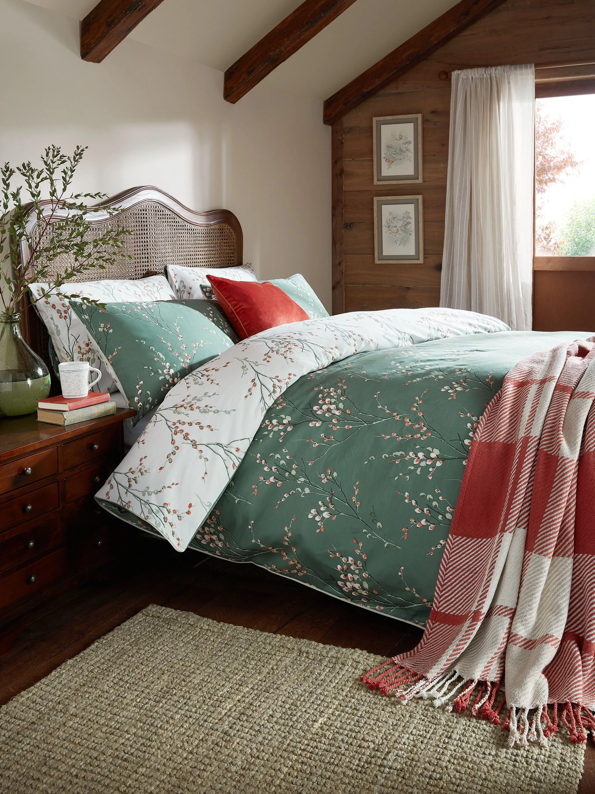 Create an inviting and serene bedroom with this classic Laura Ashley floral design. Coloured in rich tones of fern green, warm creams and rust tones, this reversible 200 thread count cotton sateen bedding has a tailored flat piping finish for a timeless look.