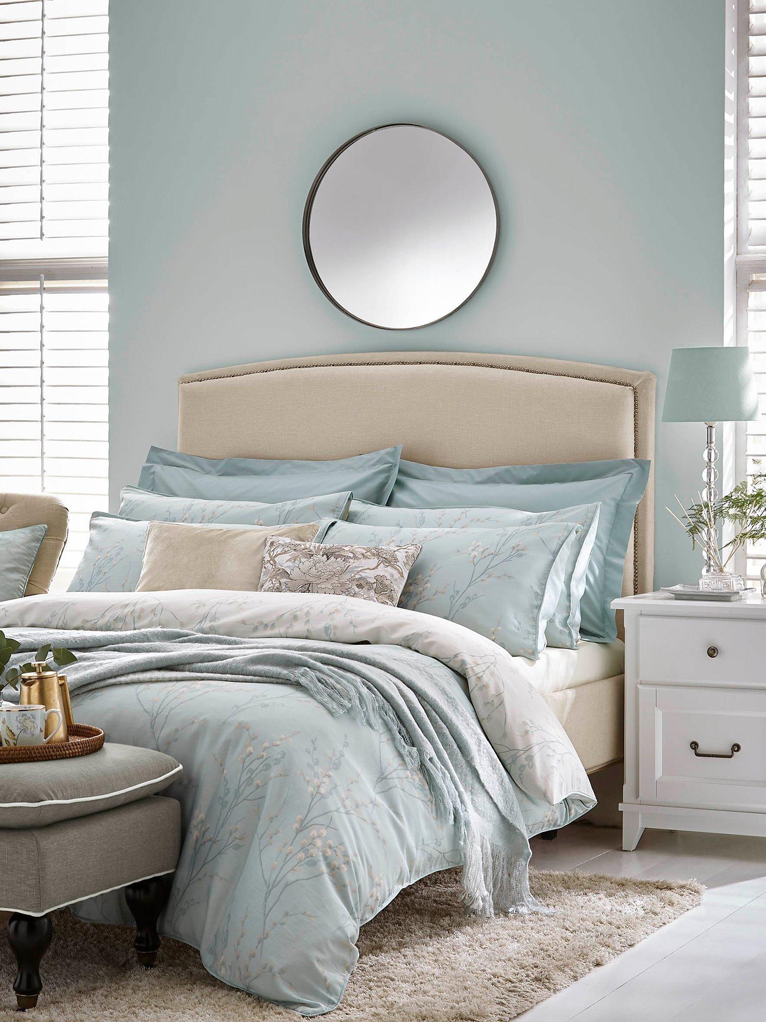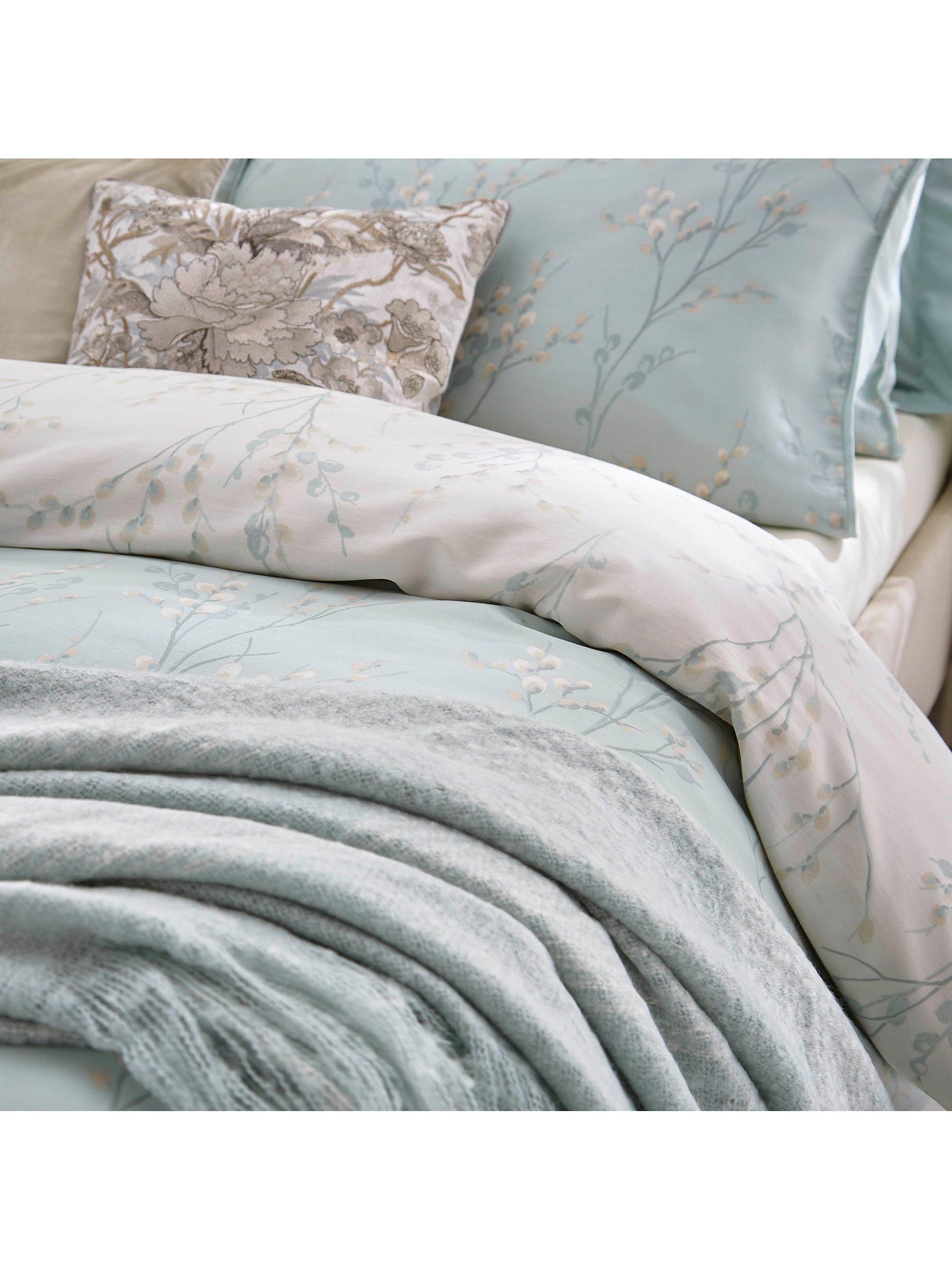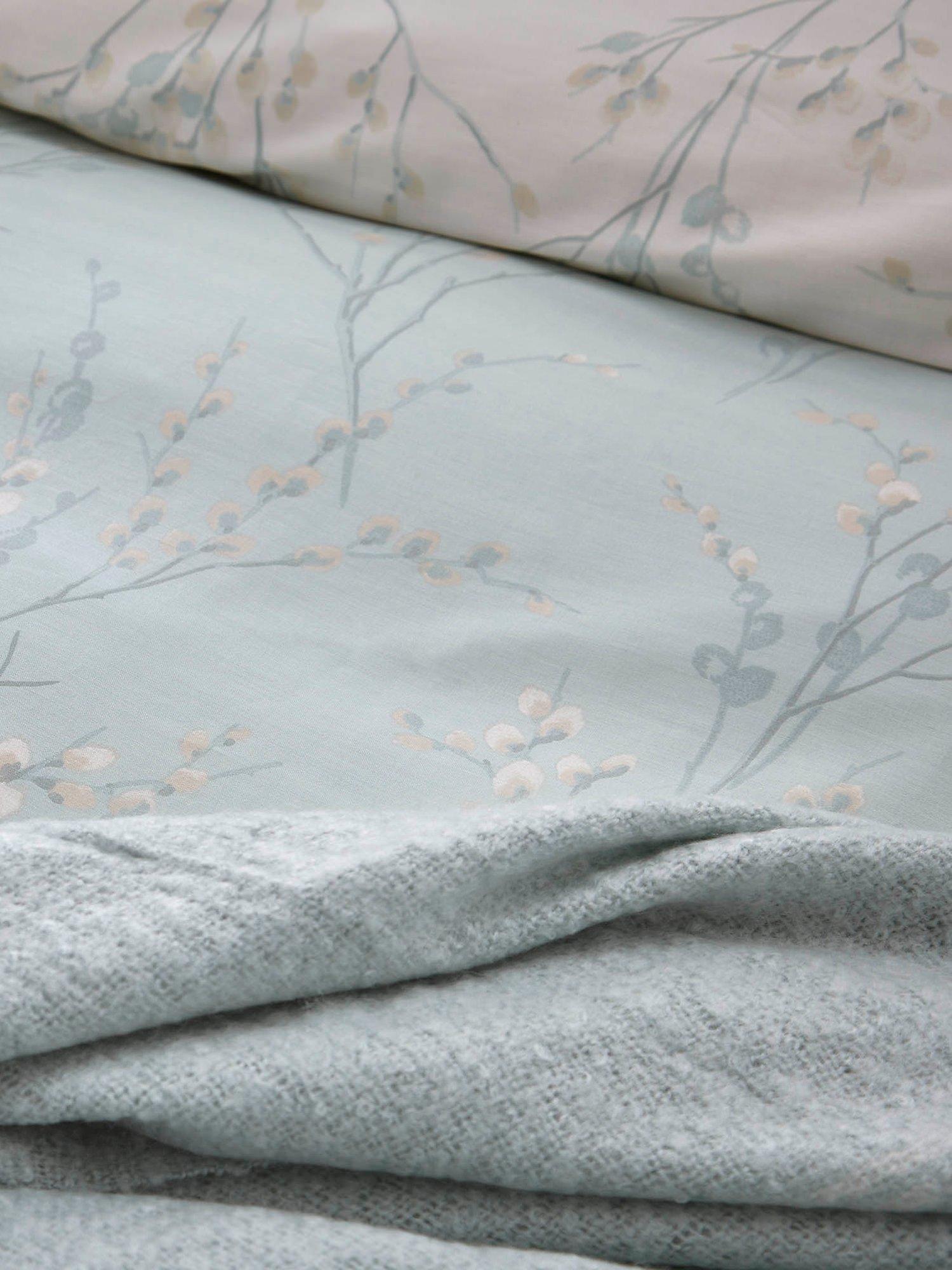 Laura Ashley's popular Pussy Willow print is perfect for bringing a fresh, elegant feel to your home decor. Made from sateen cotton for a lustrous sheen, this beautiful, printed duvet cover set comes in a beautiful duck egg colour palette and is reversible so that you can style it two ways. It also features a flat piped edge.