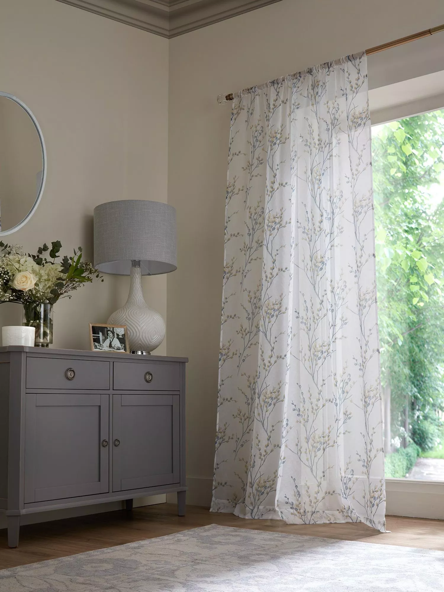 A classic Laura Ashley design, Pussy Willow has been applied to this beautiful sheer voile panel. Reminiscent of the first days of spring, this clean and fresh Pussy Willow sprig design brings a touch of the outside in. Intricate sprigs trail across this elegant, sheer voile panel to create a warm and serene living space.