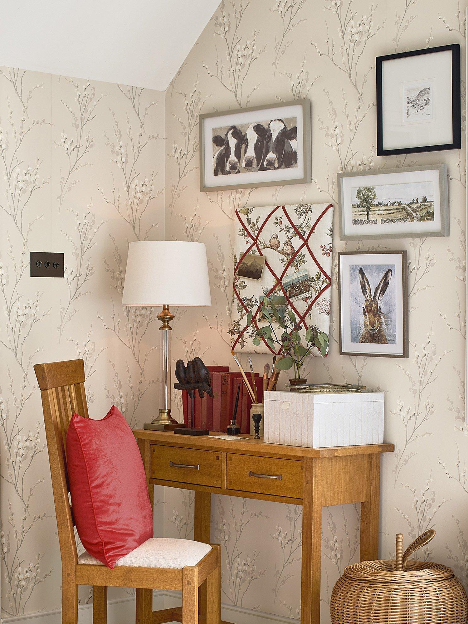 A classic Laura Ashley floral design. Reminiscent of the first days of early spring, this clean and fresh Pussy Willow sprig design will bring a touch of the outside in.