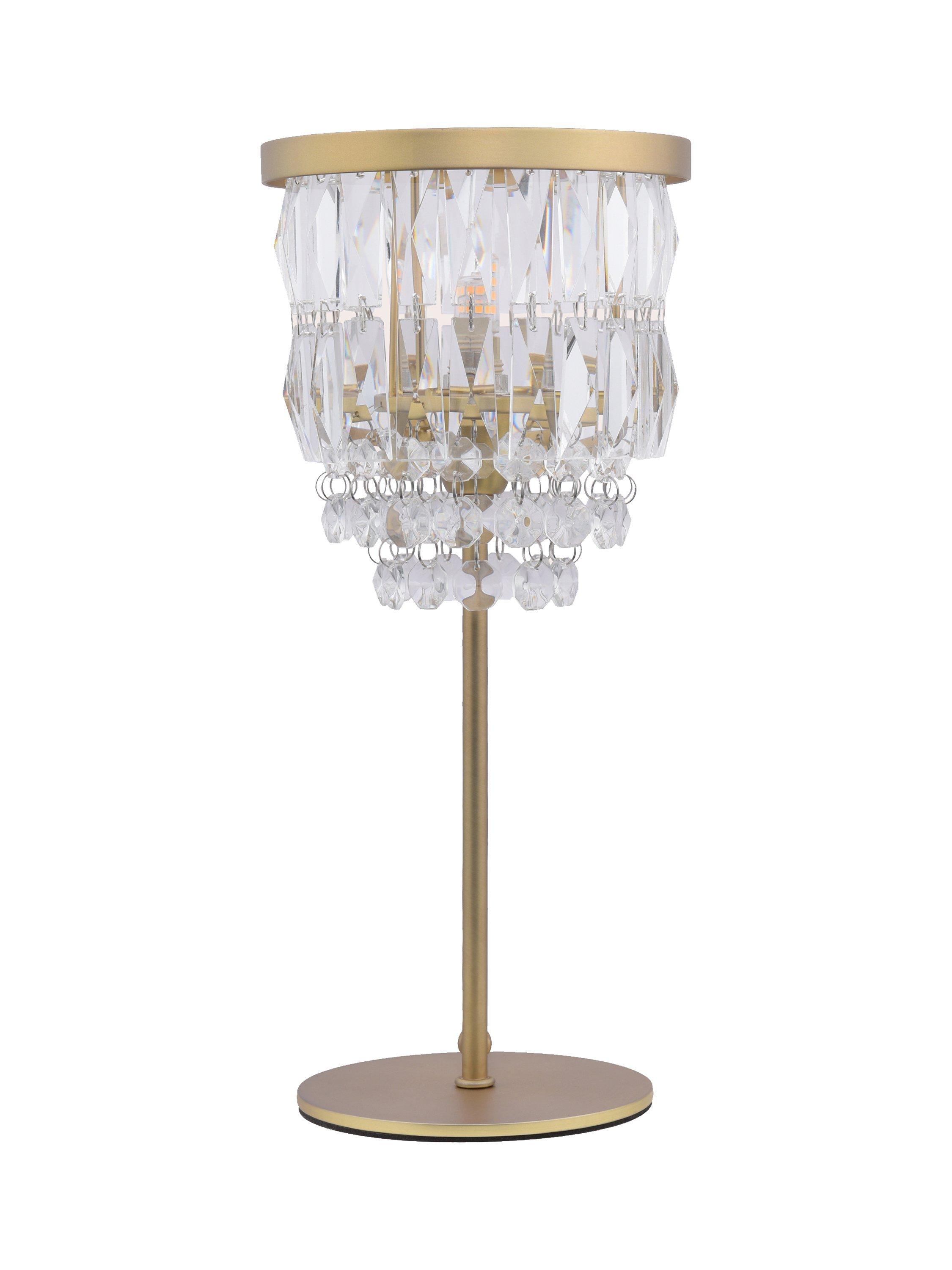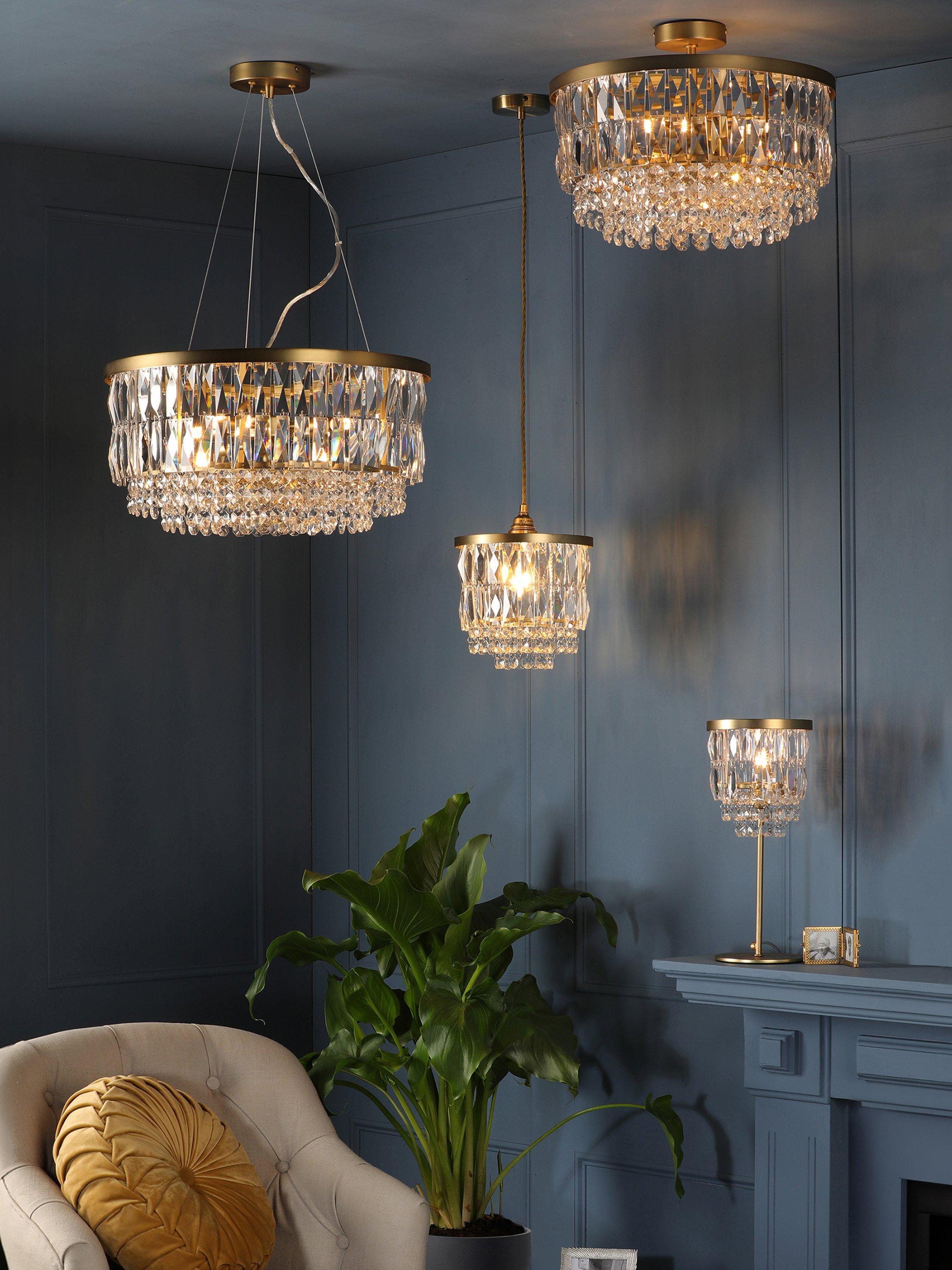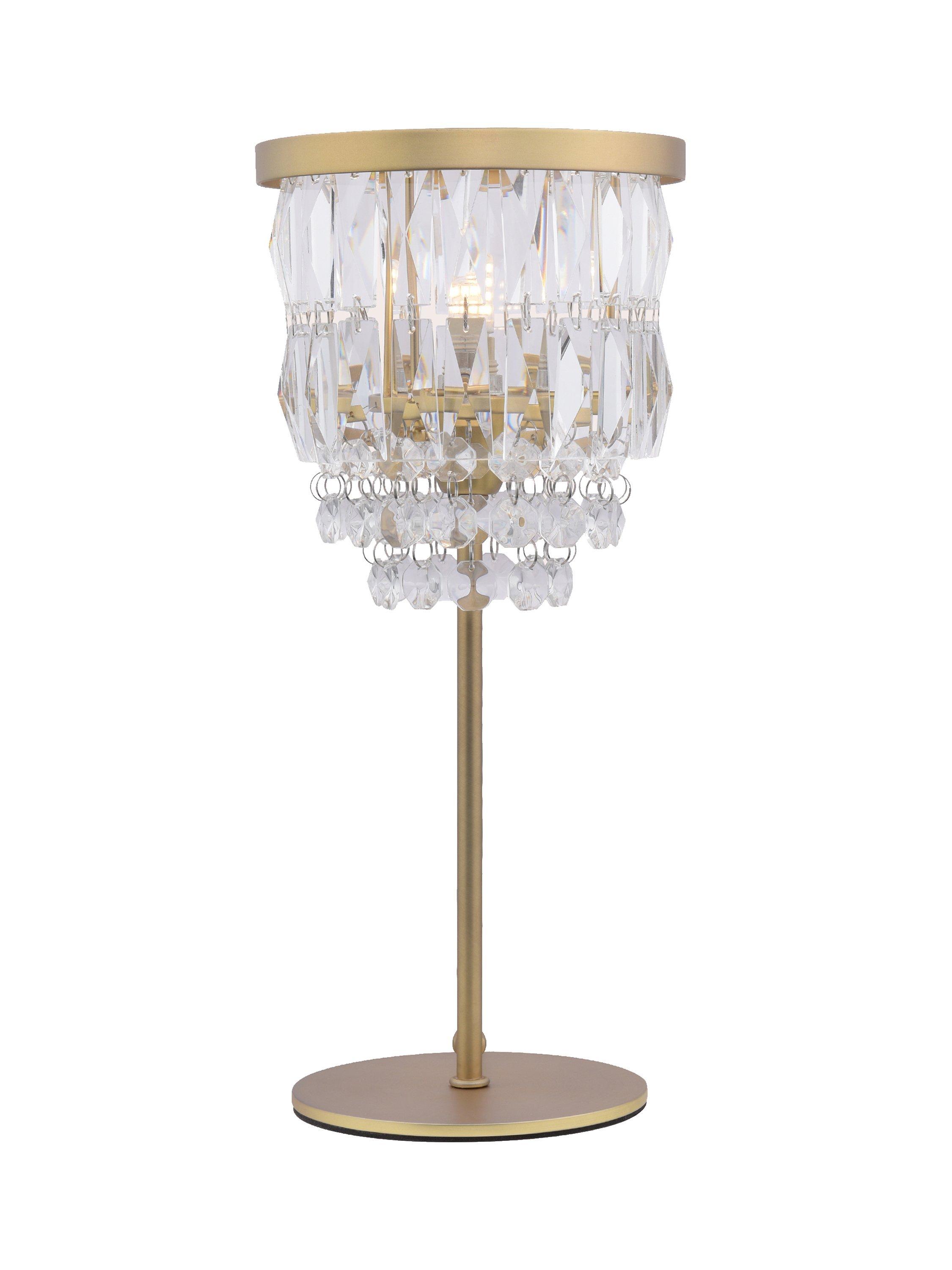 The combination of crystal glass and metal antique brass make this table lamp an attractive and eye-catching addition to your room. The shade is made up of cut glass crystal droplets that fall to a central point from a circular frame. Offering a warm and diffused glow of light, ideal for creating ambience.