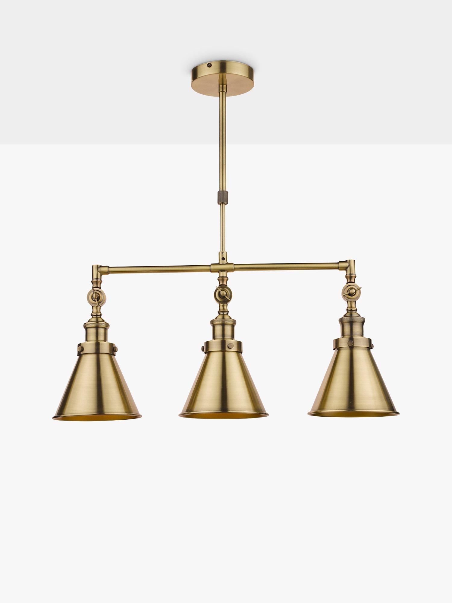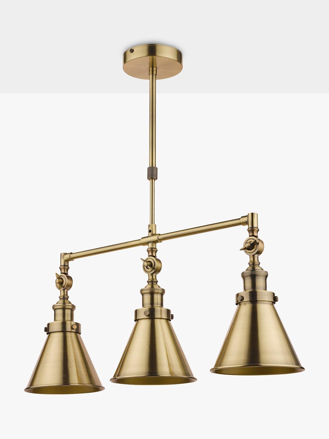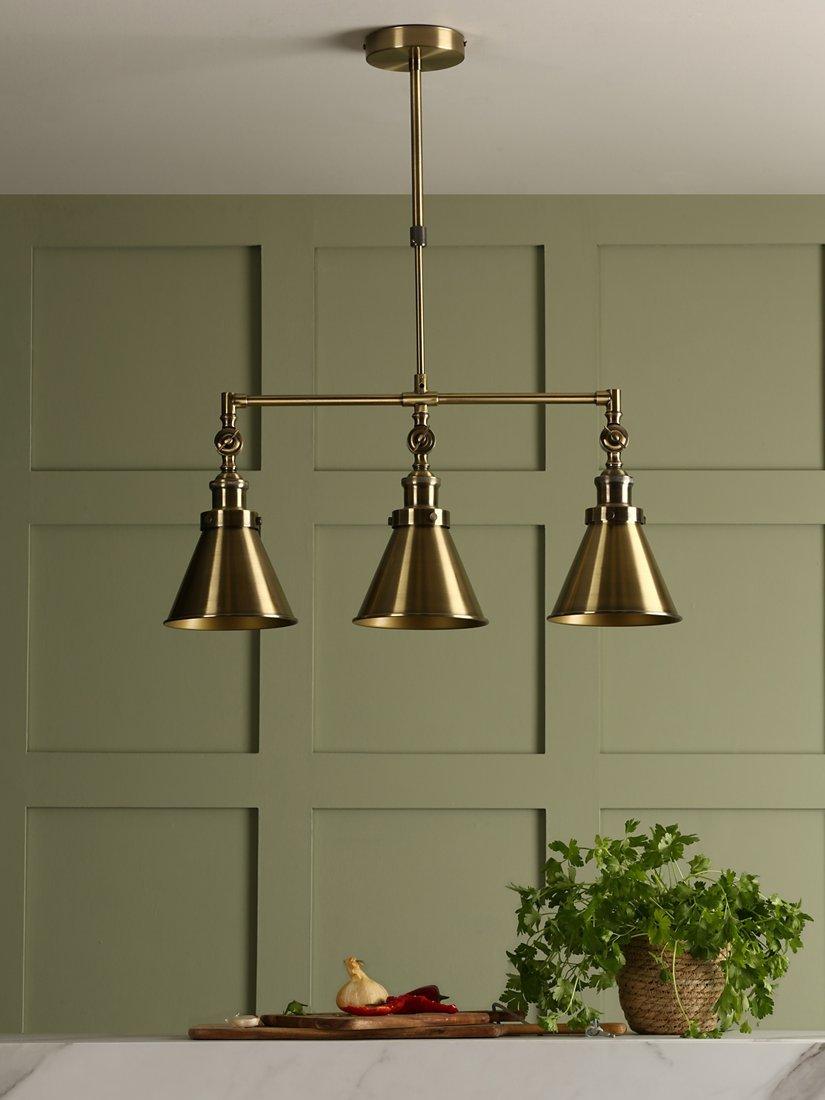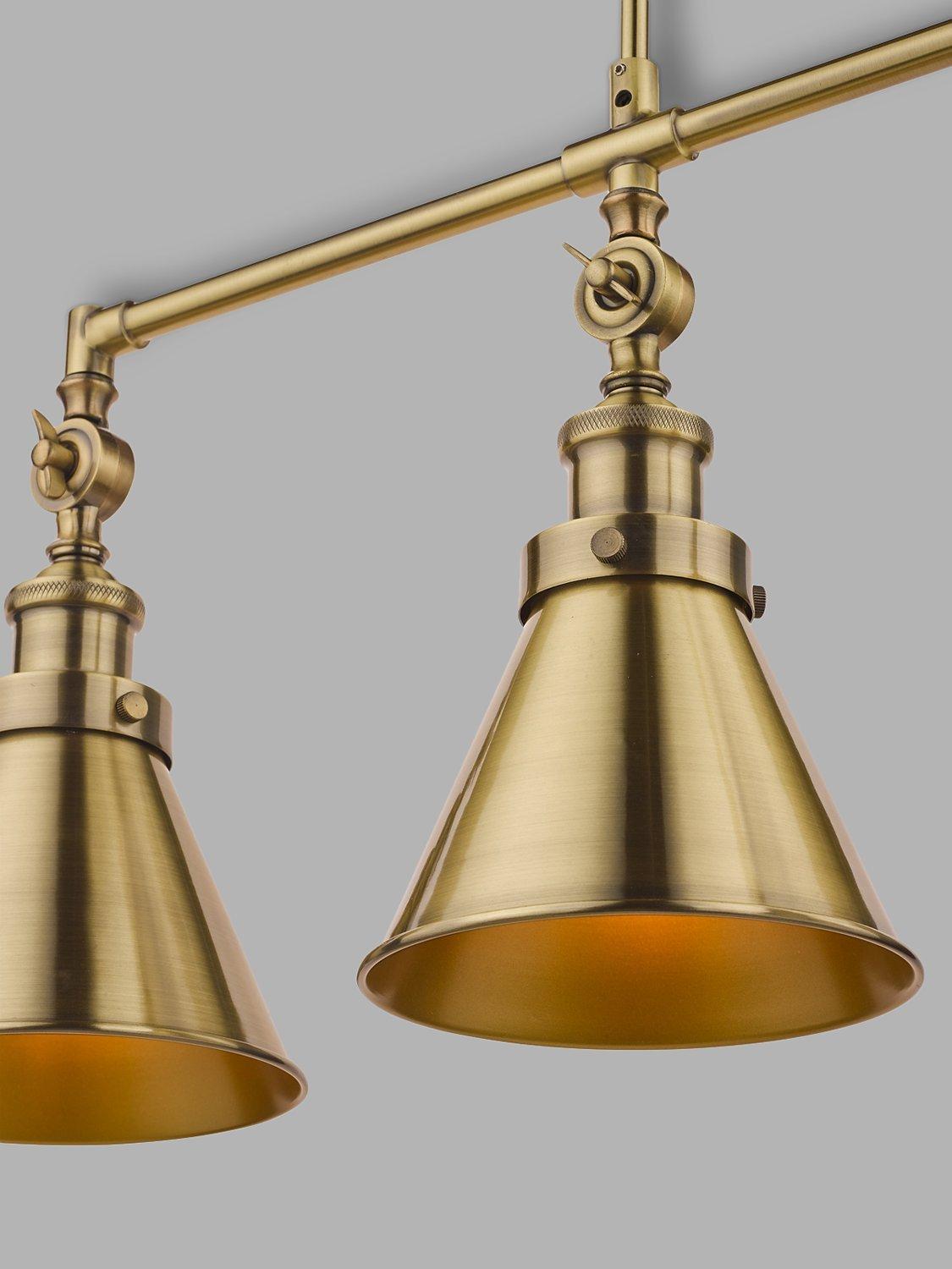 Laura Ashley’s Rufus triple bar spotlight has a superior antique brass finish that will look superb in your kitchen or dining room, angle the cone shaded spotlights precisely at your main work surface areas. This is a quality ceiling light, the three cone shades are made out of spun metal with a neat rolled edge, sitting on a slim, rectangular ceiling plate. Paired with a twisted, light brown braided fabric cord for a vintage character look. Bulbs not included.