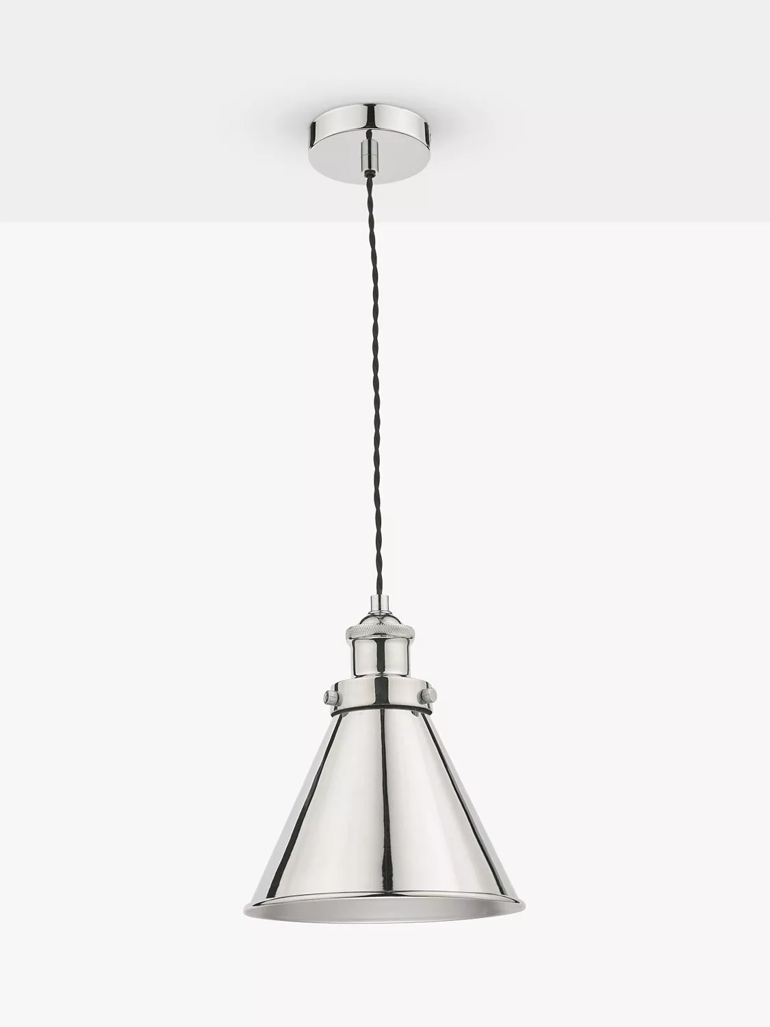 This cone-shaped pendant is available in a painted, antique or polished metal finish so you can pick the style that works best with your decor. Industrial-inspired, with matching fittings and engineered details, it's height-adjustable at the point of installation and looks impressive when installed separately or in a line of three. Try installing it directly above a dining table or kitchen island and enjoy a direct glow of light. One LED bulb is required.