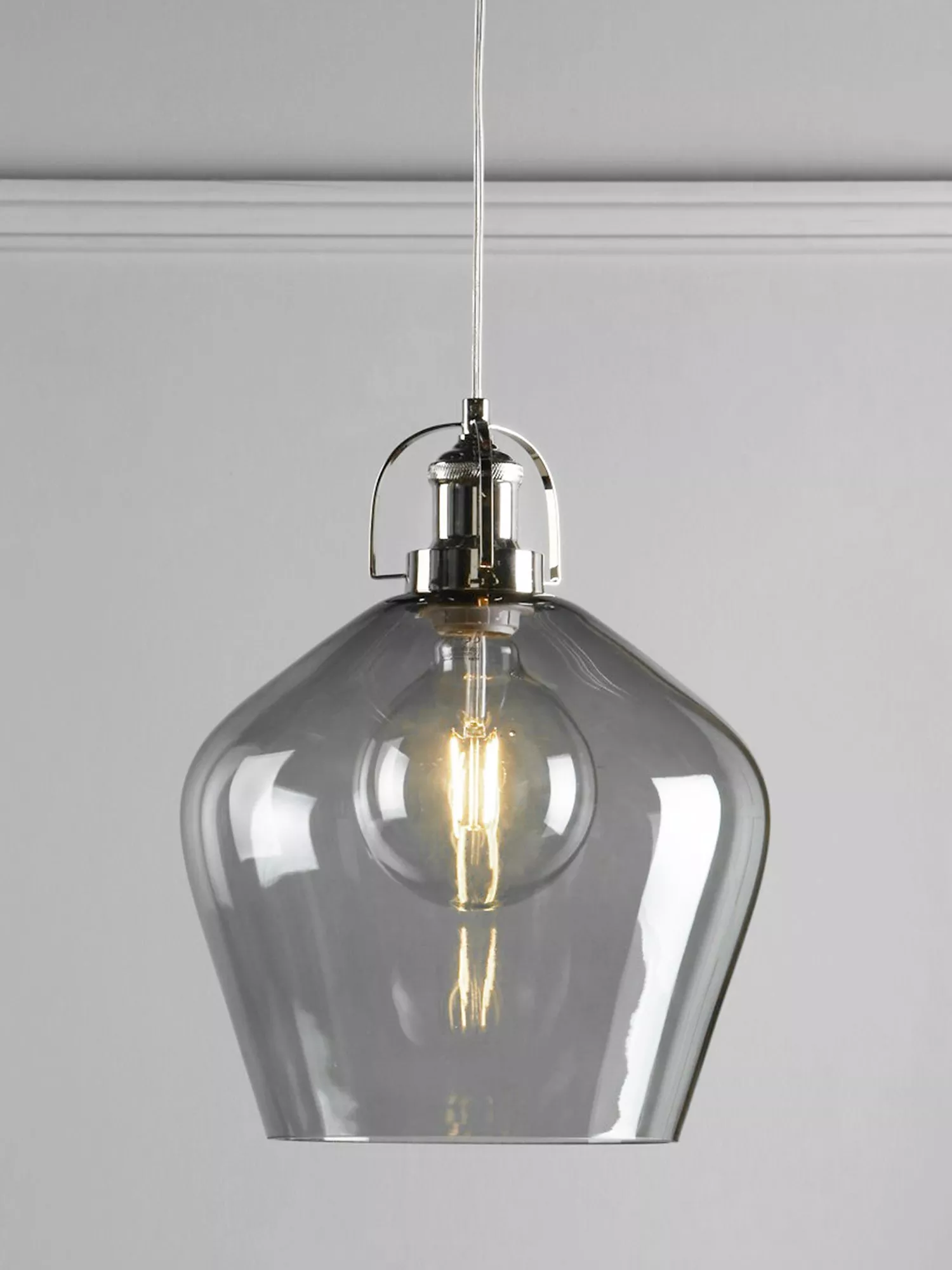 This practical and versatile ceiling fitting will give your space an instant refresh. Made with a large glass shade and decorated with vintage metal fittings, it's height-adjustable at the point of installation and available in a clear or smoked finish. It requires one LED bulb and will cast a warm and direct glow of light.