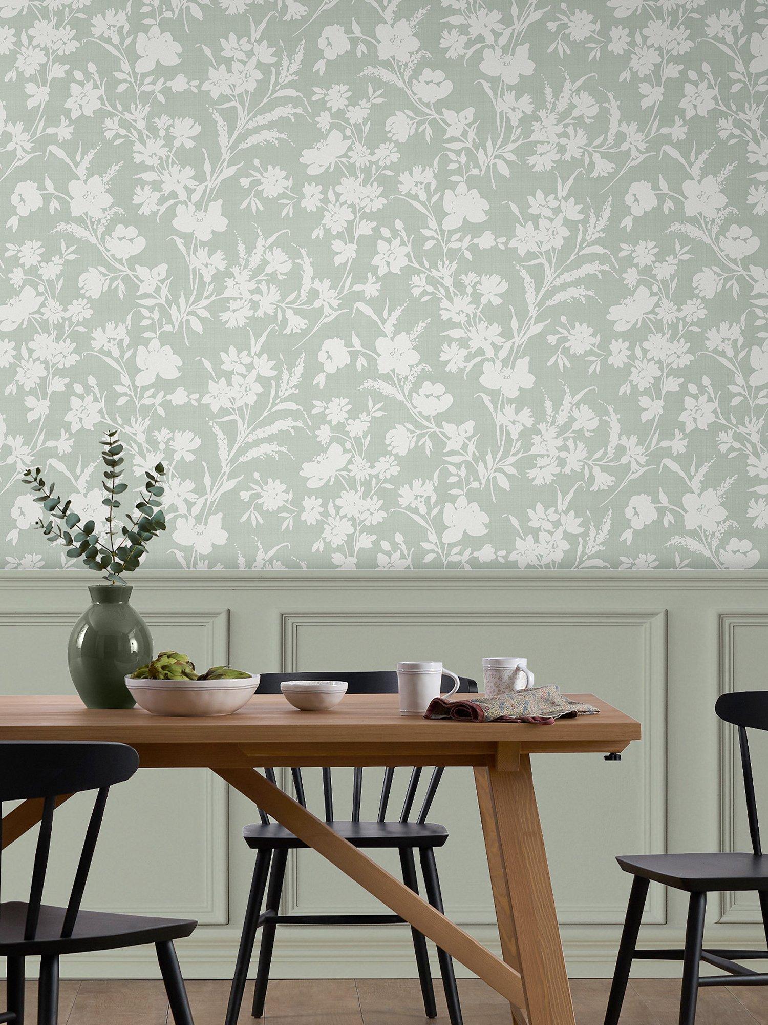 Charismatic and pretty, this striking floral monoprint was inspired by a wallpaper held in the Laura Ashley archive, from 1996. The Rye design incorporates a trailing floral motif, featuring large flowerheads, leaves and stems.