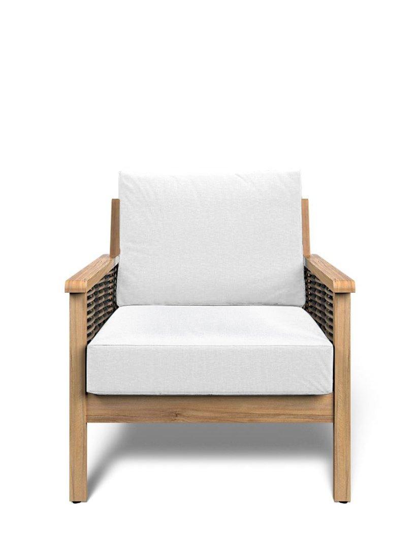 - Two Salcey woven lounge chairs with Oakley Canvas outdoor fabric seat and backrest cushions