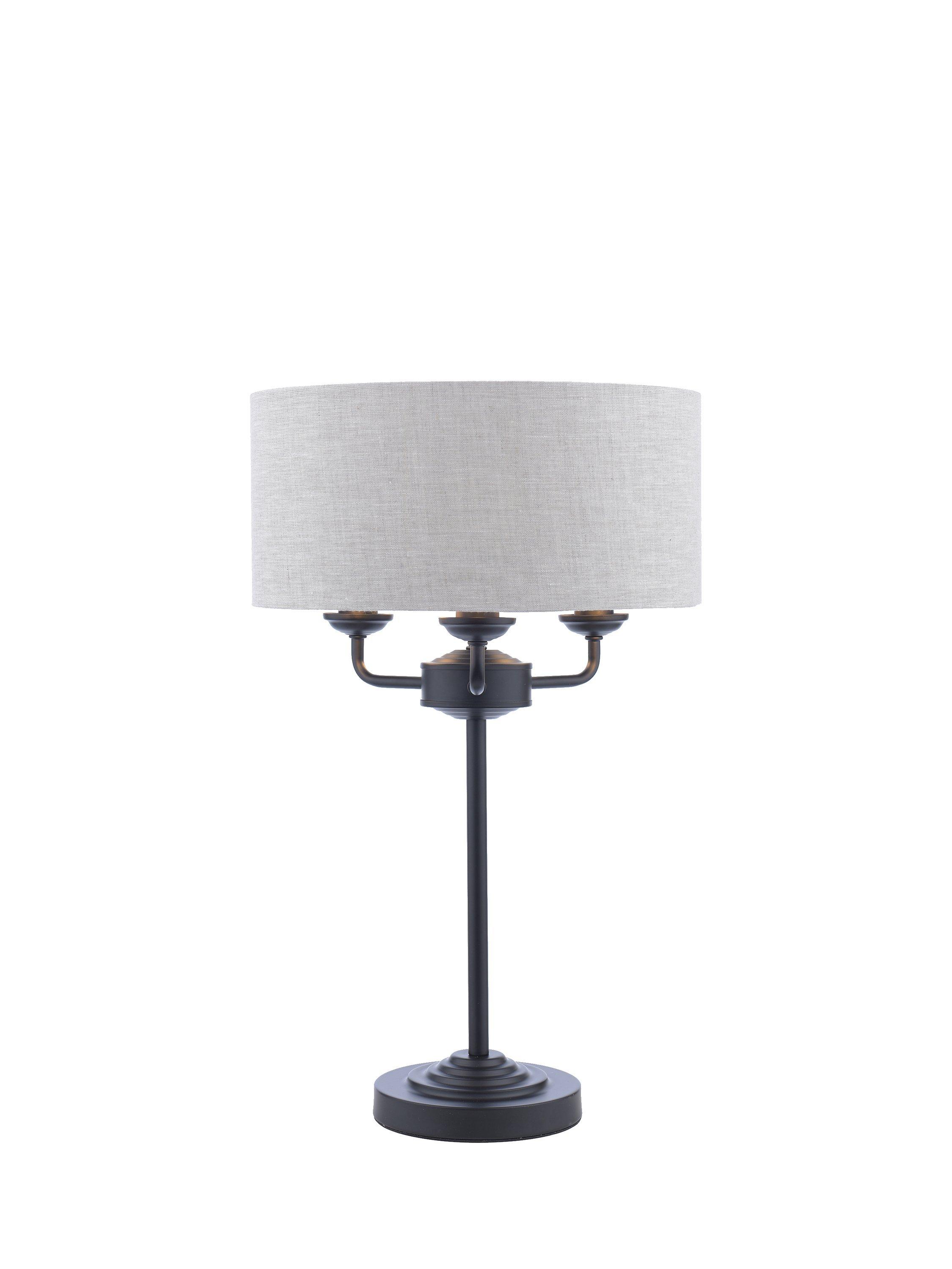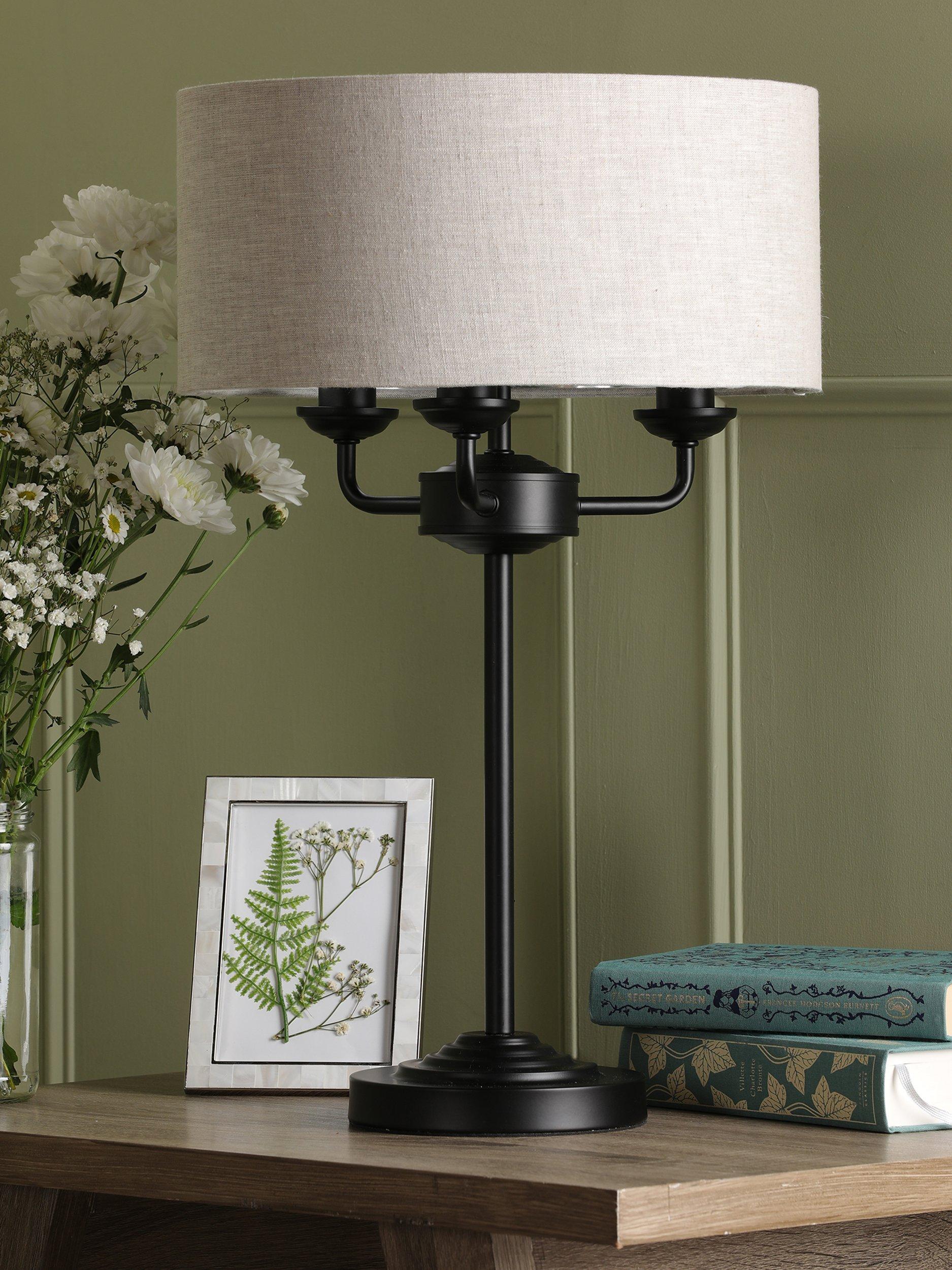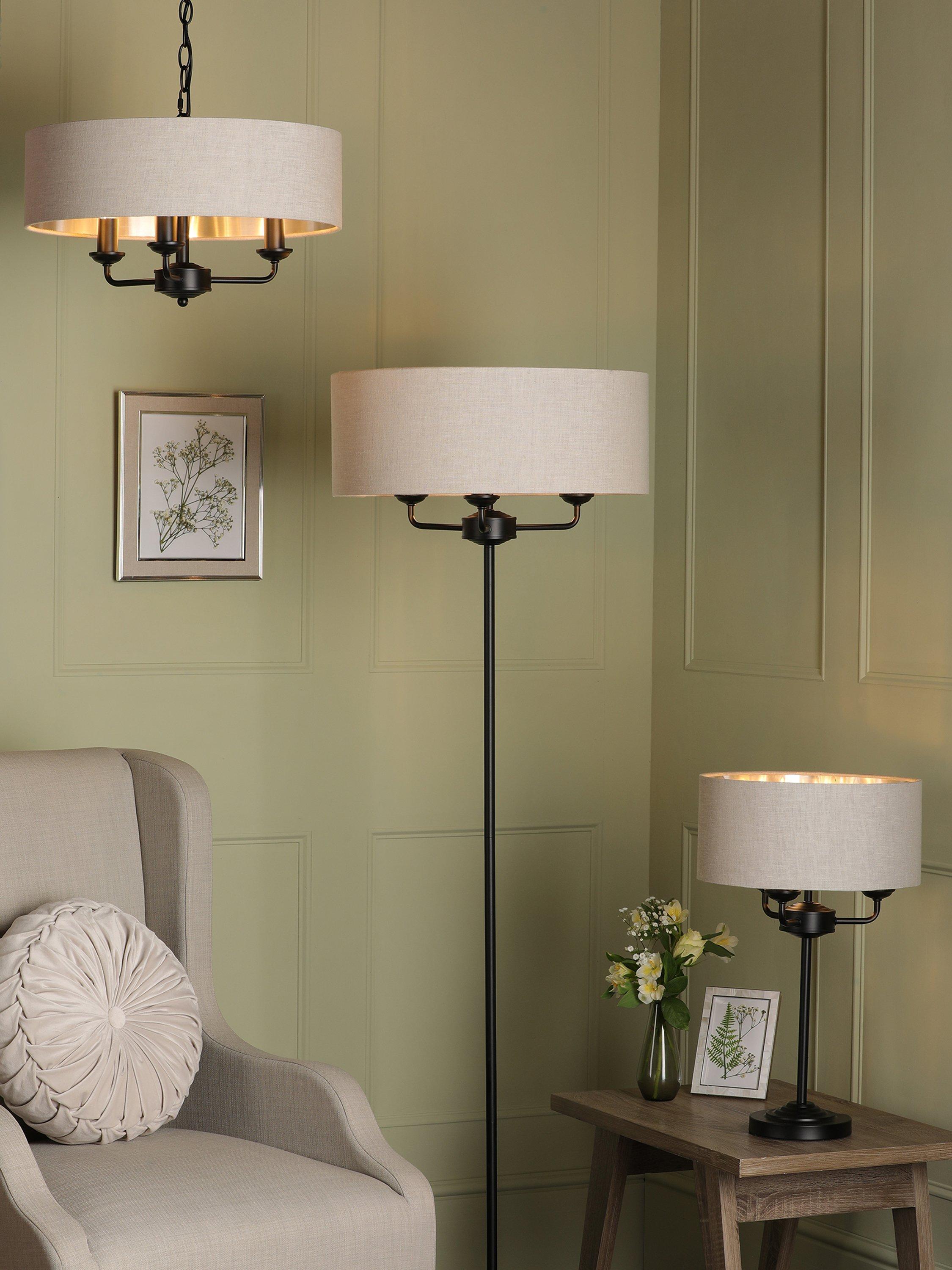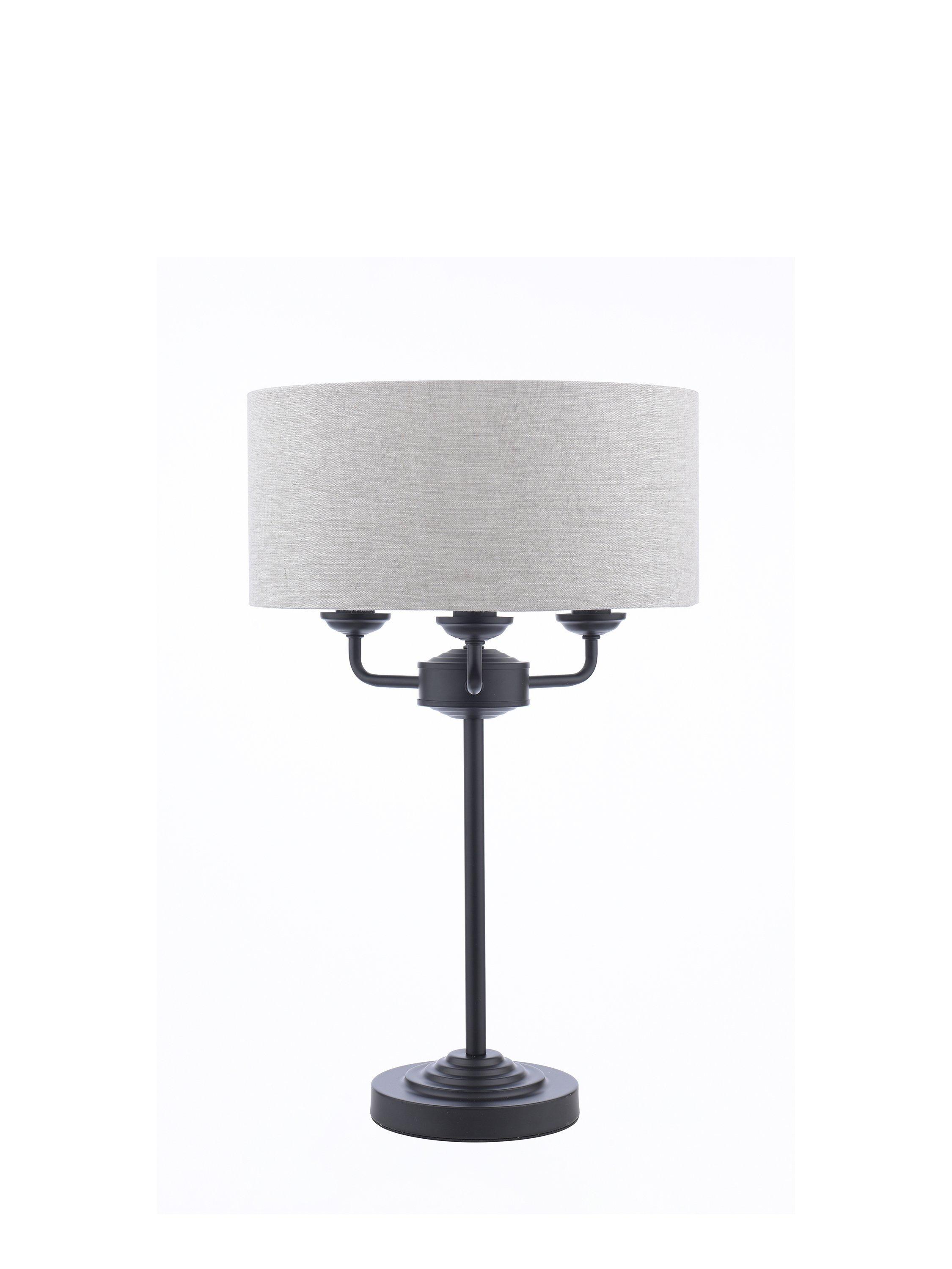 A simple table lamp that's effortlessly grand and will give your space an Art-Deco inspired styling point. It's designed with a slim, single stem that supports three arms, all surrounded by a slubbed linen lampshade. Requiring three bulbs in total, it offers a bright glow of light when illuminated, enhanced thanks to the metallic finish inside the lampshade. Plus, it has a discreet clear cable and handy in-line rocker switch.