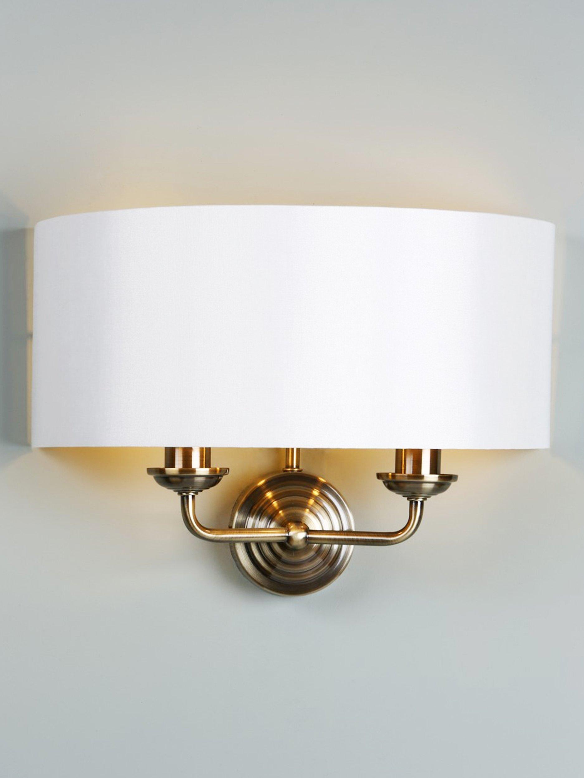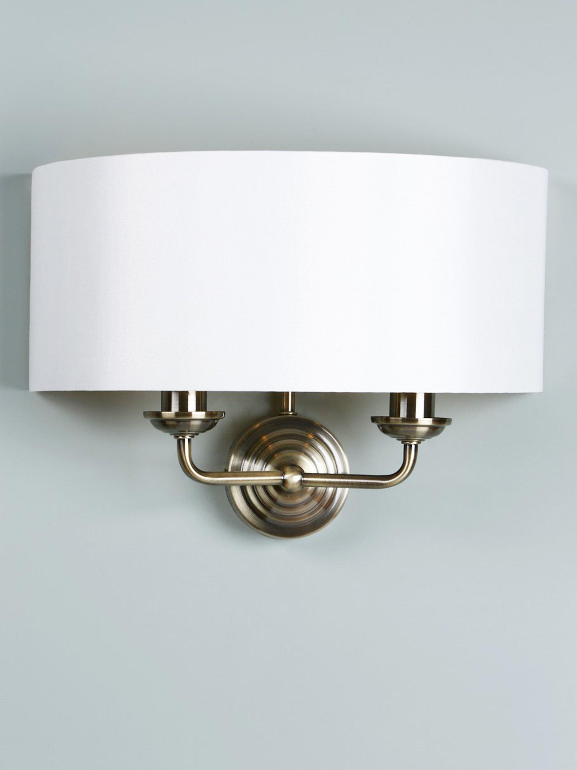 With its timeless, Art-Deco-inspired design, it's easy to style this wall light in your home. Two metal arms are encased by a demi-drum lampshade. When illuminated, it will spread a warm glow of light up the wall. The metal is available in a choice of finishes and the lampshade is made from a slubbed linen fabric with a metallic inner, designed to enhance the glow of light. An ideal choice for creating ambience in your space.