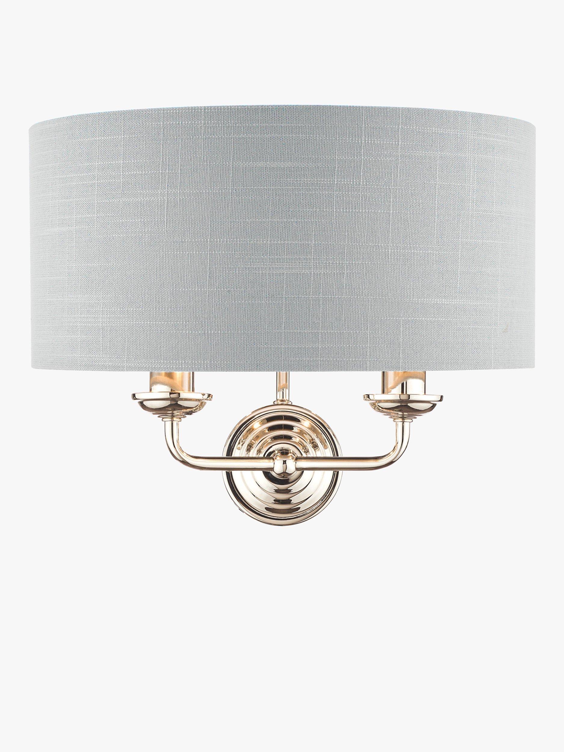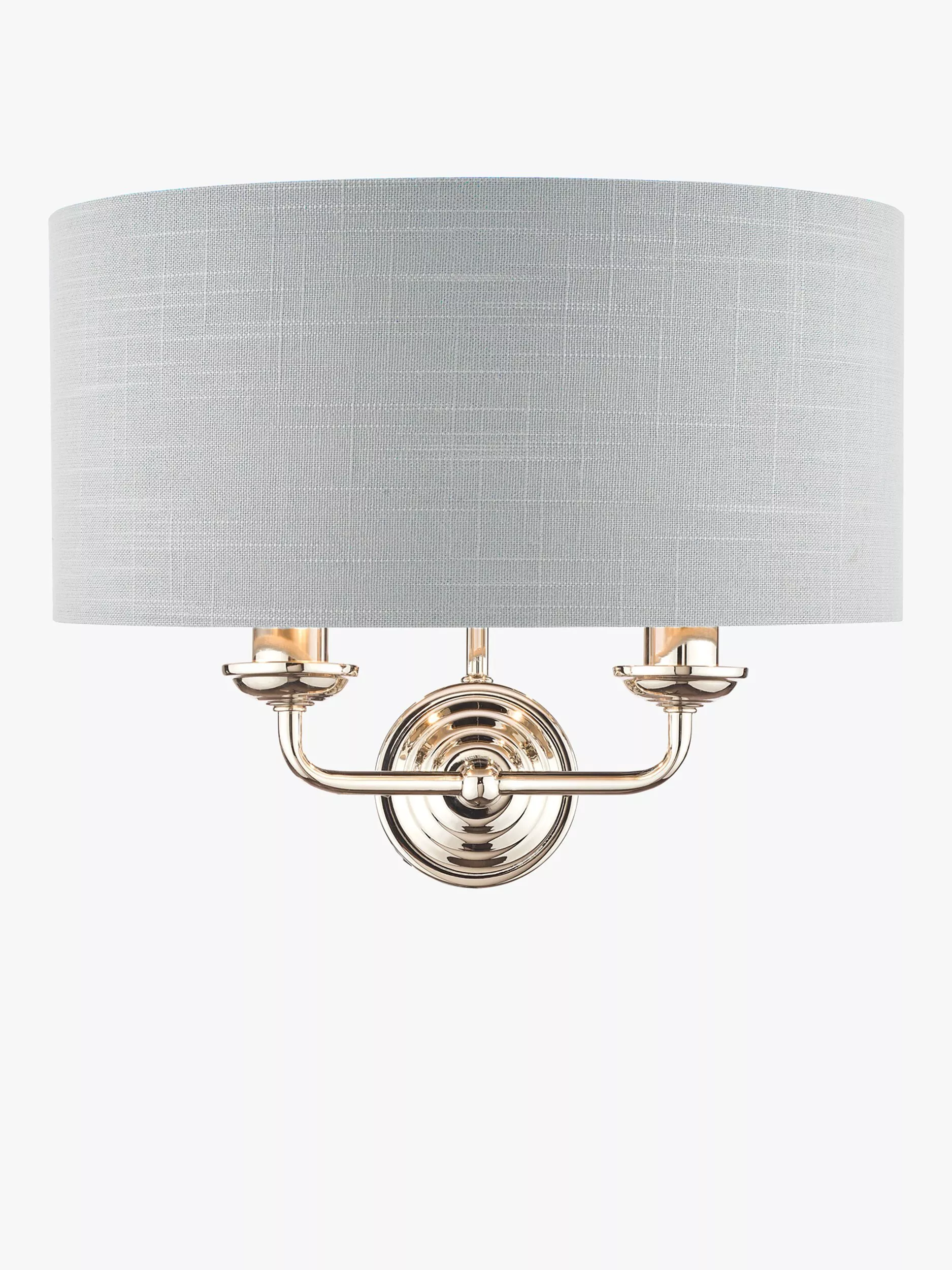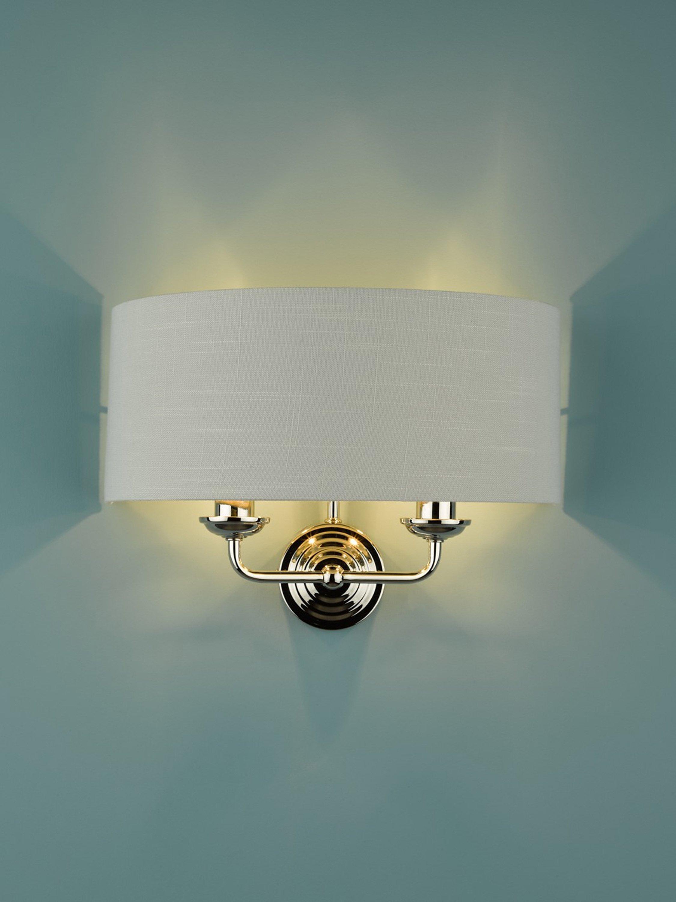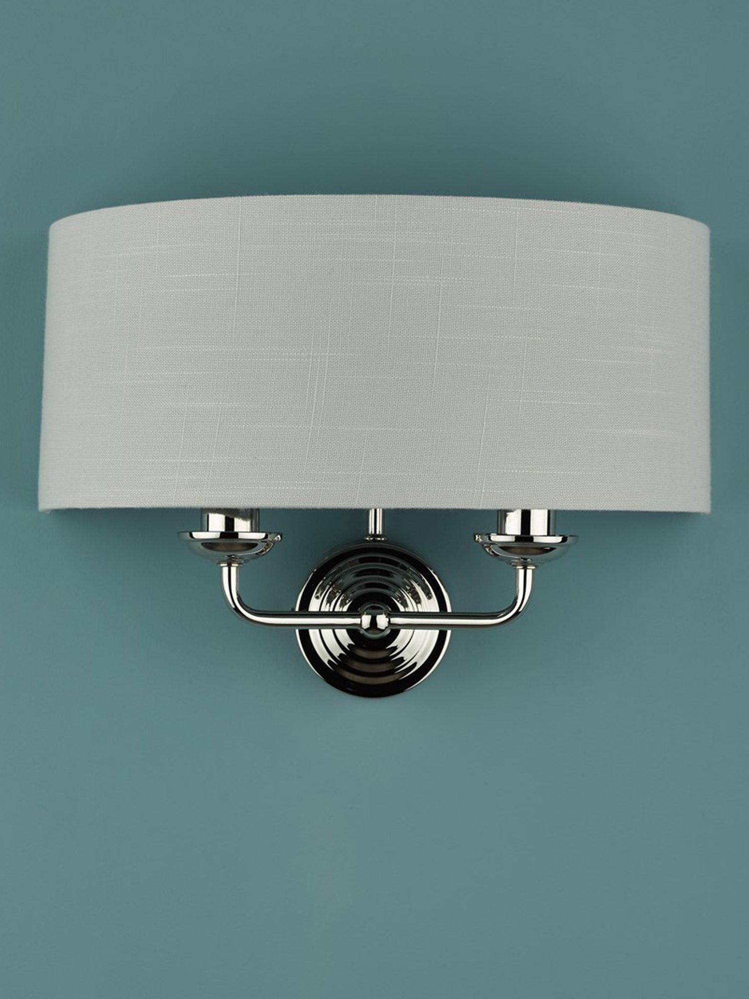 With its timeless, Art-Deco-inspired design, it's easy to style this wall light in your home. Two metal arms are encased by a demi-drum lampshade. When illuminated, it will spread a warm glow of light up the wall. The metal is available in a choice of finishes and the lampshade is made from a slubbed linen fabric with a metallic inner, designed to enhance the glow of light. An ideal choice for creating ambience in your space.
