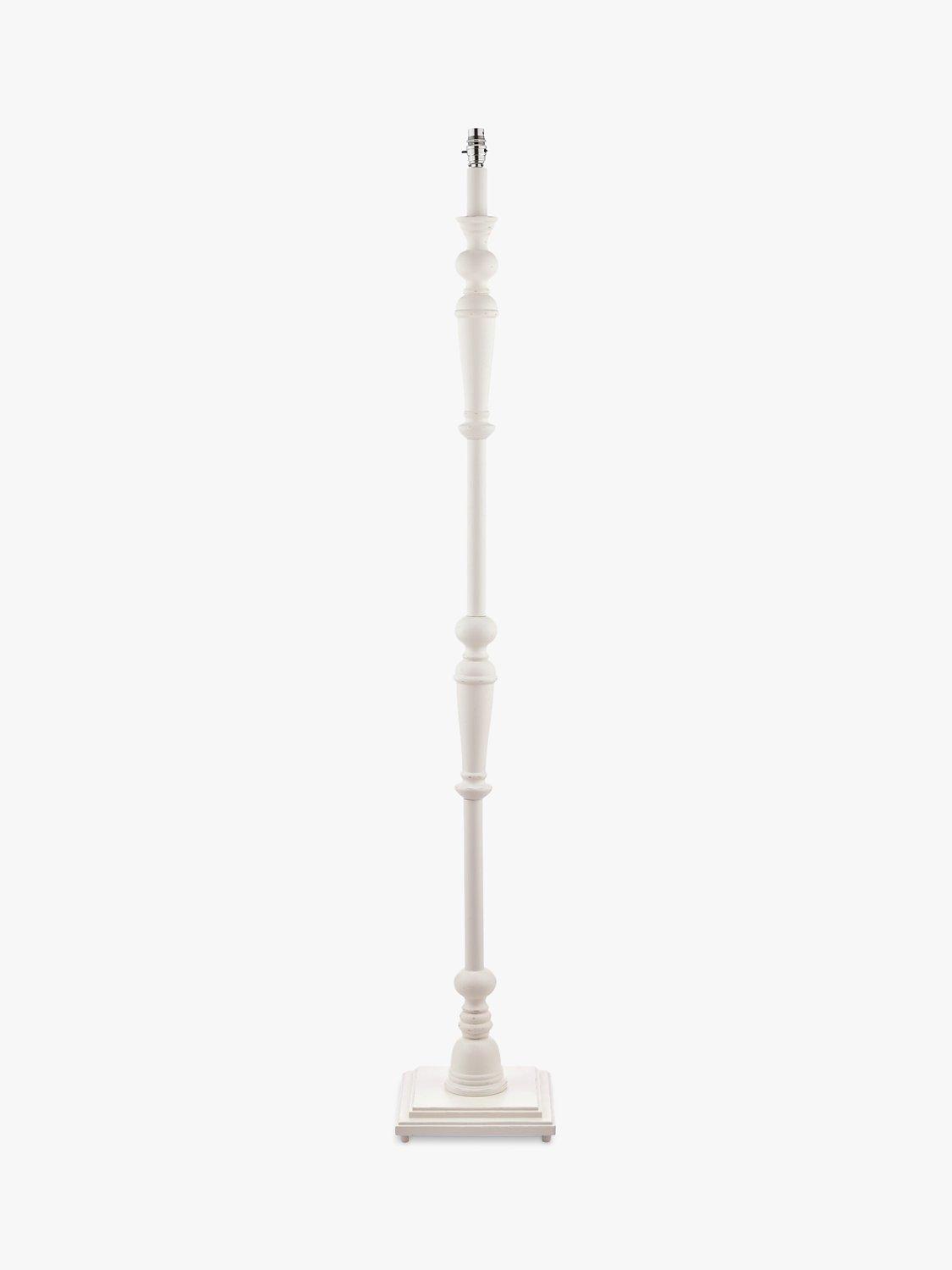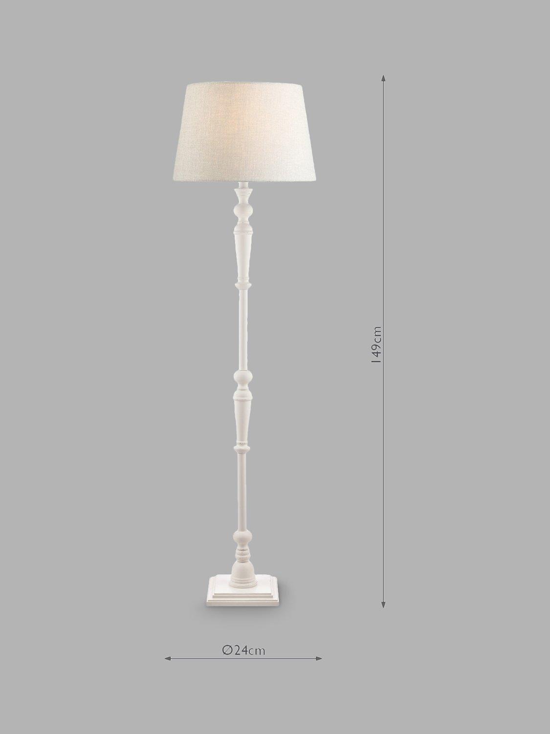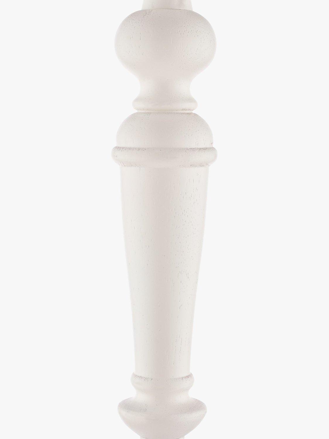 A traditional candlestick floor lamp base for a timeless update to your space. The turned wooden base is painted in a distressed matt finish and features a convenient push-bar switch. We recommend either a natural linen or silk lampshade that's Dia.40cm and above for a well-coordinated finish.