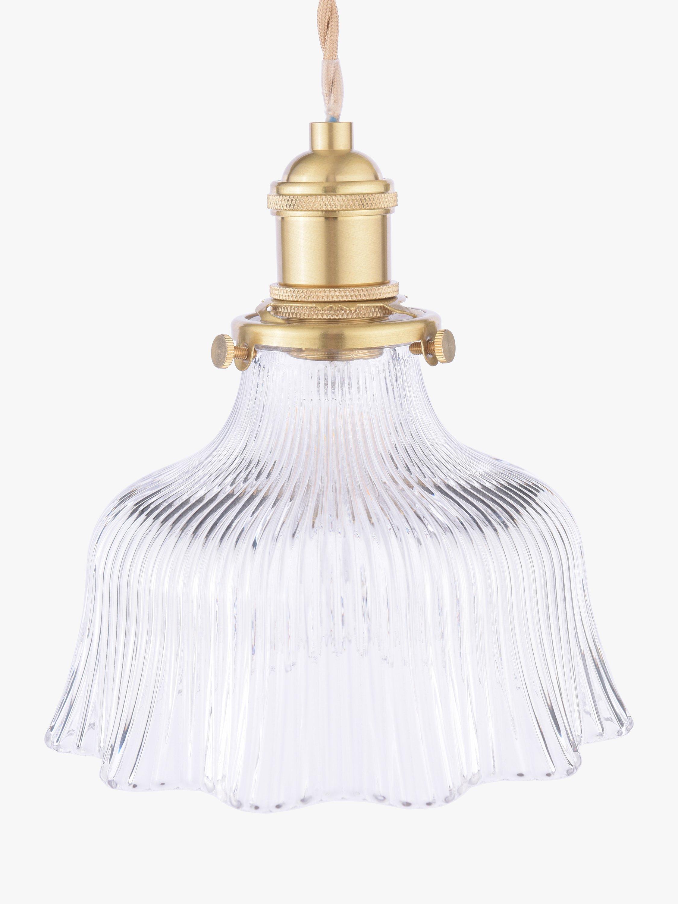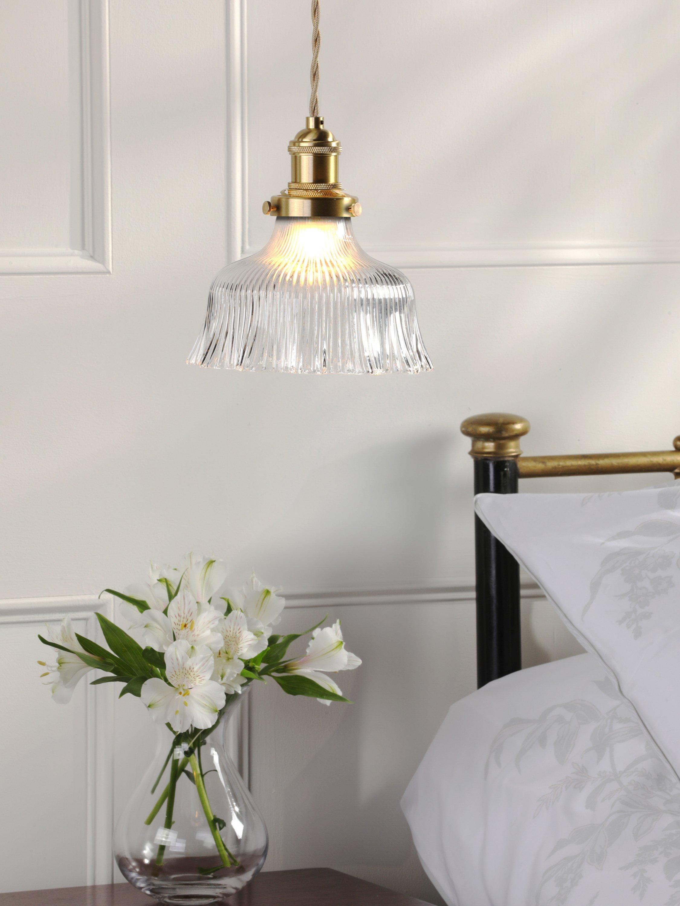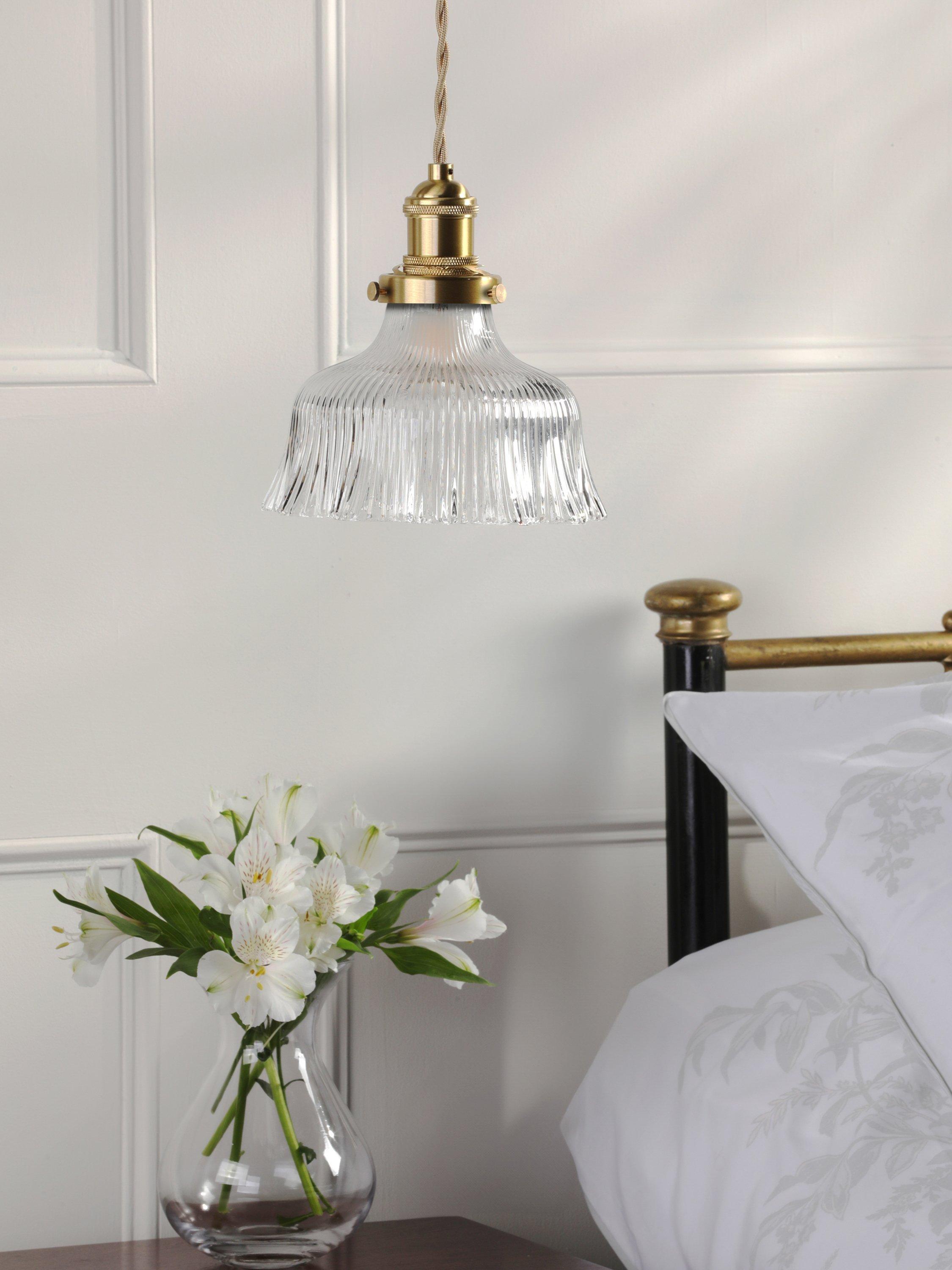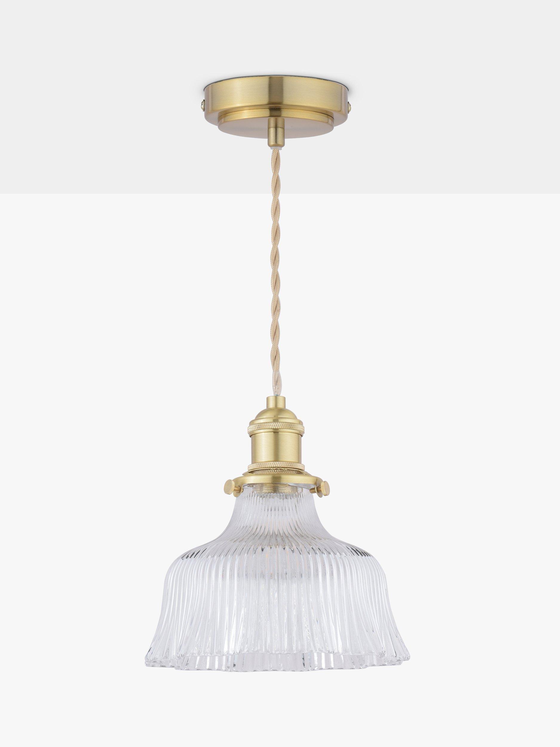 Get the restoration look with Laura Ashley’s Theodora ceiling light. Featuring a fluted, solid glass shade, perfect for a soft industrial style of décor. With a feature twisted, braided-fabric cable, this is a great alternative to a bedside lamp or task light. Bulb not included.