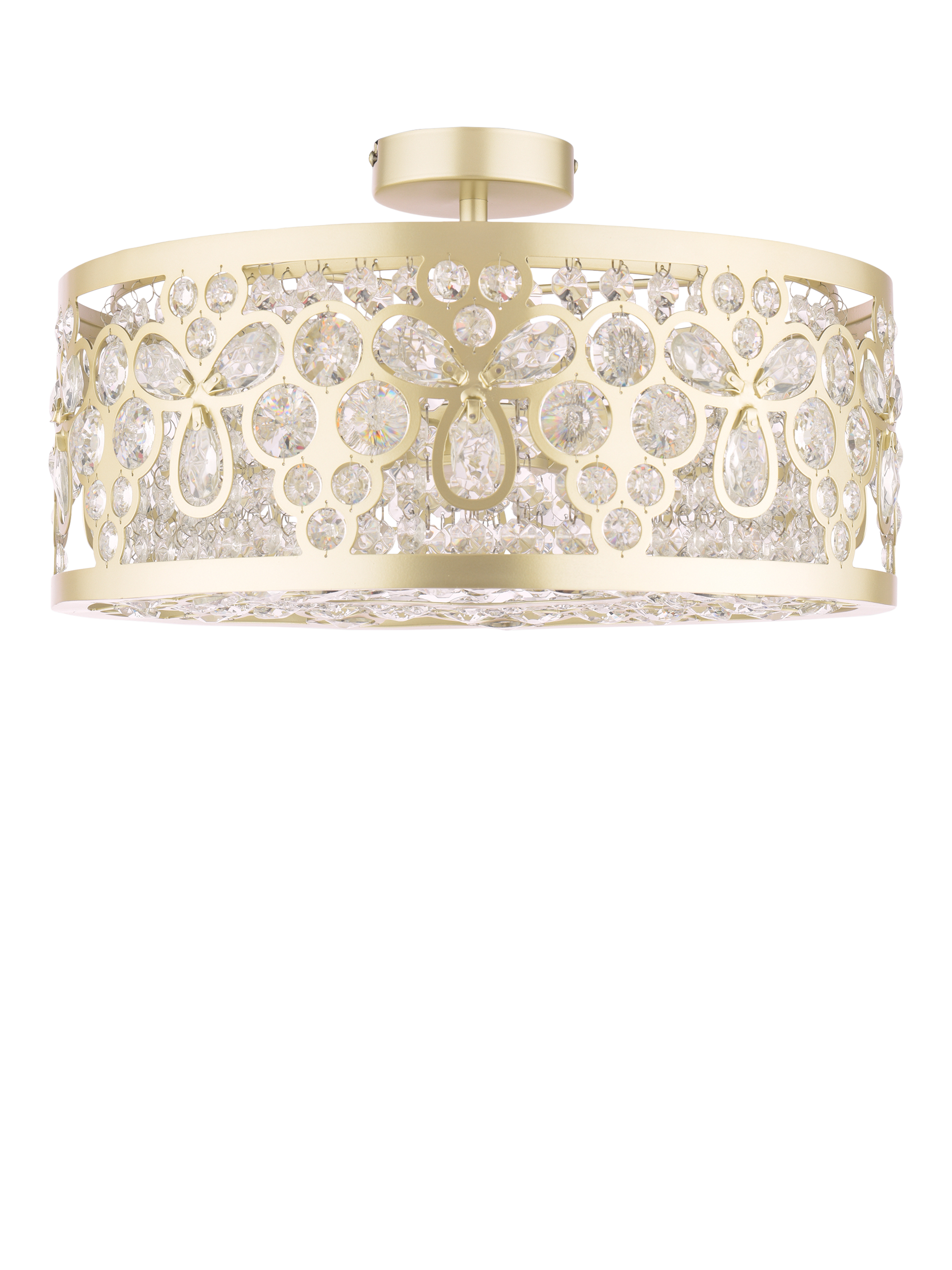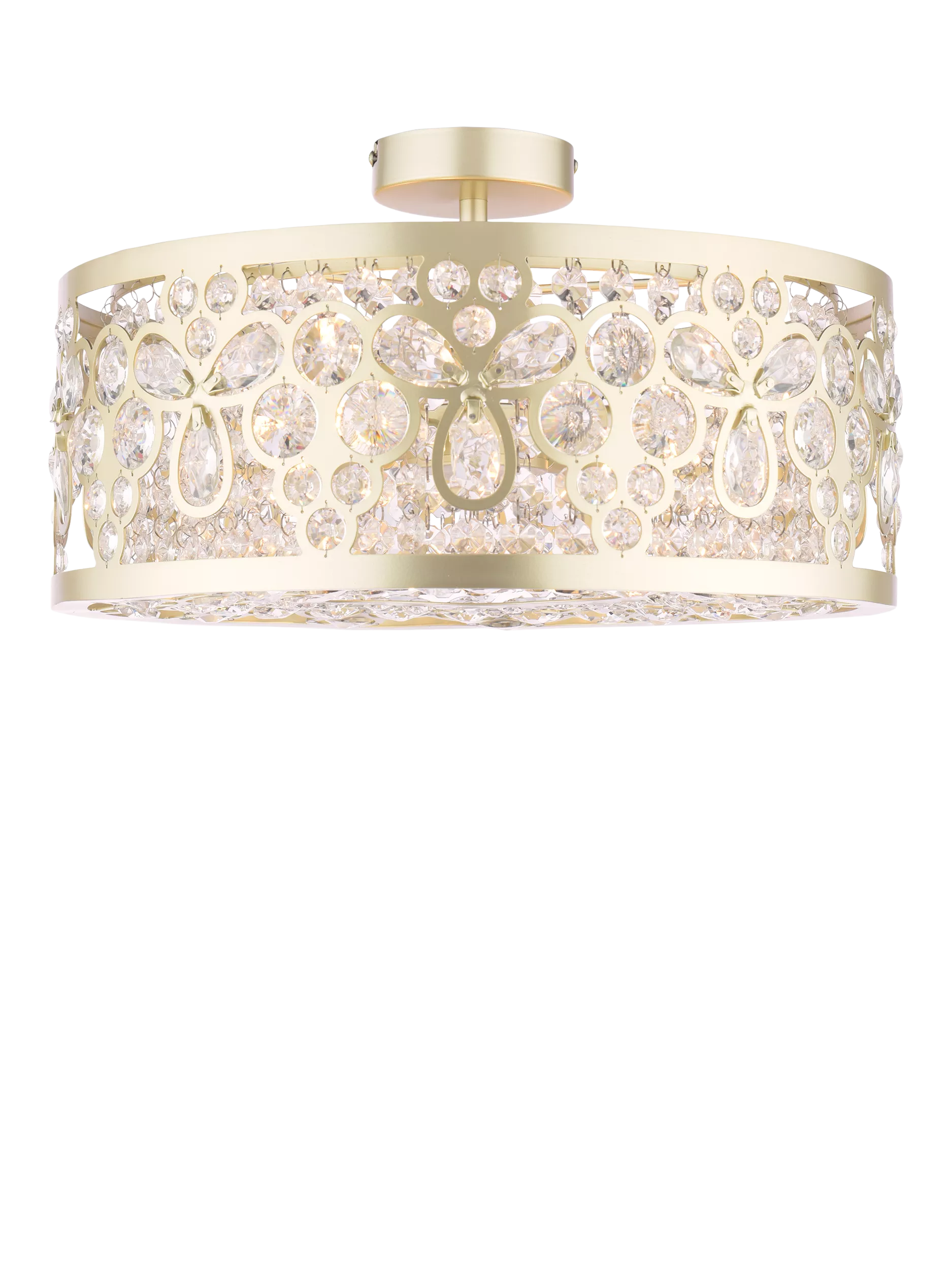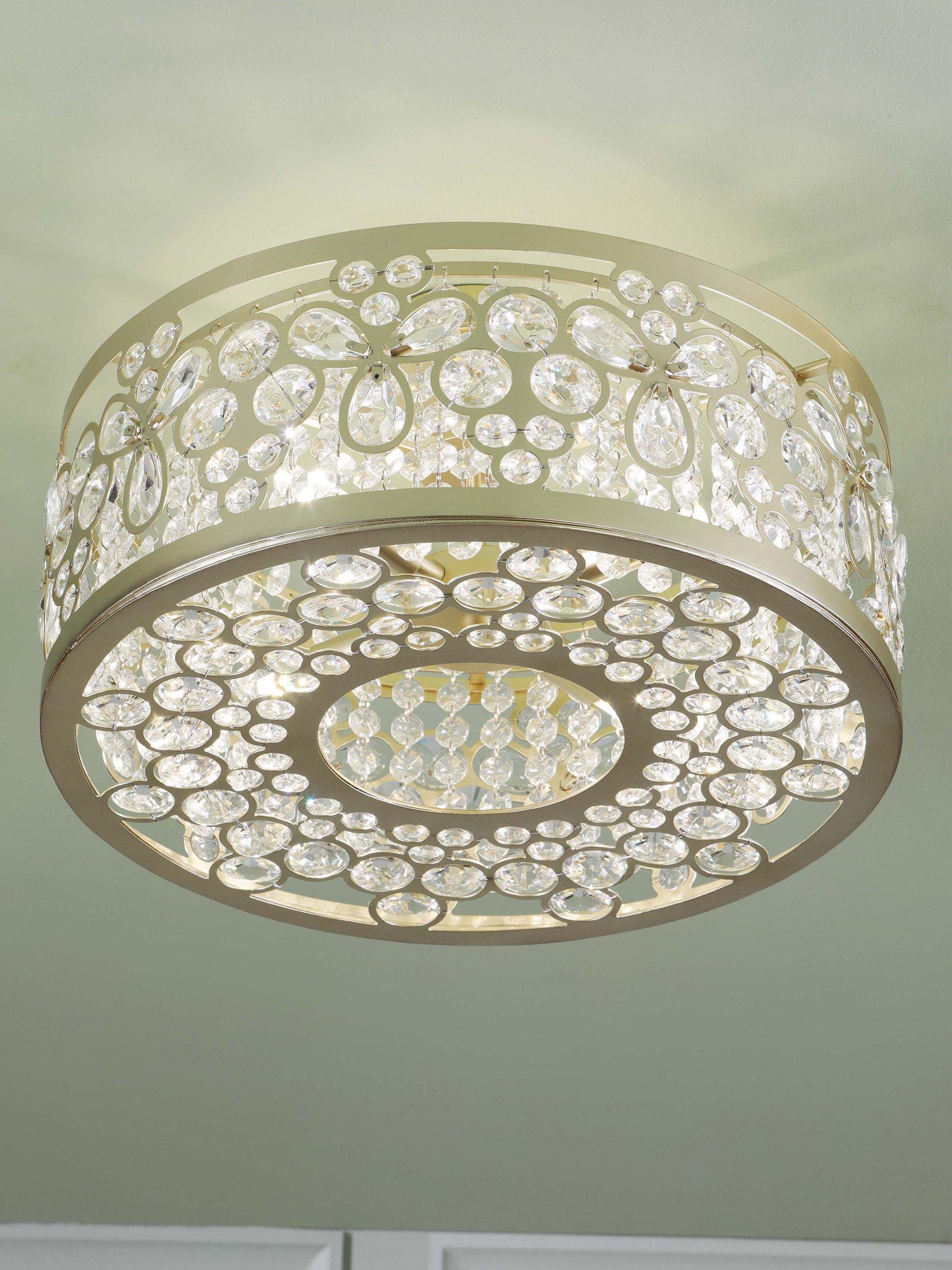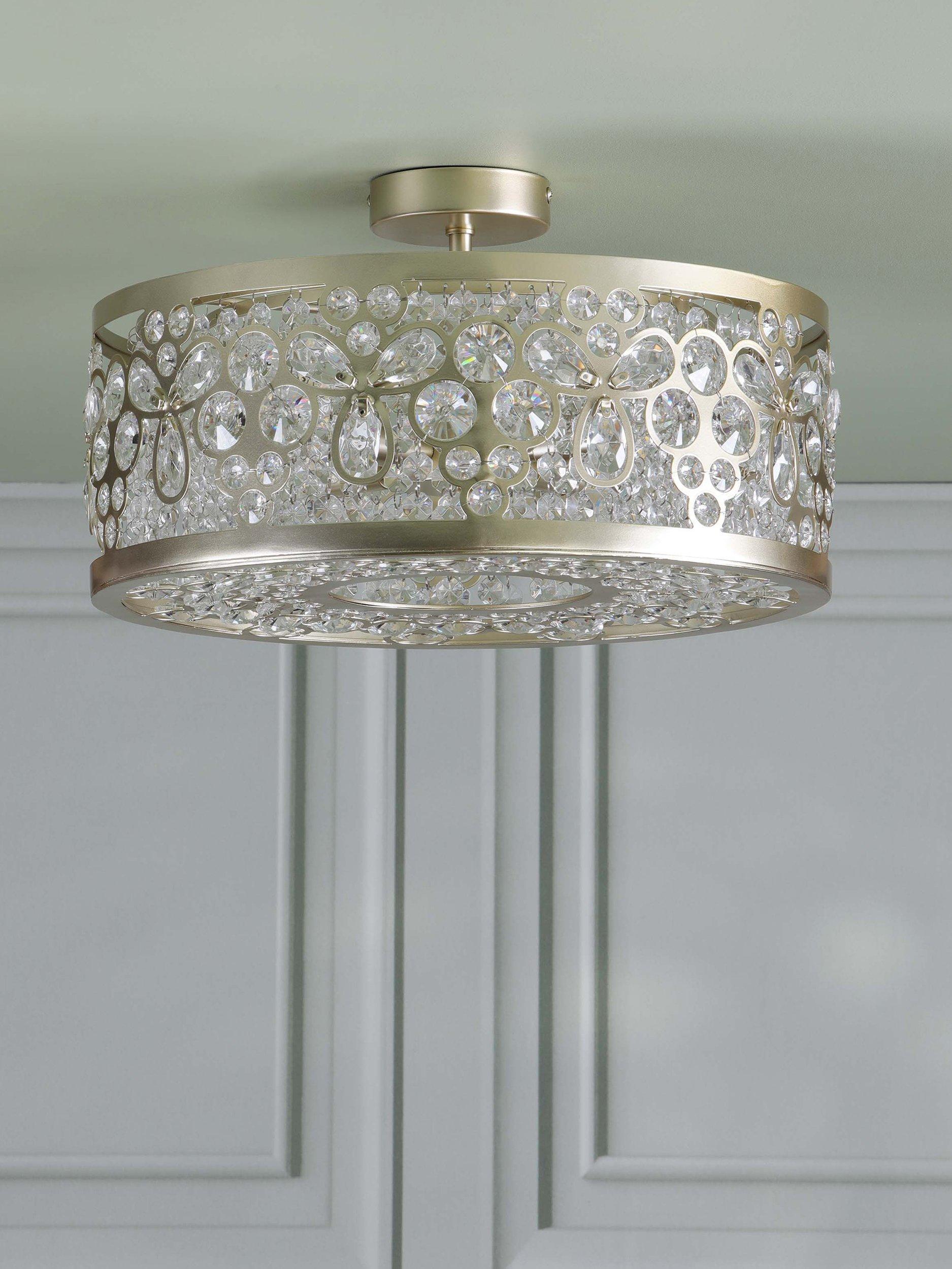 Illuminate your home with timeless style and elegance with the Laura Ashley Tilbrook flush ceiling light. Designed for rooms with low ceilings, this flush ceiling light fixture brings sophistication to any space. Its champagne finish lends a warm, luxurious glow, while clear crystal accents catch the eye with sparkle.