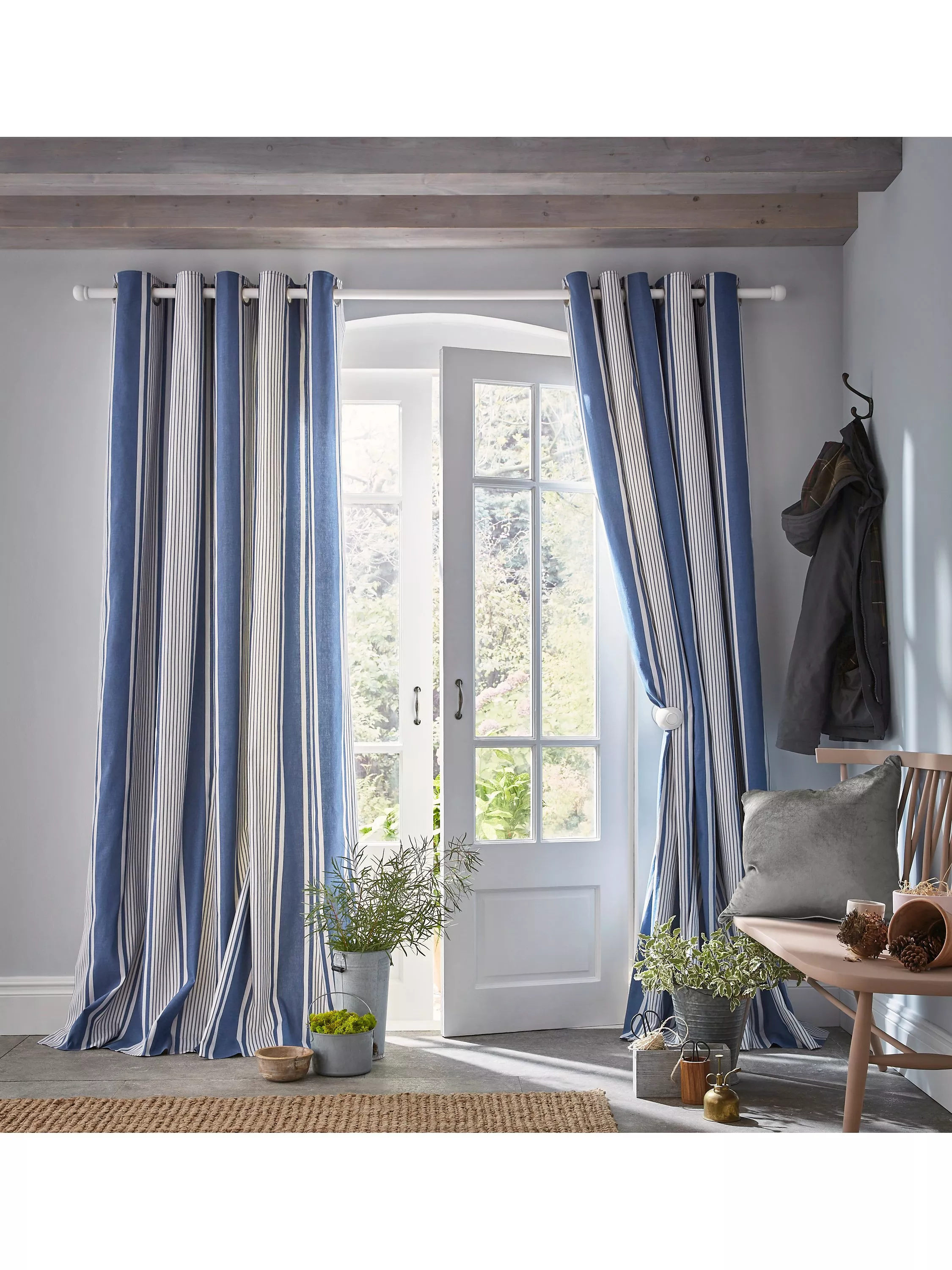 Add casual, country style to your home with these understated denim-look printed curtains. Finished with an eyelet header for a contemporary look, the Tiverton Stripe ready-made curtains are a timeless piece to elevate your home.