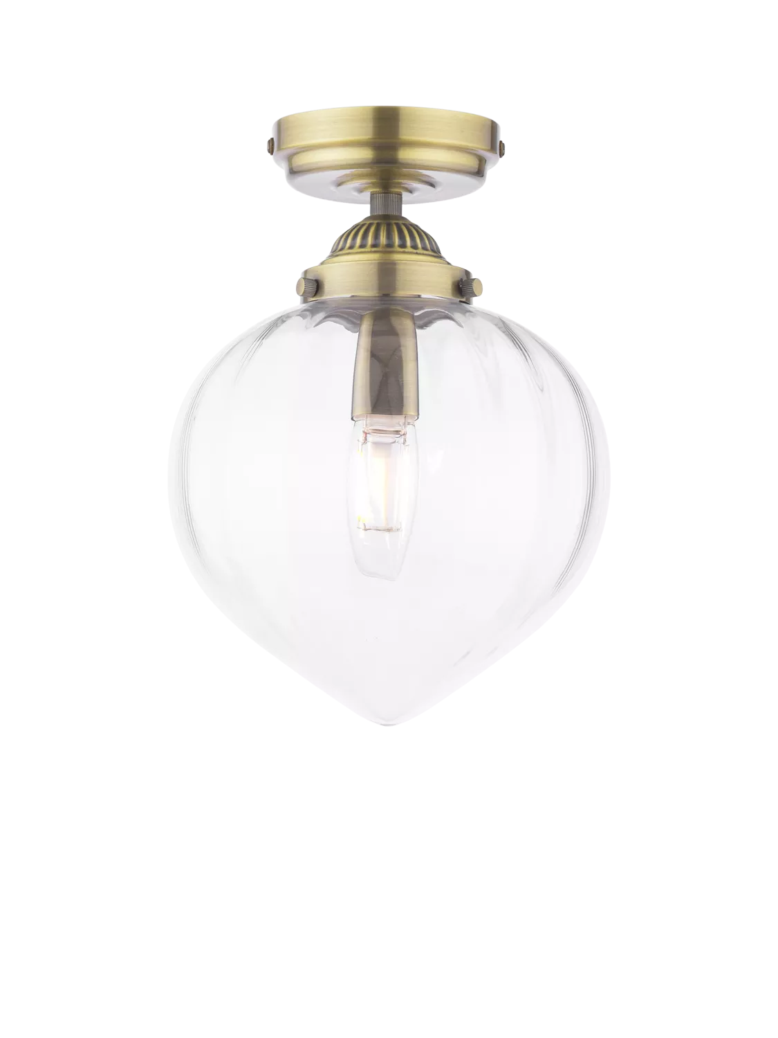Elevate your lighting with the Laura Ashley Whitham Semi-Flush Ceiling Light. This stunning light features an antique brass finish and a clear ribbed glass shade, creating a warm, inviting glow perfect for the living room, bedroom or kitchen.