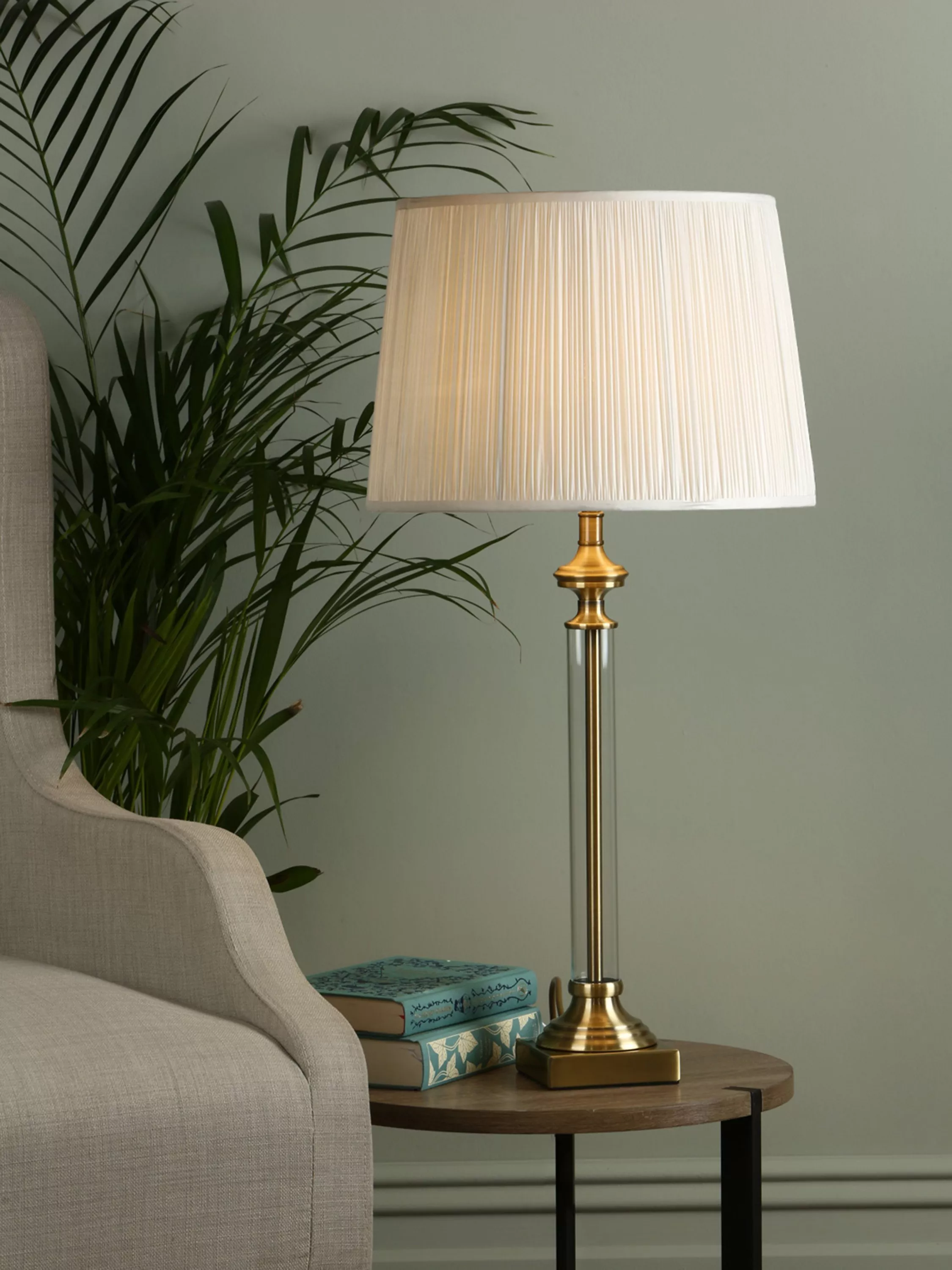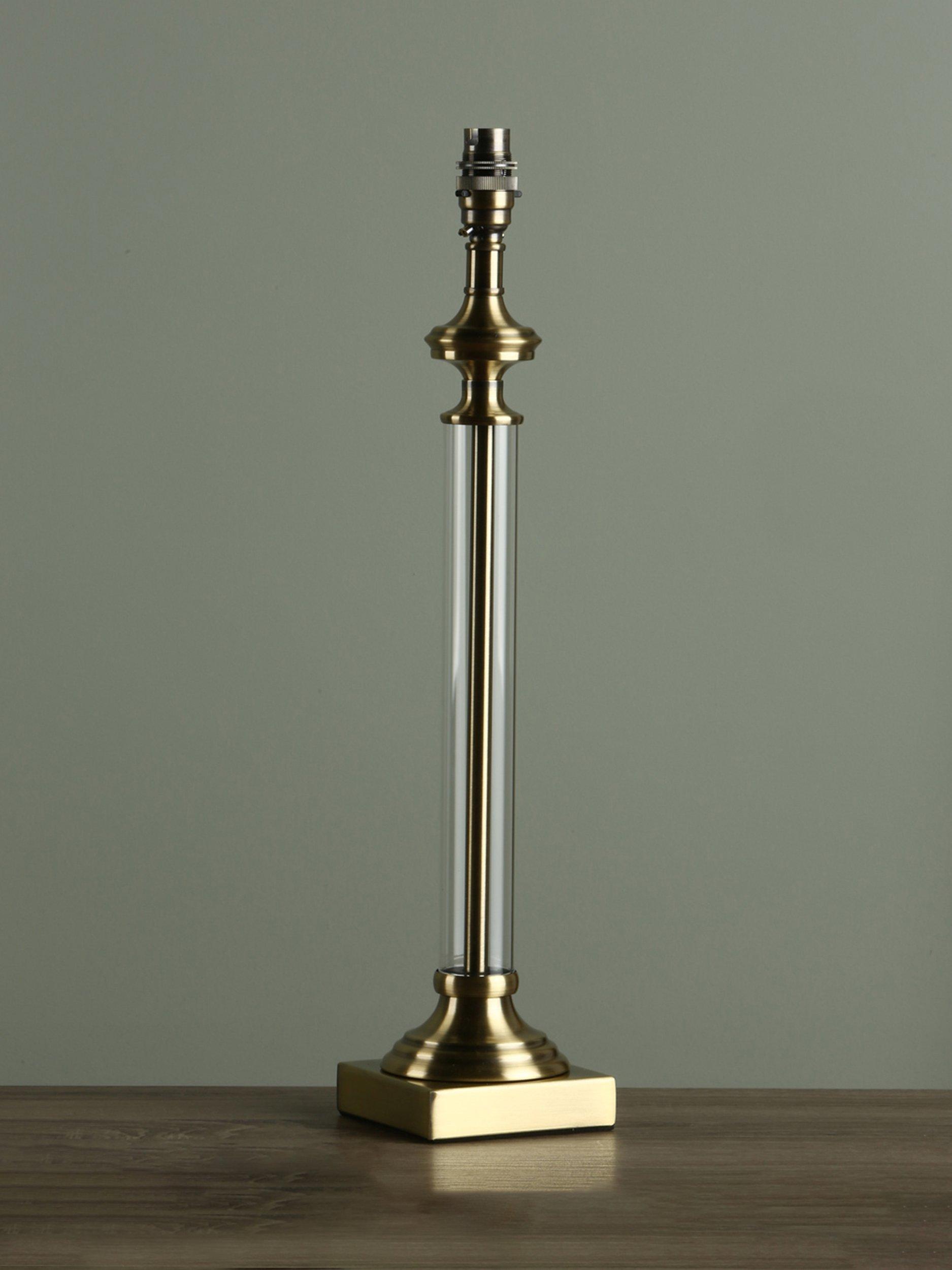 With a clear glass cylinder encapsulating a slender stem, Laura Ashley's Winston table lamp is a stylish statement piece. With ‘turned’ candlestick details and a classical form, sitting on a square pediment, this elegant table light will enhance the beauty of your favourite rooms. It comes with Laura Ashley’s 30cm Hemsley, pleated silk empire drum shade in silver; for the chrome base and in cream; for the brass base. Finished with a clear flex and a gold coloured flex respectively.