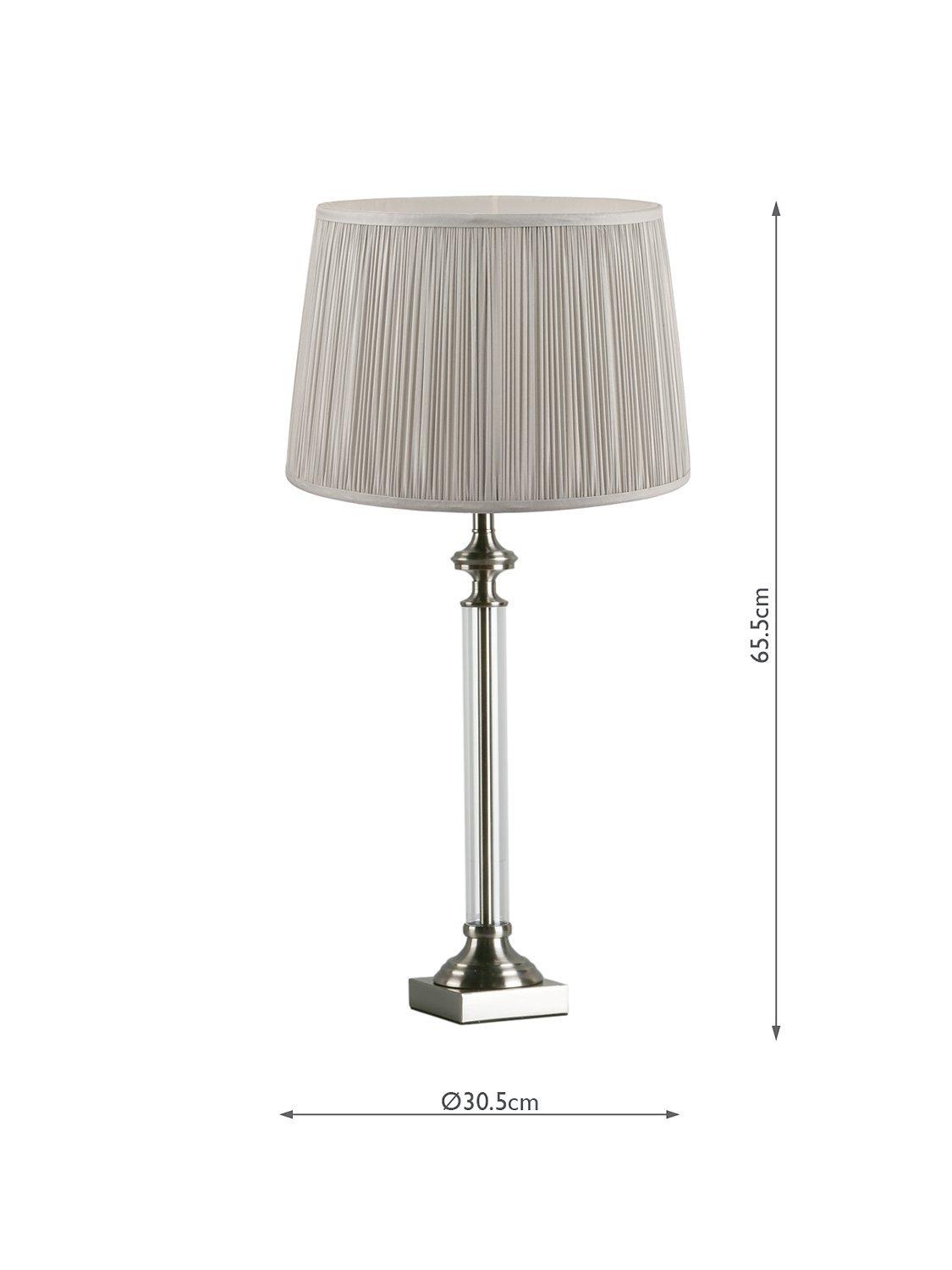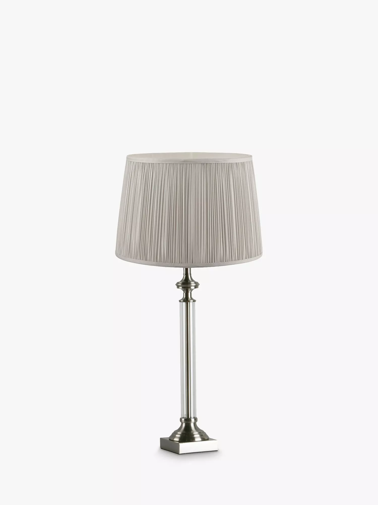 With a clear glass cylinder encapsulating a slender stem, Laura Ashley's Winston table lamp is a stylish statement piece. With ‘turned’ candlestick details and a classical form, sitting on a square pediment, this elegant table light will enhance the beauty of your favourite rooms. It comes with Laura Ashley’s 30cm Hemsley, pleated silk empire drum shade in silver; for the chrome base and in cream; for the brass base. Finished with a clear flex and a gold coloured flex respectively.
