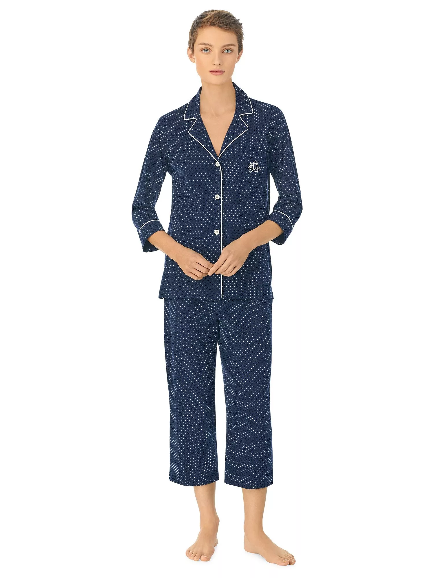 Attentively detailed with a scatter of spots, this three-quarter length sleeve pyjama set by Lauren Ralph Lauren comes with matching cropped trousers and is cut from pure cotton keeping you cool and comfortable.