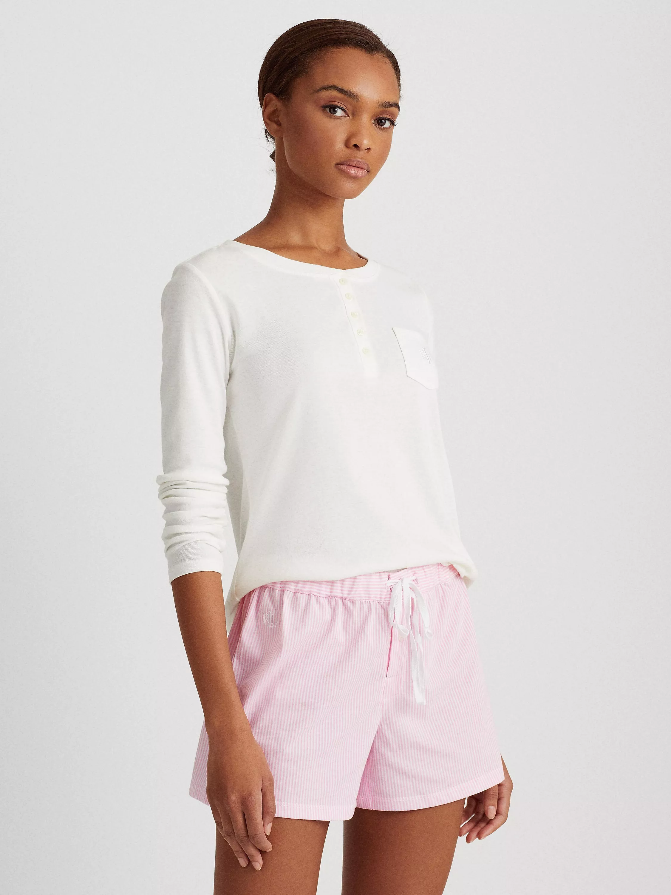 Made from soft cotton, these smartly striped pyjama shorts from Lauren Ralph Lauren have a lightweight, comfortable feel. With a classic drawstring detail, they are finished with a monogram logo for a premium touch.