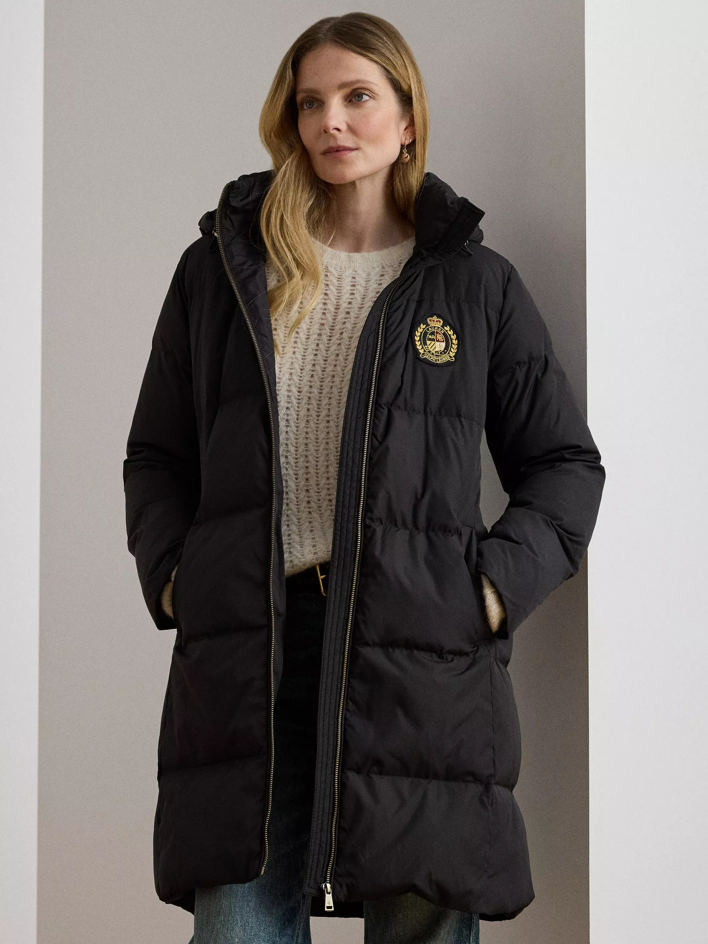 Ralph LaurenLauren Ralph Lauren Crest Patch Hooded Quilted Down Coat, Black