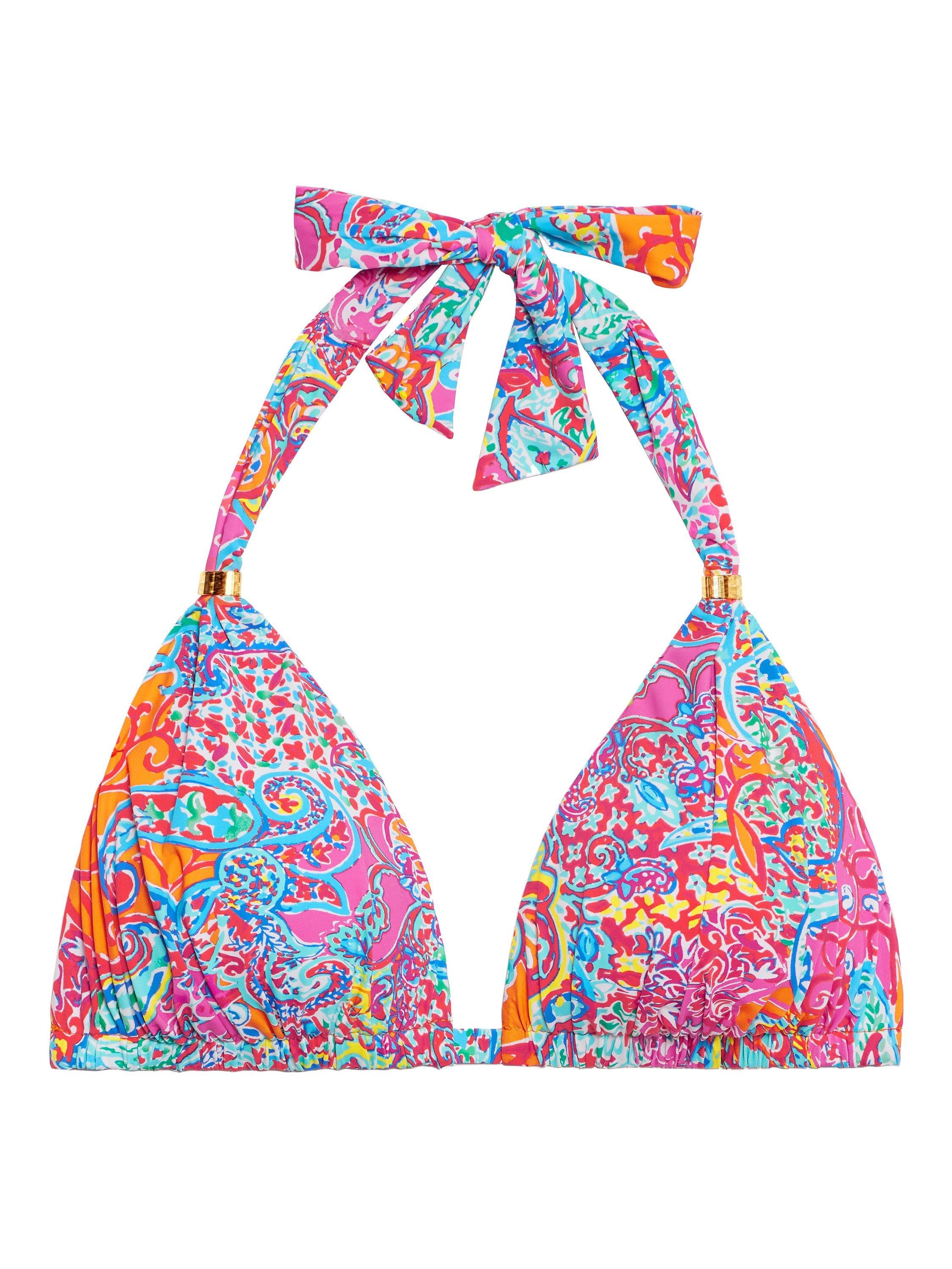 In a bright and colourful print, this bikini top from Lauren Ralph Lauren has a halterneck with adjustable strings and moulded cups.