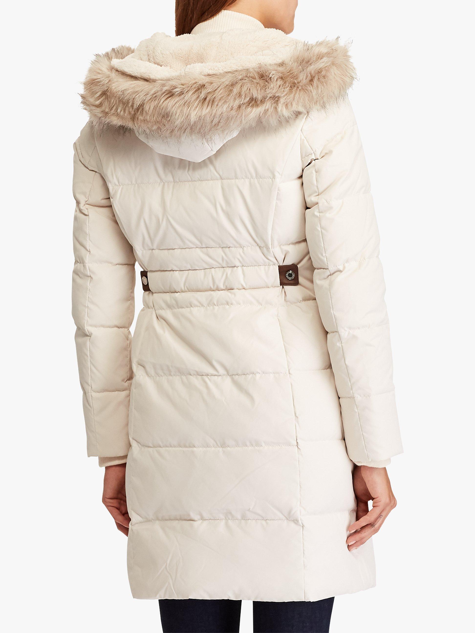 Keeping you warm with its quilted down padding and cosy sherpa style lining, this jacket form Lauren Ralph Lauren is a staple outerwear piece for cooler days. Offering protection from the rain with a hood, it gives you a neat silhouette with a cinched back detail and is topped with faux leather trims and zip pulls for a tactile finishing touch.