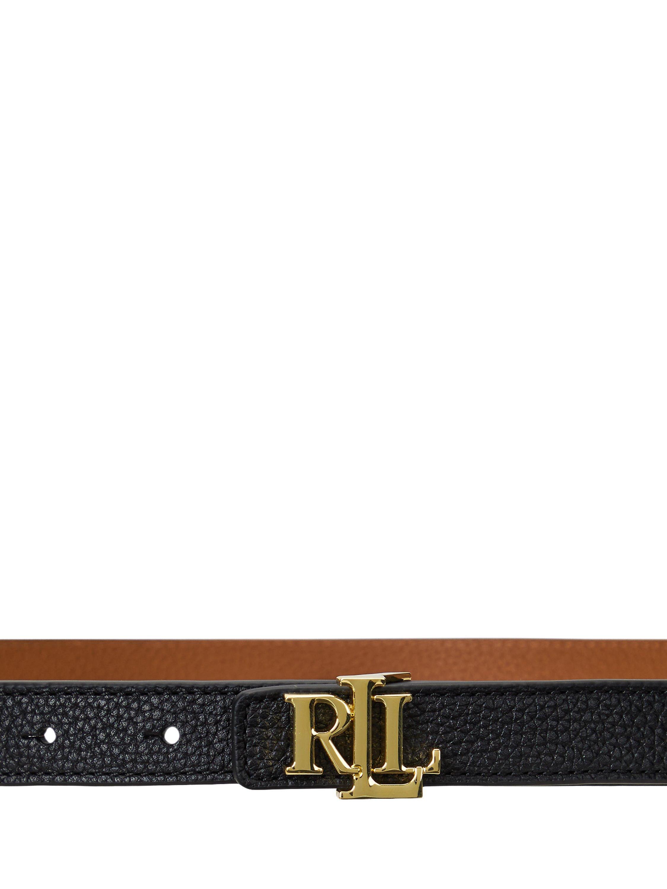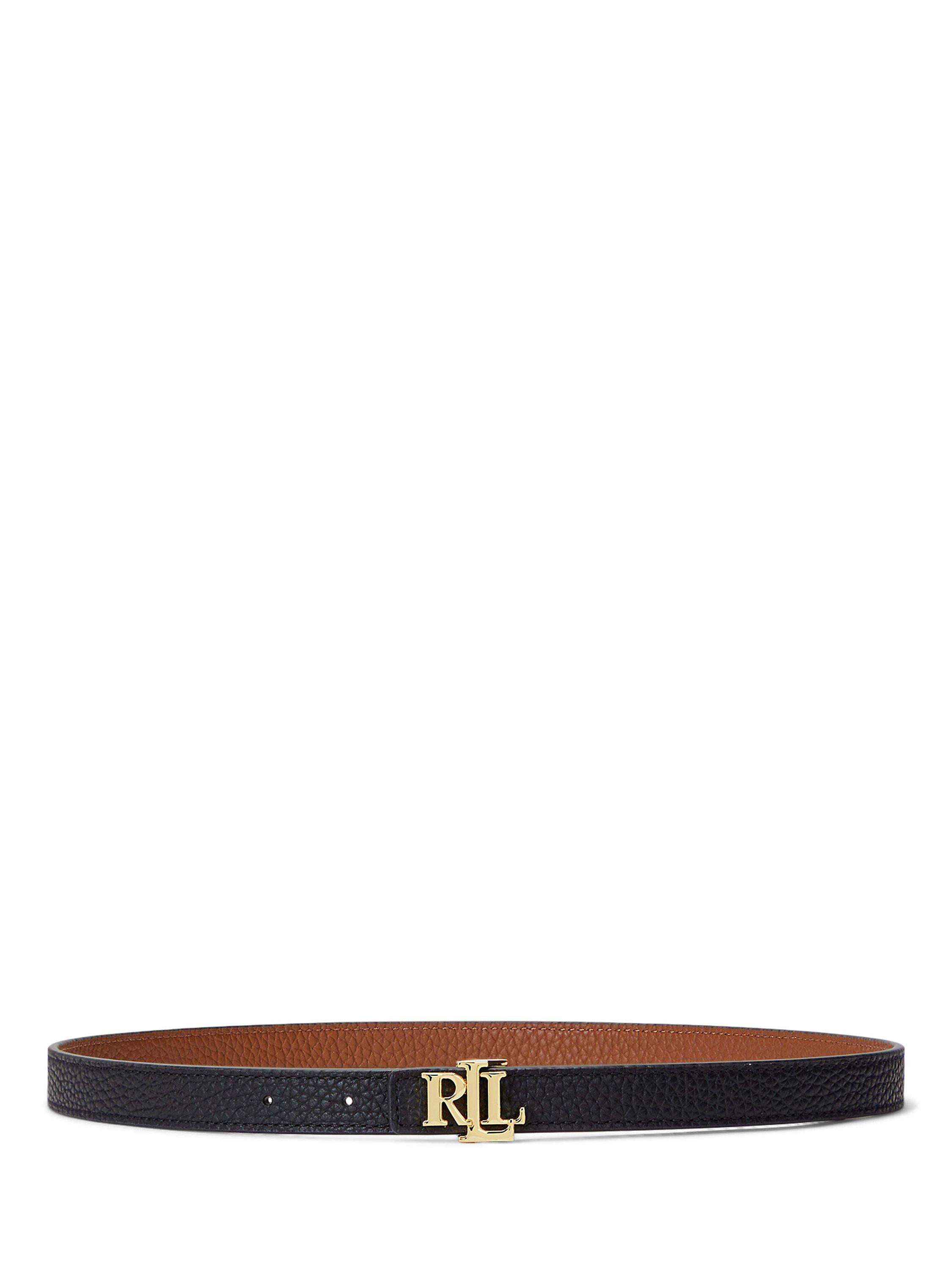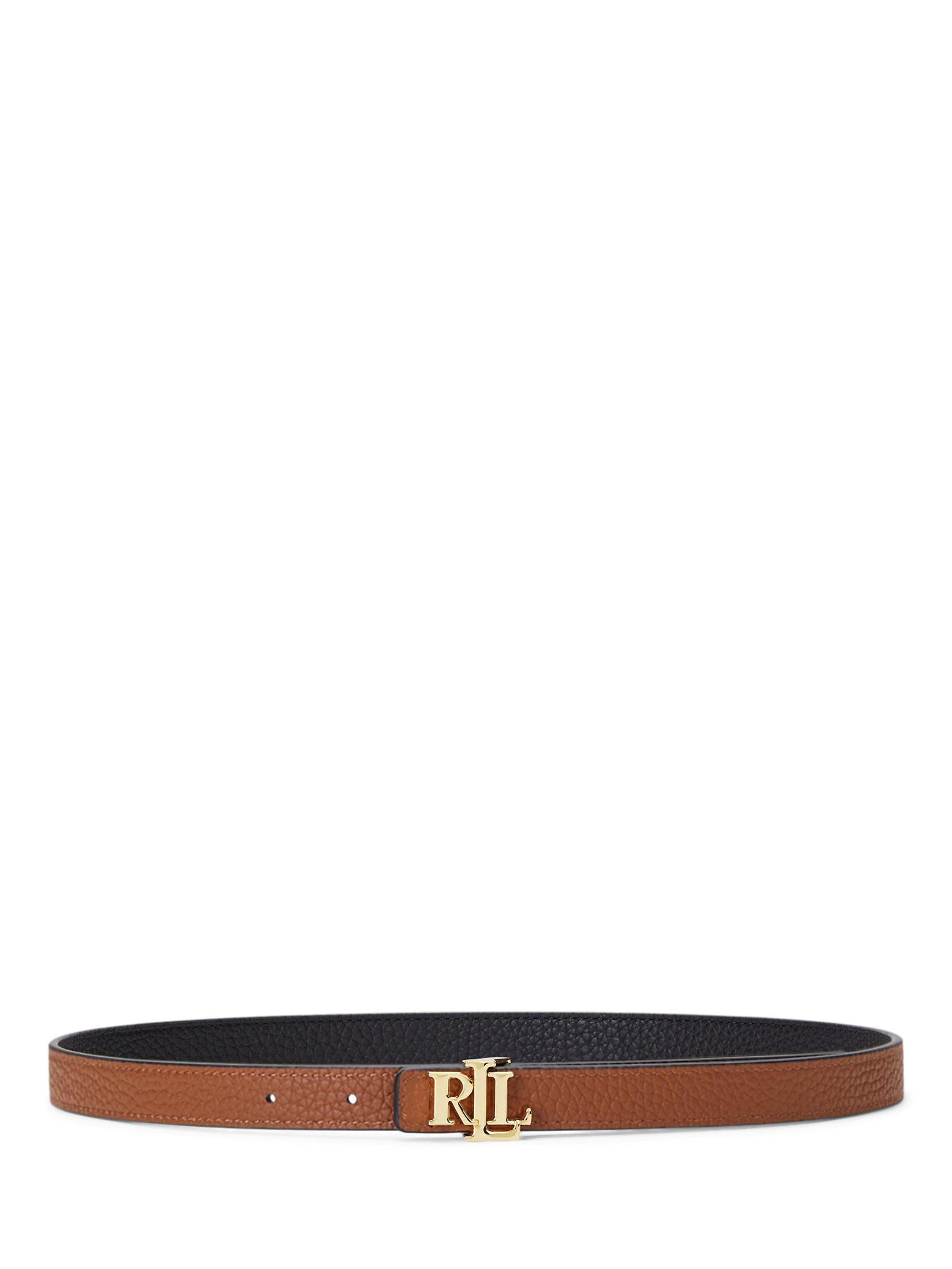 Sumptuous pebbled leather brings subtle texture and a luxurious sensibility to this reversible skinny belt, which is centered by a polished 'LRL' brass buckle for signature style.