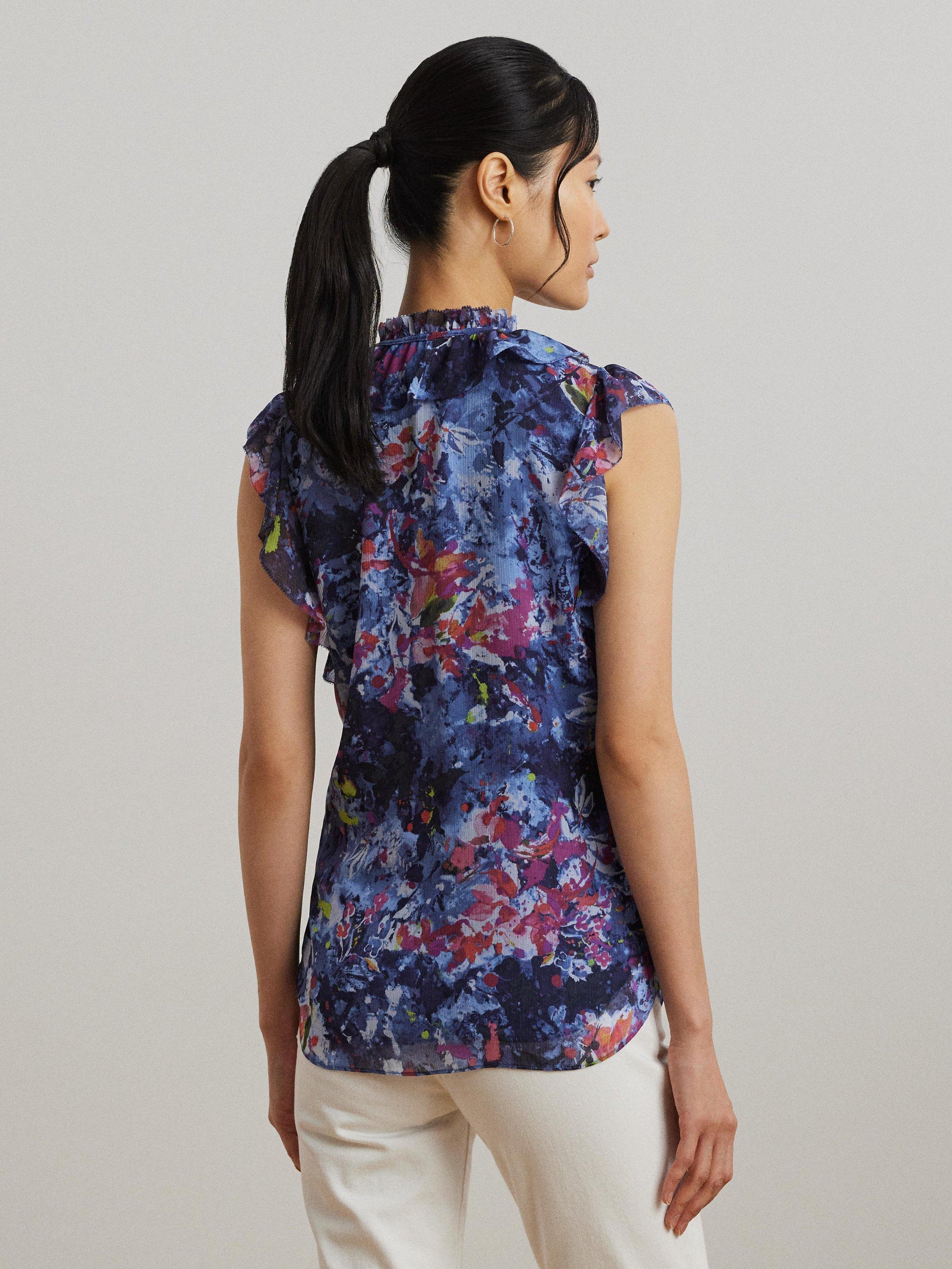 Detailed with ruffles, this blouse from Lauren Ralph Lauren is made from a lightweight fabric with an all-over floral print.