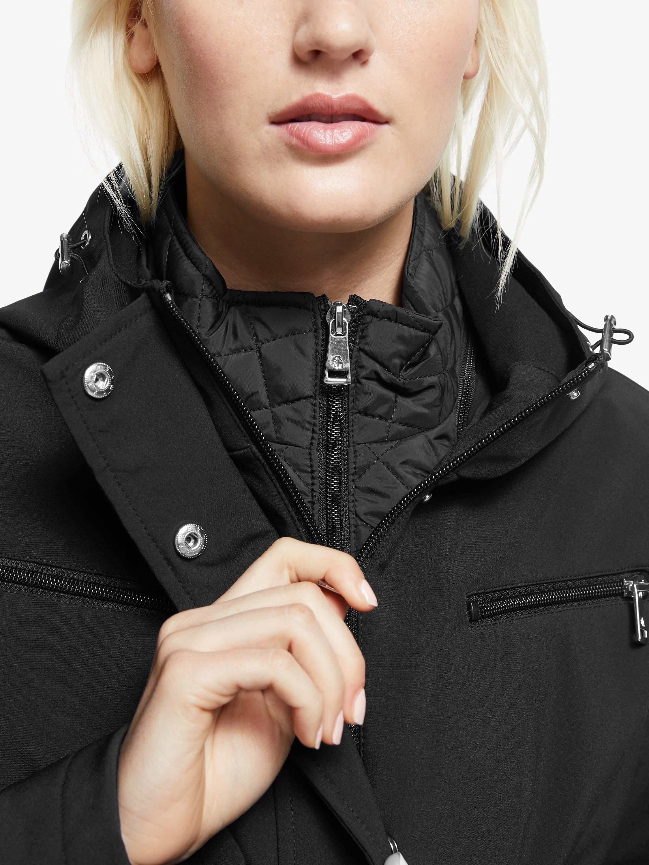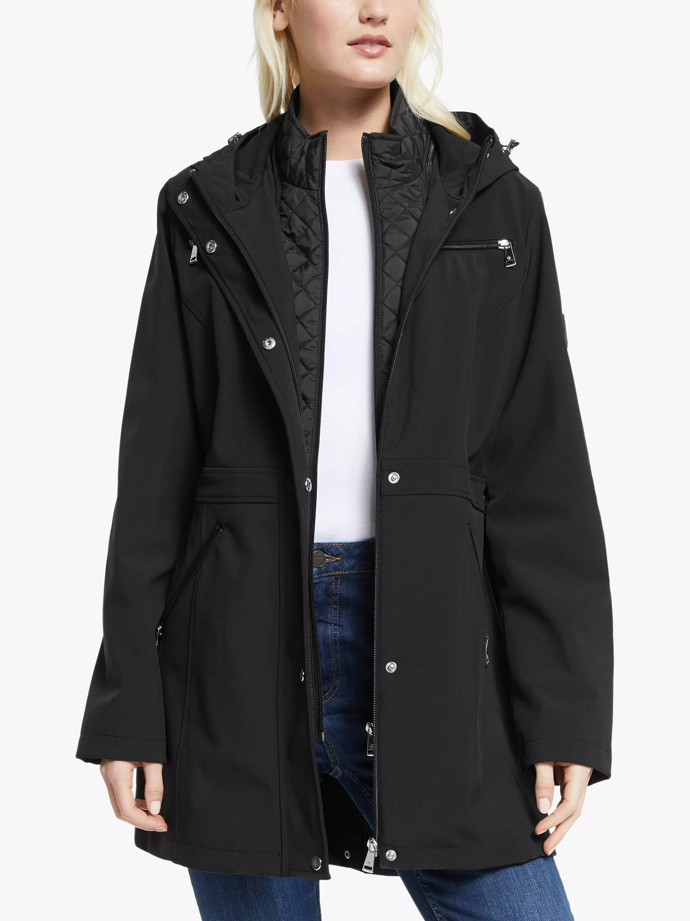 A slimline causal jacket from Lauren Ralph Lauren, this style comes with a drawcord hood and quilted inner for extra warmth. Minimal in detail apart from the curved front seams, waistband and zipped pockets, there's four so plenty of space to stash your essentials, this coat is finished with sleek silver-toned hardware, branded for a signature touch.