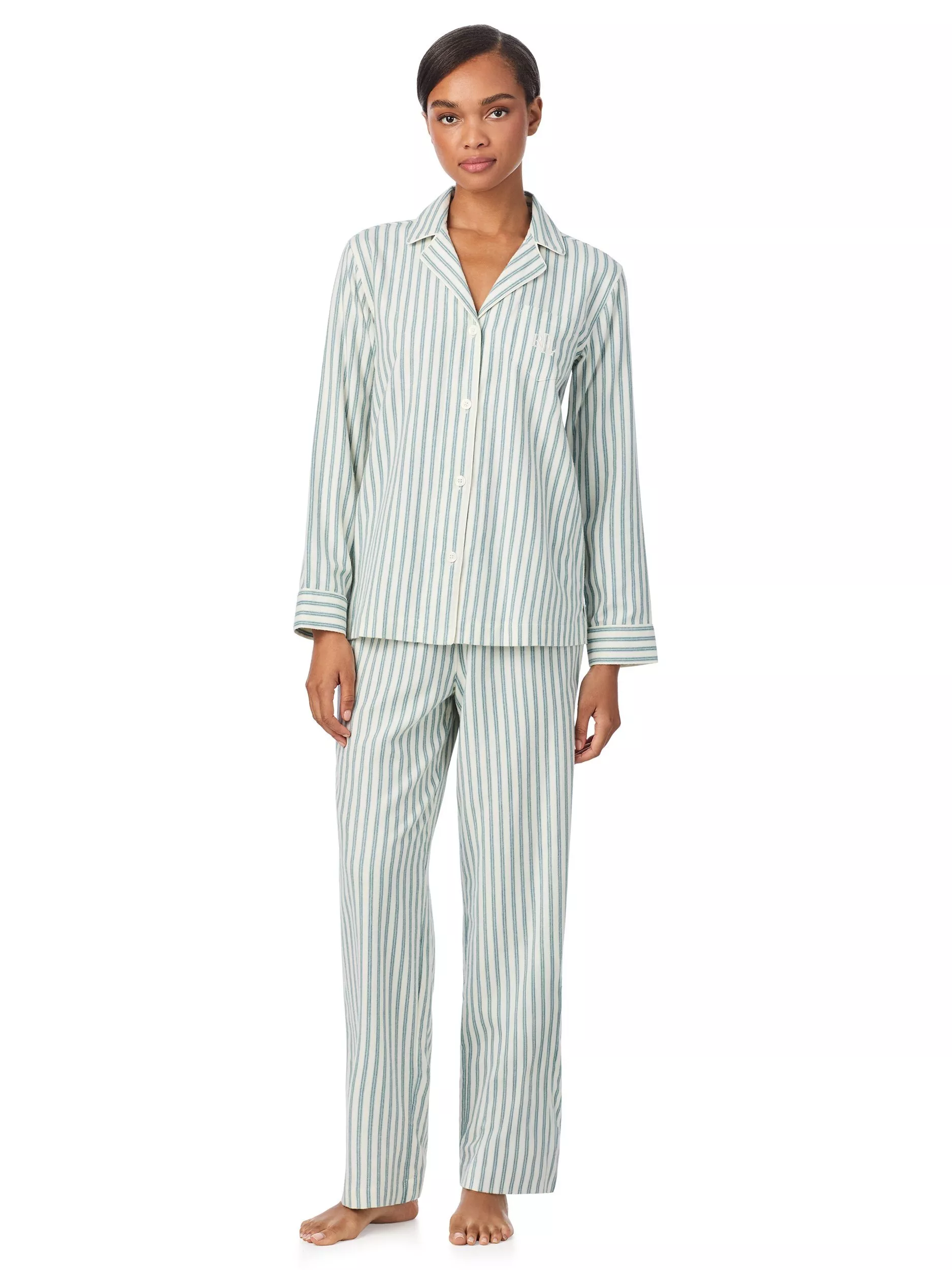 Wrapped in timeless stripes, this long-sleeve button-through pyjama set by Lauren Ralph Lauren is rendered in a brushed cotton twill blend.