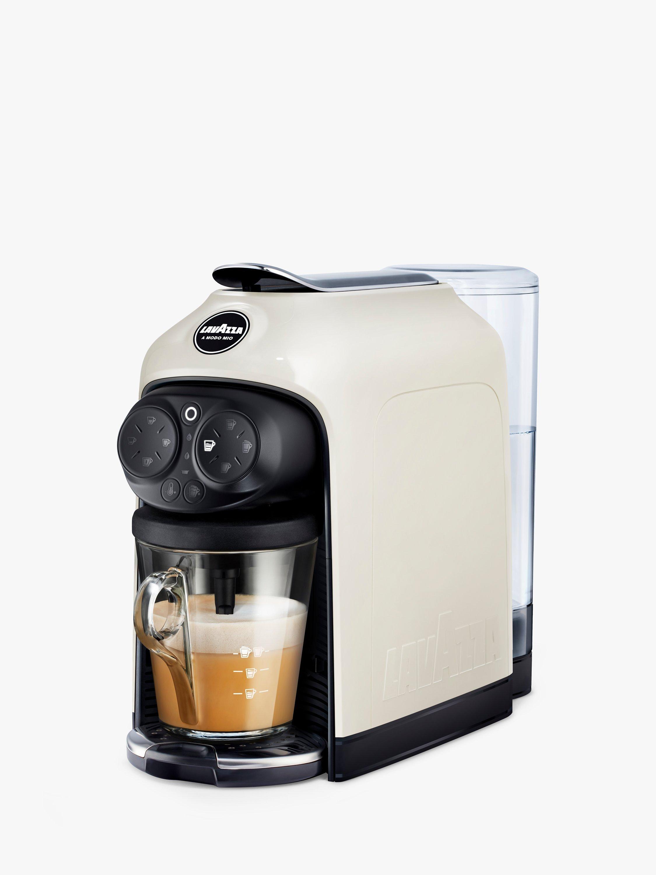 The Lavazza ModoMio Desea coffee machine with One Touch interface allows you to enjoy one of the 5 pre-programmed coffees with a single push.