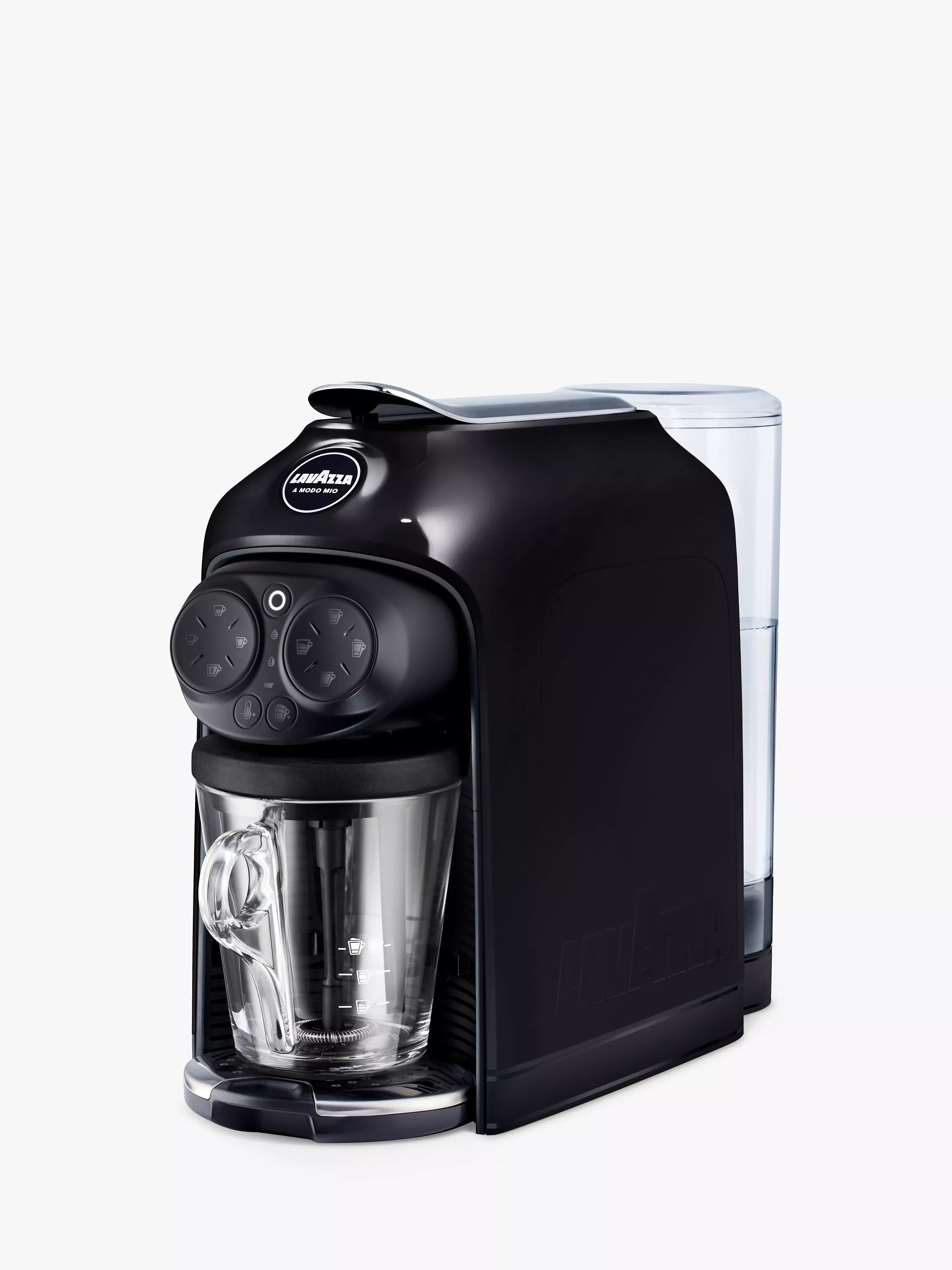 The Lavazza ModoMio Desea coffee machine with One Touch interface allows you to enjoy one of the 5 pre-programmed coffees with a single push.