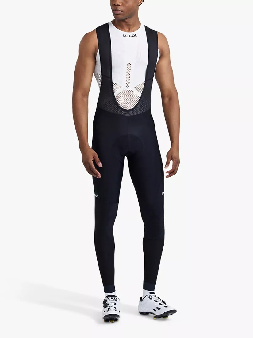 The Pro bib tights from Le Col regulate your temperature while the close fit maintains a smooth silhouette. You won't suffer when the temperatures drop, with pre-folded binding on the edges maintaining that smooth finish. In addition, tripping fabrics have been added to the lower leg to increase aerodynamics and make each pedal stroke more efficient. The bib uppers use a soft grid material that wicks sweat, regulating your temperature and keeping you warm without added bulk of other thermal materials. The ankle cuffs are lightweight and keep the bibs close to your body, improving the aerodynamics of the overall piece.
