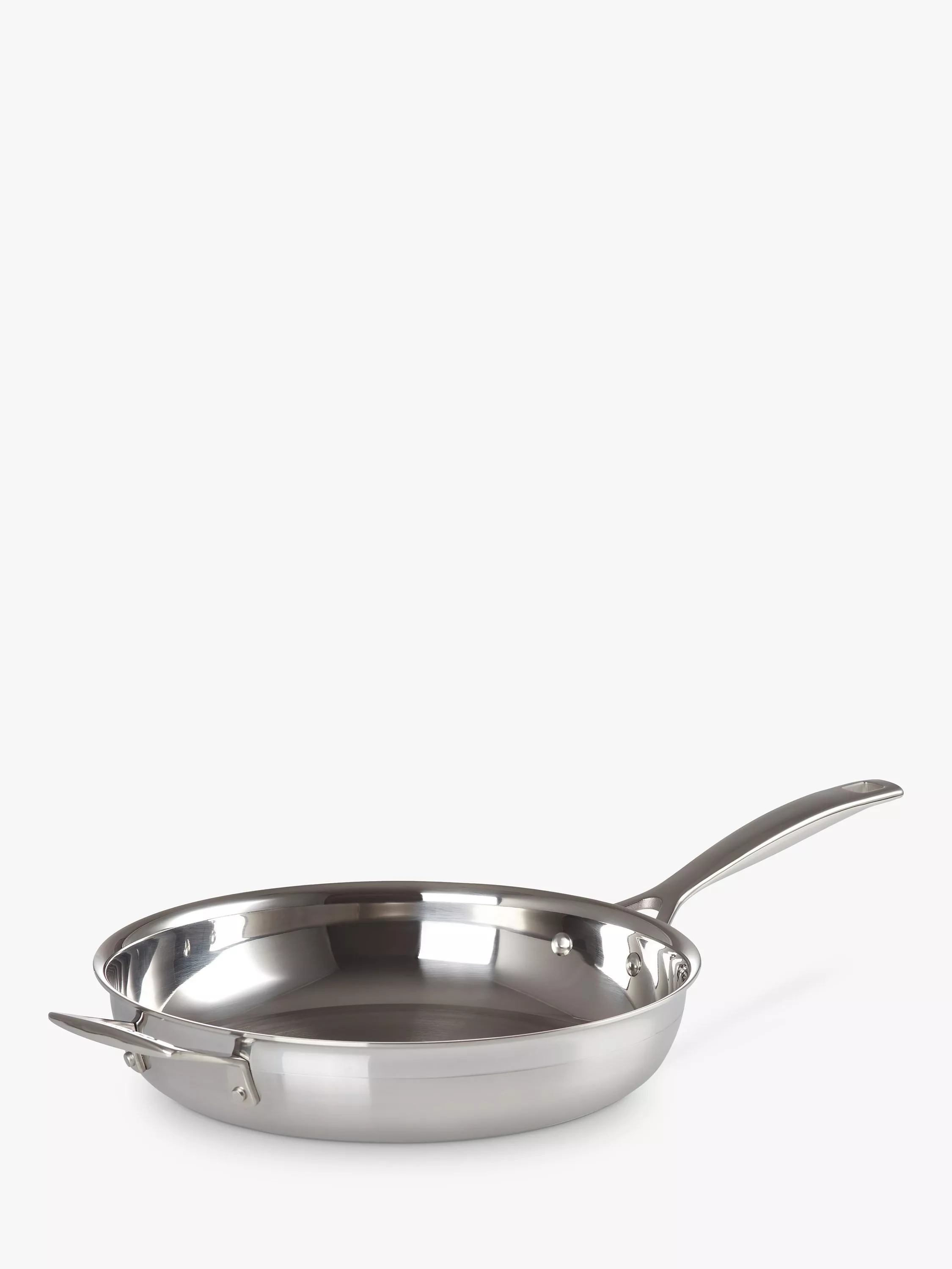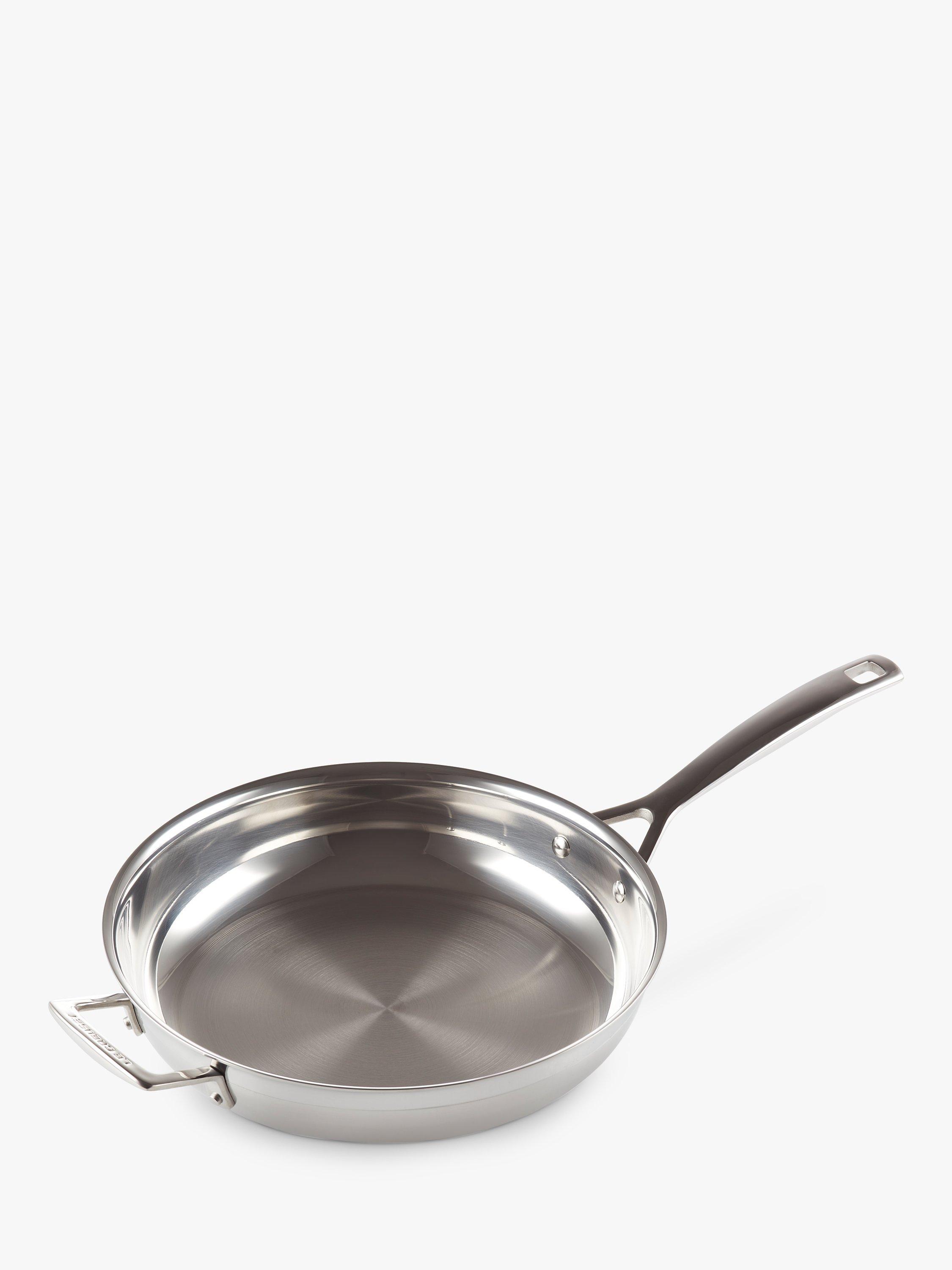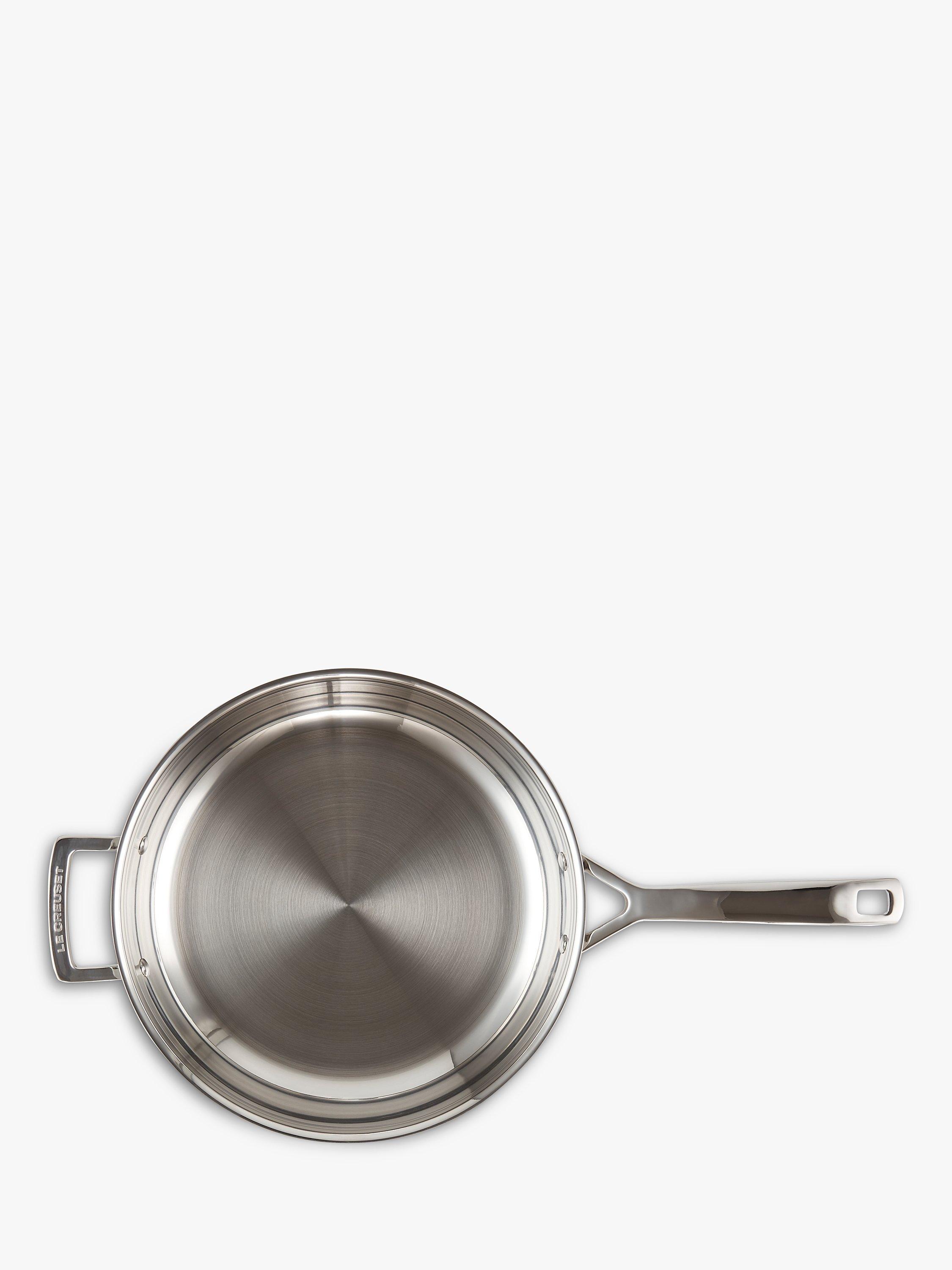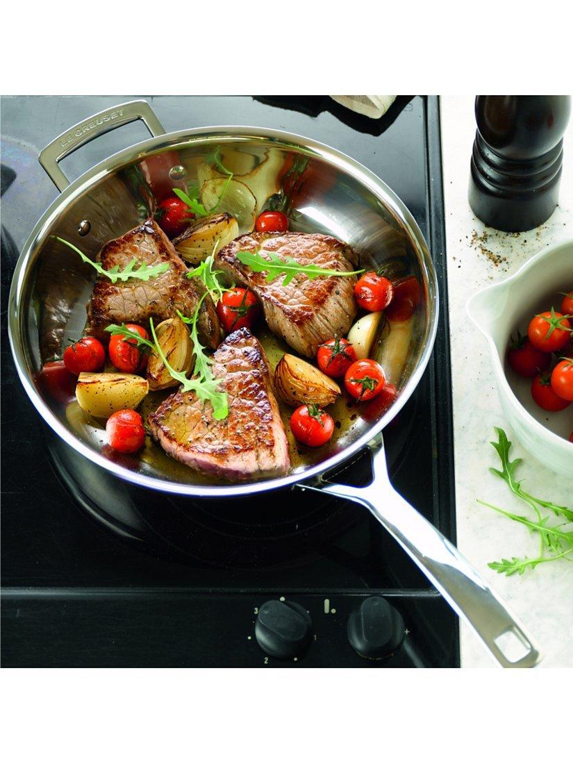 The uncoated interior of this 3-Ply Stainless Steel Frying Pan from Le Creuset is ideal for searing meat, fish and for sautéing/shallow frying.