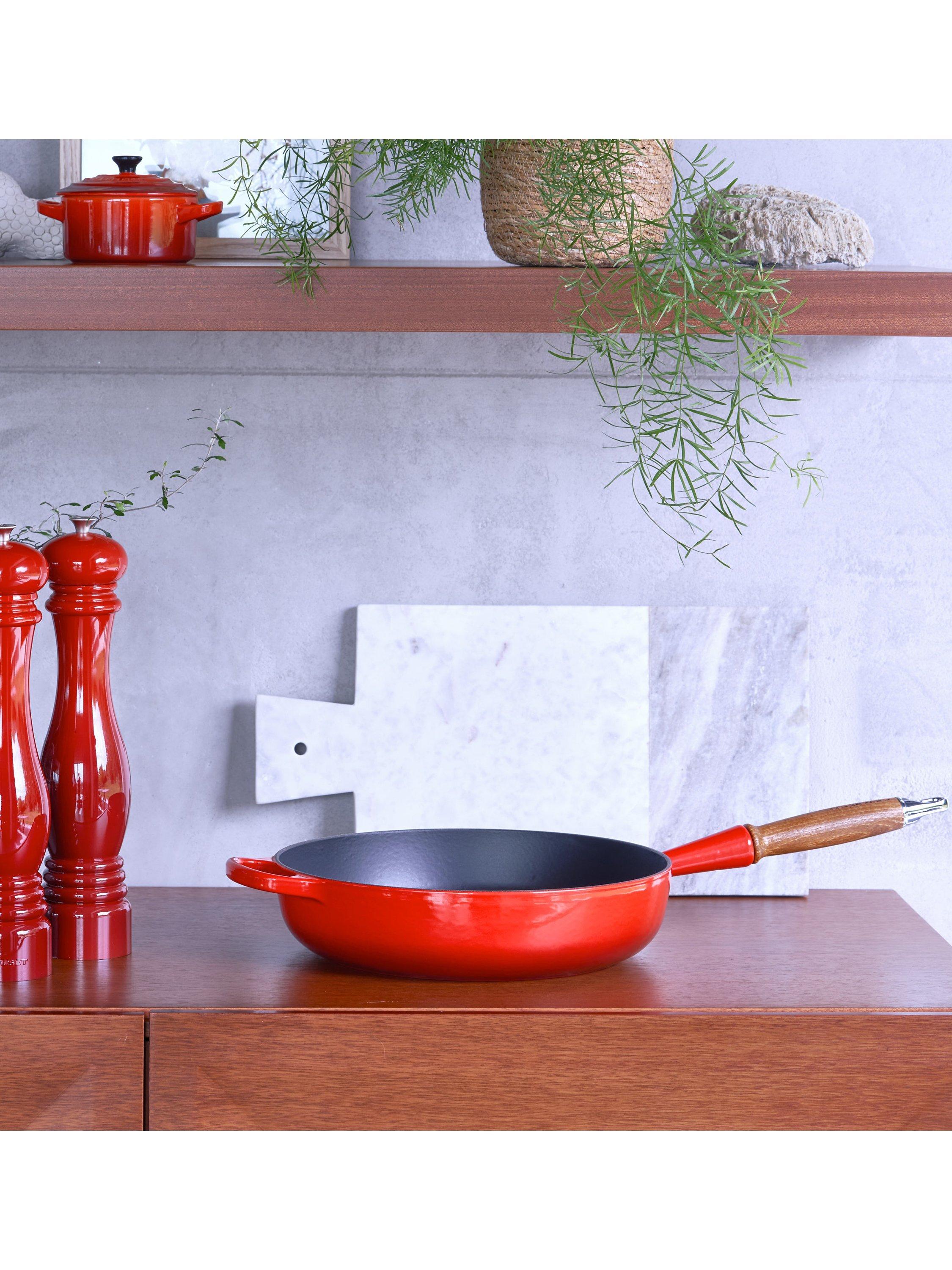 Perfect for creating all sorts of delicious dishes, the cast iron Signature Sauté Pan from Le Creuset makes frying and sautéing a joy. With higher sidewalls for cooking down liquids, its sleek modern looks include a stay-cool wooden handle and a large helper handle to make the pan easy to grip and move.