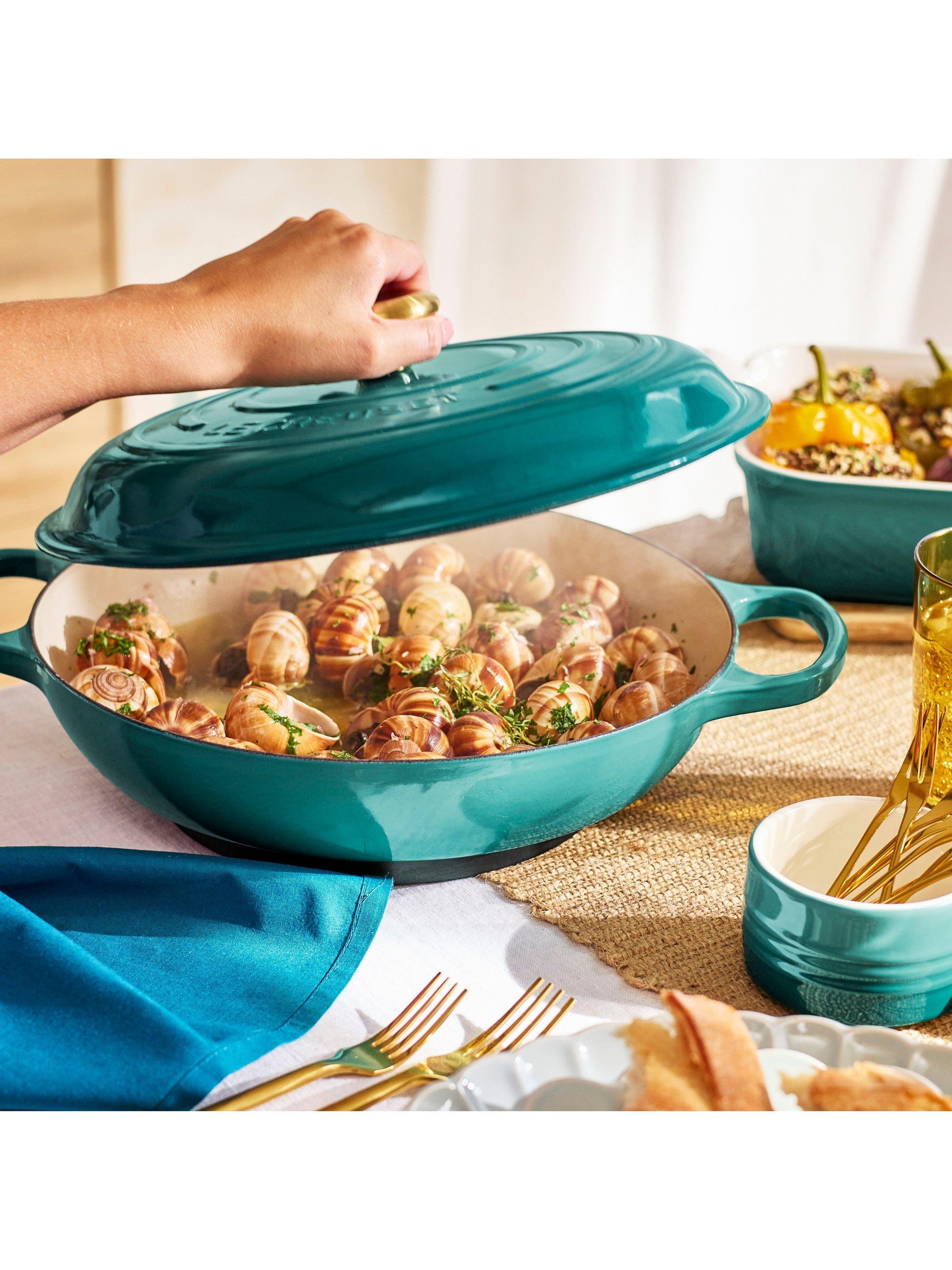 The casserole is available in an extensive choice of colours and shades to suit your taste and your décor, including cool blue hues, warm reds, calming greens or ever-classic Volcanic.