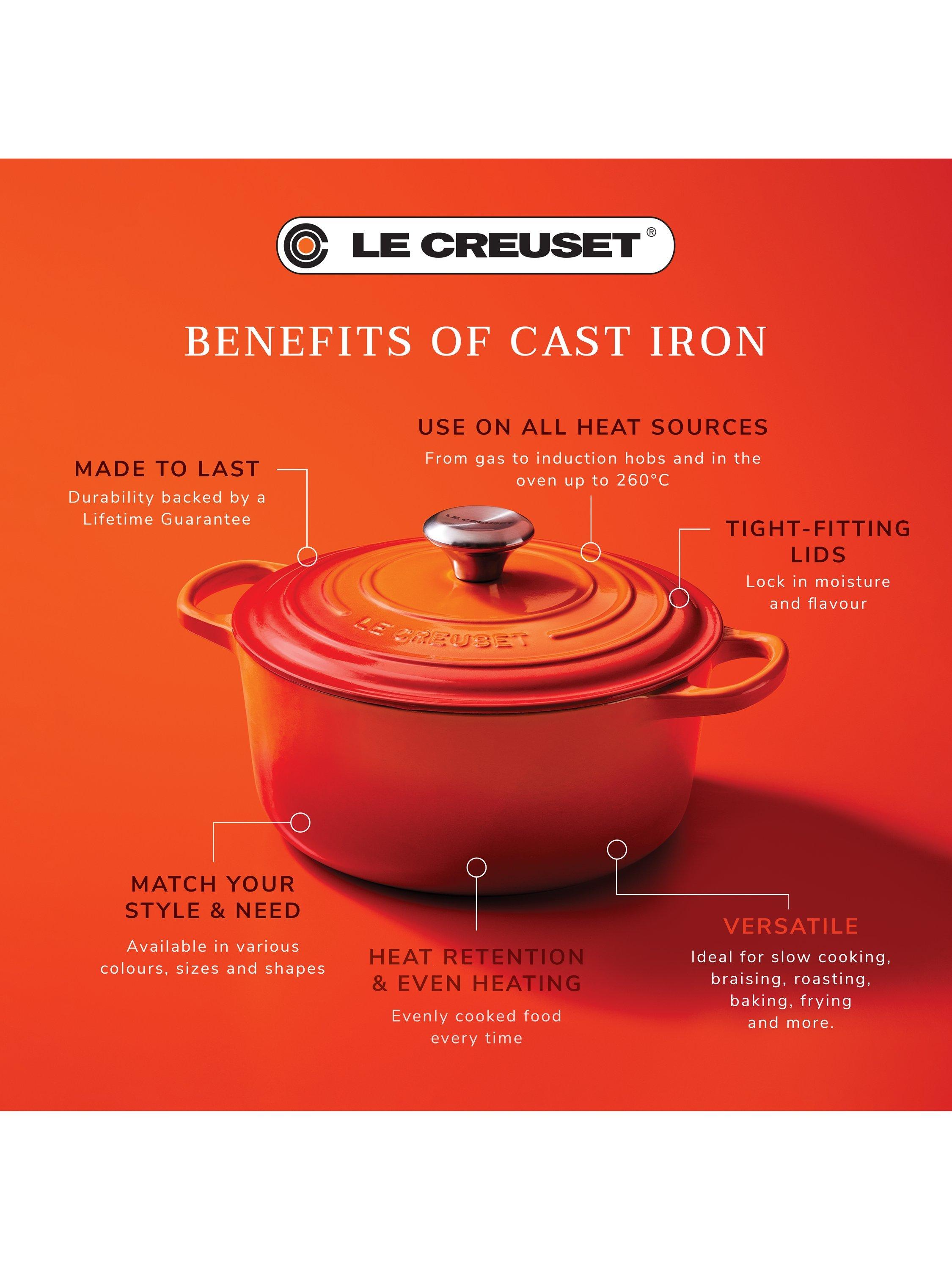 - Suitable for all heat sources including induction • Even heat distribution and superior heat retention • Hygienic enamel surface resists sticking, chipping and staining • Oven safe to 260°C and dishwasher safe • Comes with a reassuring lifetime guarantee